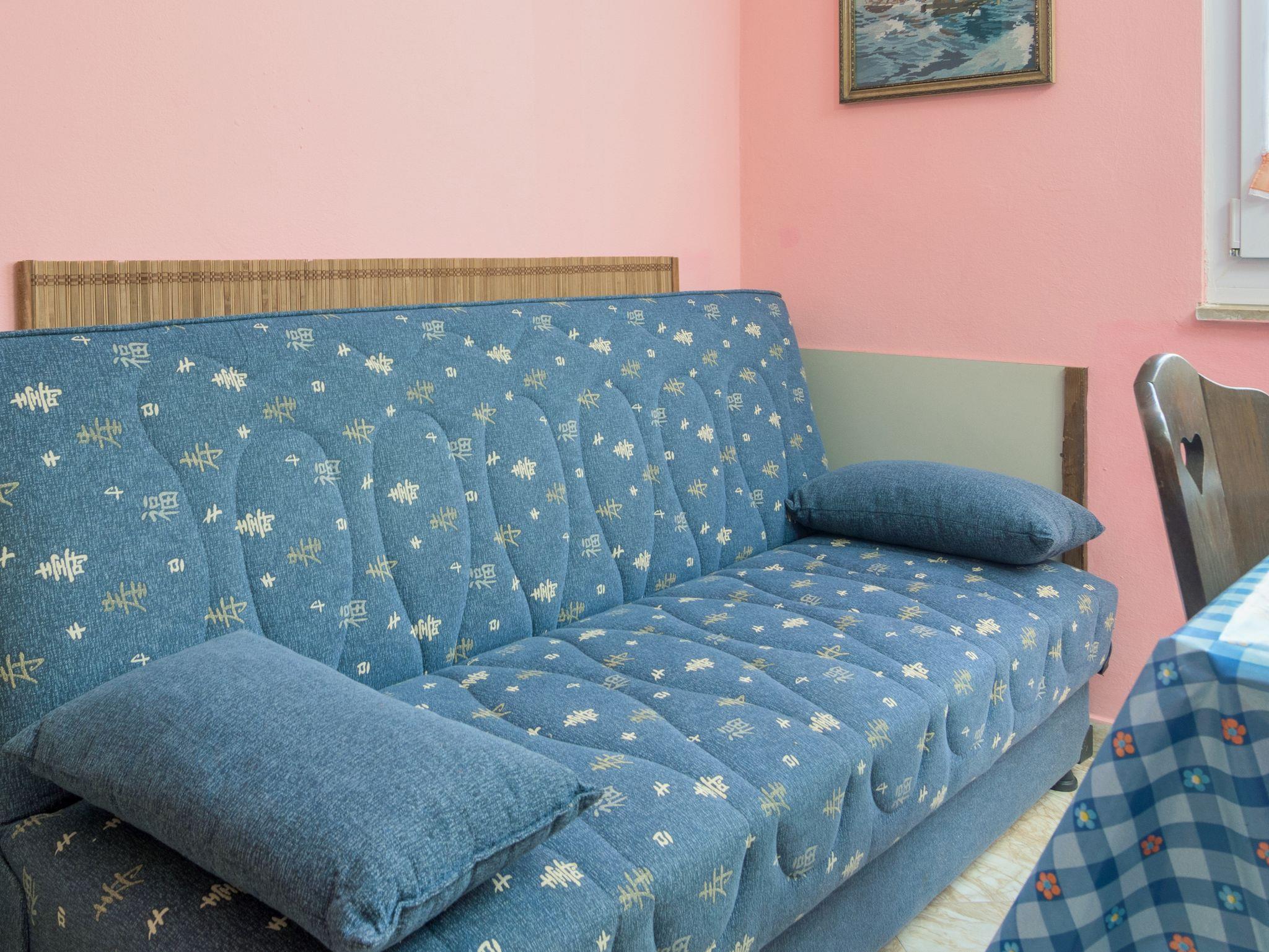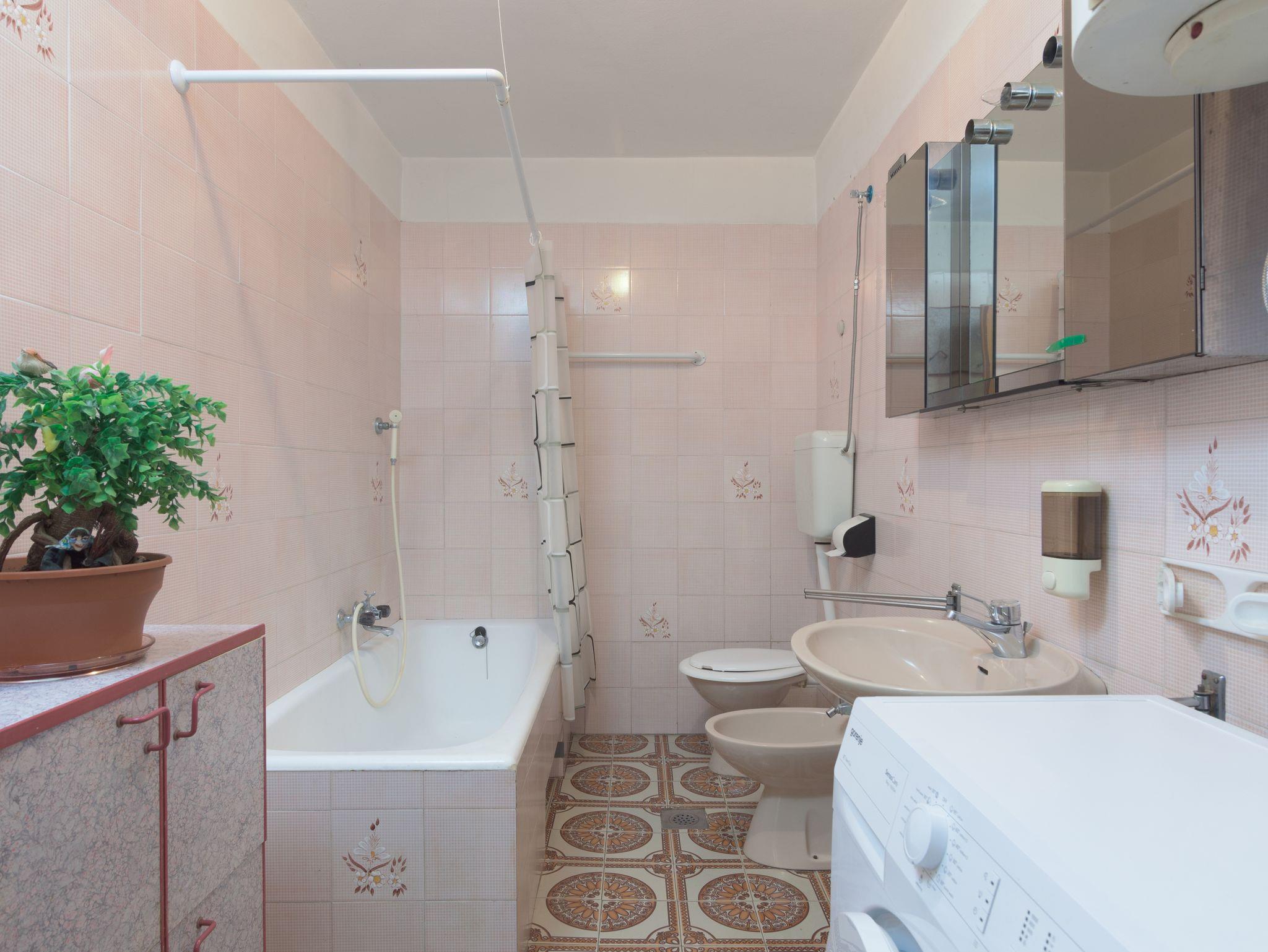 Ferienwohnung bietet Platz für 3 Gäste. Die Betten sind in Schlafzimmern, die es 1 gibt, und in Esszimmer, innerhalb einer Gesamtfläche von 41m2, angeordnet. Die Gäste haben eine eigene Terrasse zur Verfügung, auf der sie in warmen Sommernächten genießen können. IM PREIS INBEGRIFFEN: Kurtaxe, Endreinigung, Klimatisierung, Parkplatz, Internet, Bügeleisen, Föhn. VERBINDLICHE ZUSÄTZLICHE KOSTEN: Aufzahlung für Kurzaufenthalte (prozentualer Zuschlag pro Nächtigungsanzahl: 30% - 1, 20% - 2, 10% - 3). Die Verfügbarkeit zusätzlicher Dienstleistungen in Ihrem reservierten Termin und die Preise derselben (falls nicht aufgeführt) müssen im Voraus überprüft werden. Zusätzliche Dienstleistungen die in der Zahlungsaufforderung nicht aufgeführt sind werden direkt beim Vermieter bezahlt, angenommen der Gast nutzt auch diese. Ermäßigung auf den Grundpreis: Gratistag 14=13 (bei einem Aufenthalt von 14 Tagen oder mehr erhalten Sie einen Gratistag für den Aufenthalt bis 31.12.26).