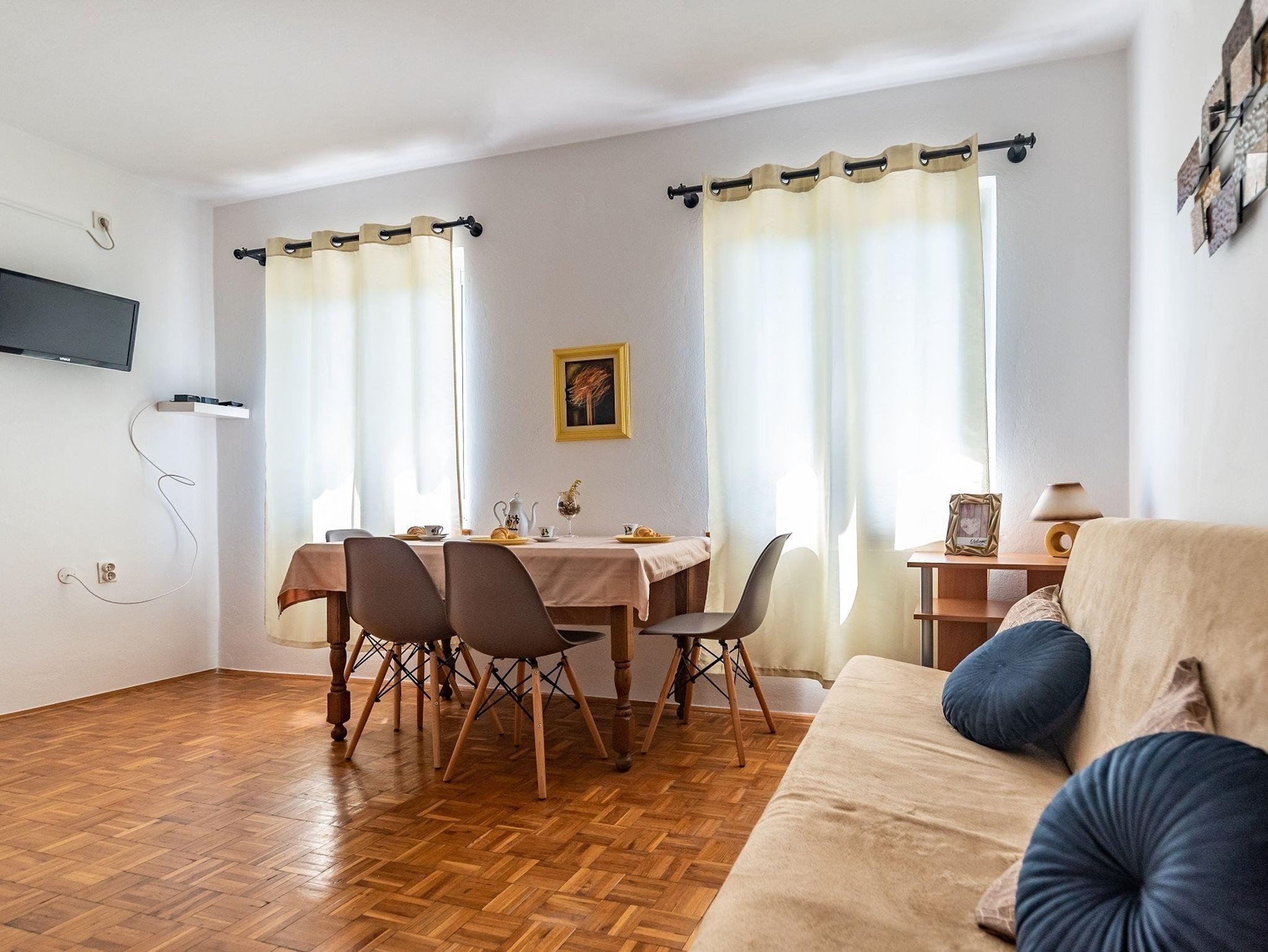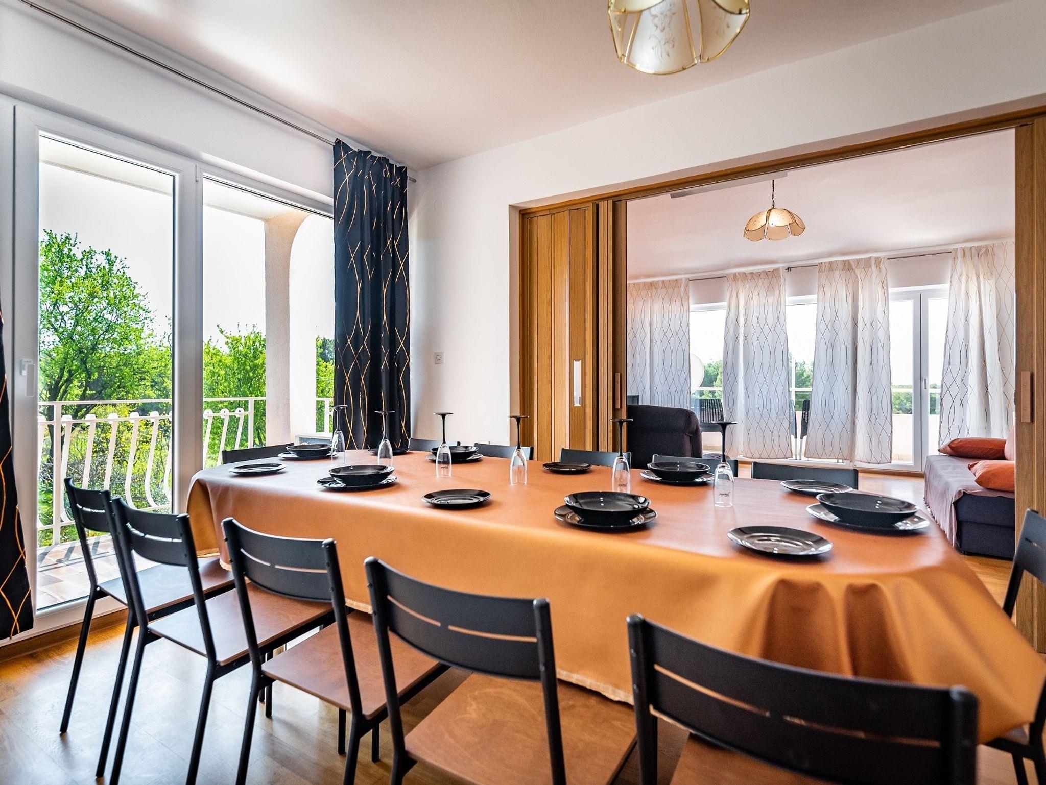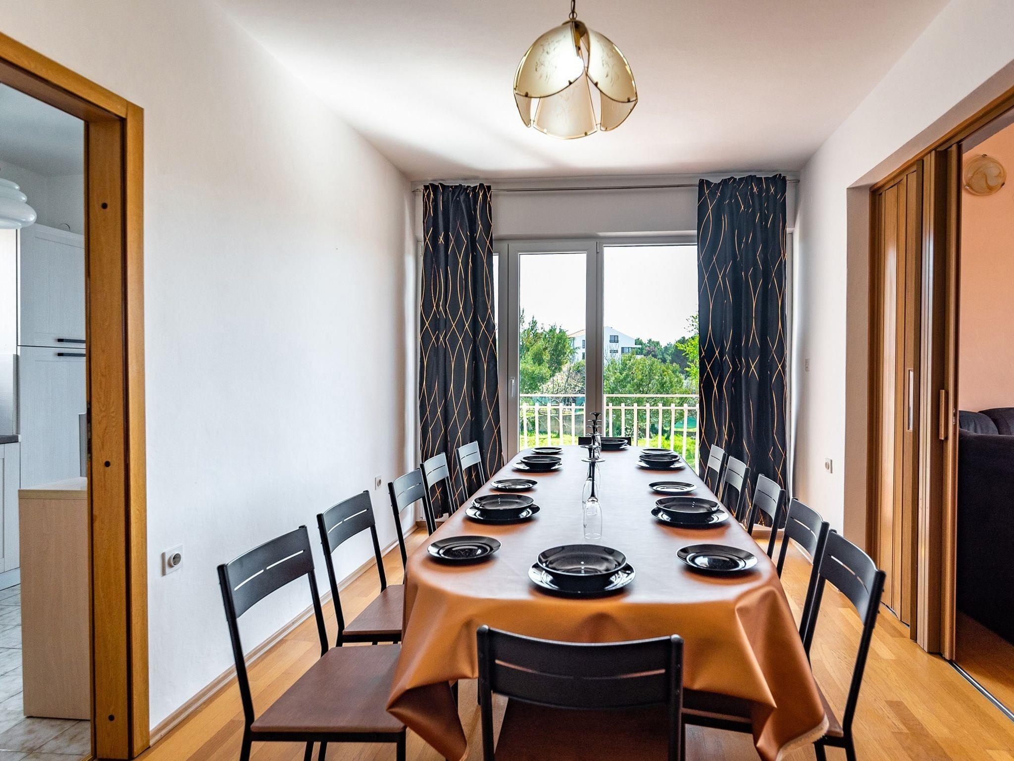 Ferienwohnung bietet Platz für 12 Gäste. Die Betten sind in Schlafzimmern, die es 4 gibt, und in Wohnzimmer und Esszimmer, innerhalb einer Gesamtfläche von 145m2, angeordnet. Die Gäste haben einen eigenen Balkon zur Verfügung, auf der sie in warmen Sommernächten genießen können. Für vollen Genuss und Entspannung gibt es einen privaten Grill für Gäste dieser Unterkunft. Während ihres Aufenthalts können sich Gäste im privaten Schwimmbad entspannen. Räume der gebuchten Unterkunftseinheit werden nicht in eine Ganze verbunden. IM PREIS INBEGRIFFEN: Kurtaxe, Endreinigung, Klimatisierung, Pool, Parkplatz, Internet, Kinderbett, Bügeleisen, Bügelbrett, Föhn. Die Verfügbarkeit zusätzlicher Dienstleistungen in Ihrem reservierten Termin und die Preise derselben (falls nicht aufgeführt) müssen im Voraus überprüft werden. Zusätzliche Dienstleistungen die in der Zahlungsaufforderung nicht aufgeführt sind werden direkt beim Vermieter bezahlt, angenommen der Gast nutzt auch diese. Ermäßigung auf den Grundpreis: Gratistag 28=25 (bei einem Aufenthalt von 28 oder mehr Tagen erhalten Sie 3 kostenlose Tage für den Aufenthalt bis 31.12.26).