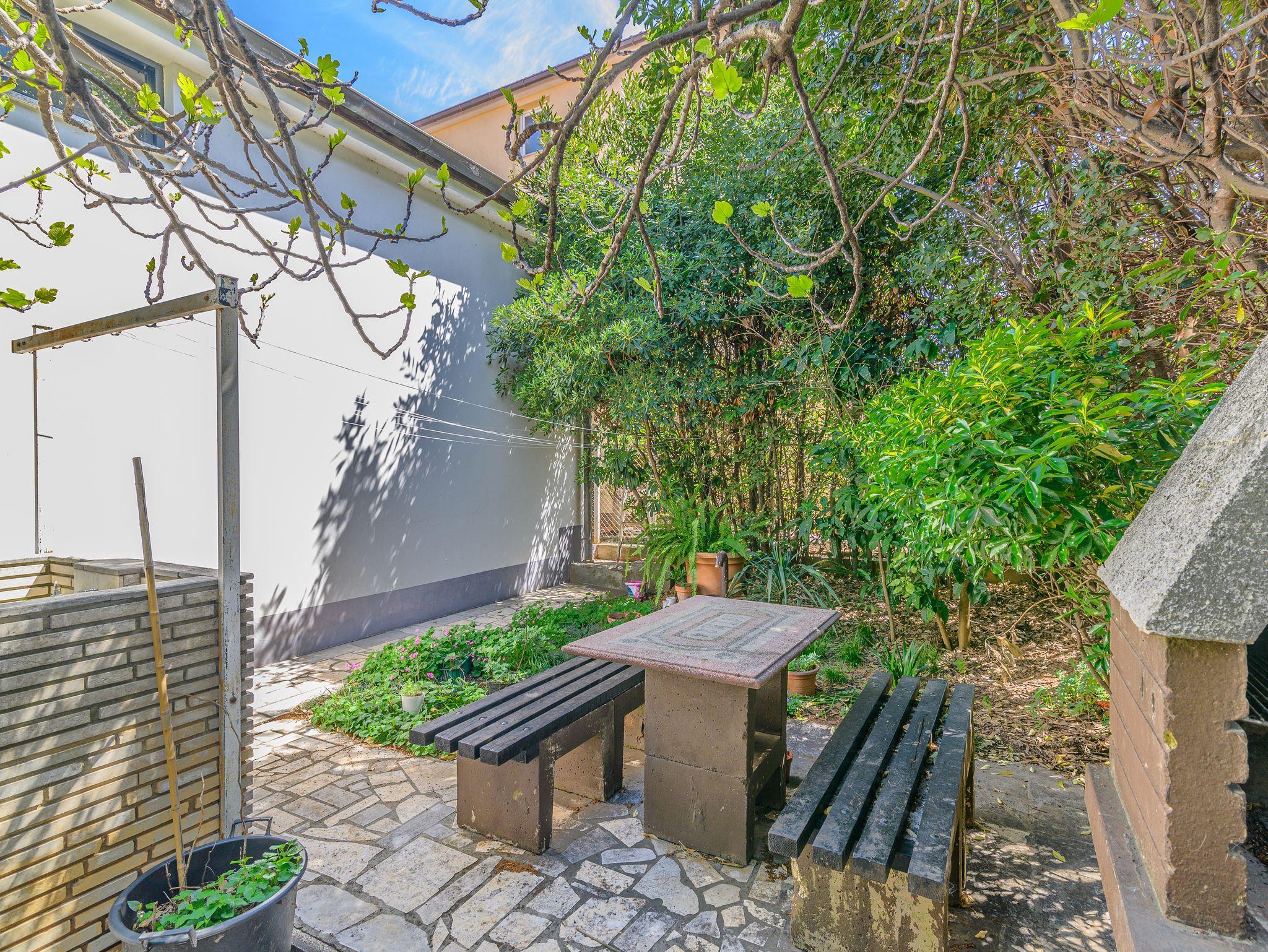 Ferienwohnung bietet Platz für 5 Gäste. Die Betten sind in Schlafzimmern, die es 2 gibt, und in Wohnzimmer, innerhalb einer Gesamtfläche von 47m2, angeordnet. Die Gäste haben eine eigene Terrasse zur Verfügung, auf der sie in warmen Sommernächten genießen können. Es ist erlaubt, Speisen auf dem Gemeinschafts-Grill vorzubereiten. In der Unterkunftseinheit besteht die Möglichkeit des Mitbringens von Haustieren gegen Aufpreis. IM PREIS INBEGRIFFEN: Kurtaxe, Endreinigung, Klimatisierung, Parkplatz, Internet, Föhn. VERBINDLICHE ZUSÄTZLICHE KOSTEN: Aufzahlung für Kurzaufenthalte (prozentualer Zuschlag pro Nächtigungsanzahl: 30% - 1, 20% - 2, 10% - 3). UNVERBINDLICHE ZUSÄTZLICHE KOSTEN: Haustiere (5,00 € pro Nacht). Die Verfügbarkeit zusätzlicher Dienstleistungen in Ihrem reservierten Termin und die Preise derselben (falls nicht aufgeführt) müssen im Voraus überprüft werden. Zusätzliche Dienstleistungen die in der Zahlungsaufforderung nicht aufgeführt sind werden direkt beim Vermieter bezahlt, angenommen der Gast nutzt auch diese.