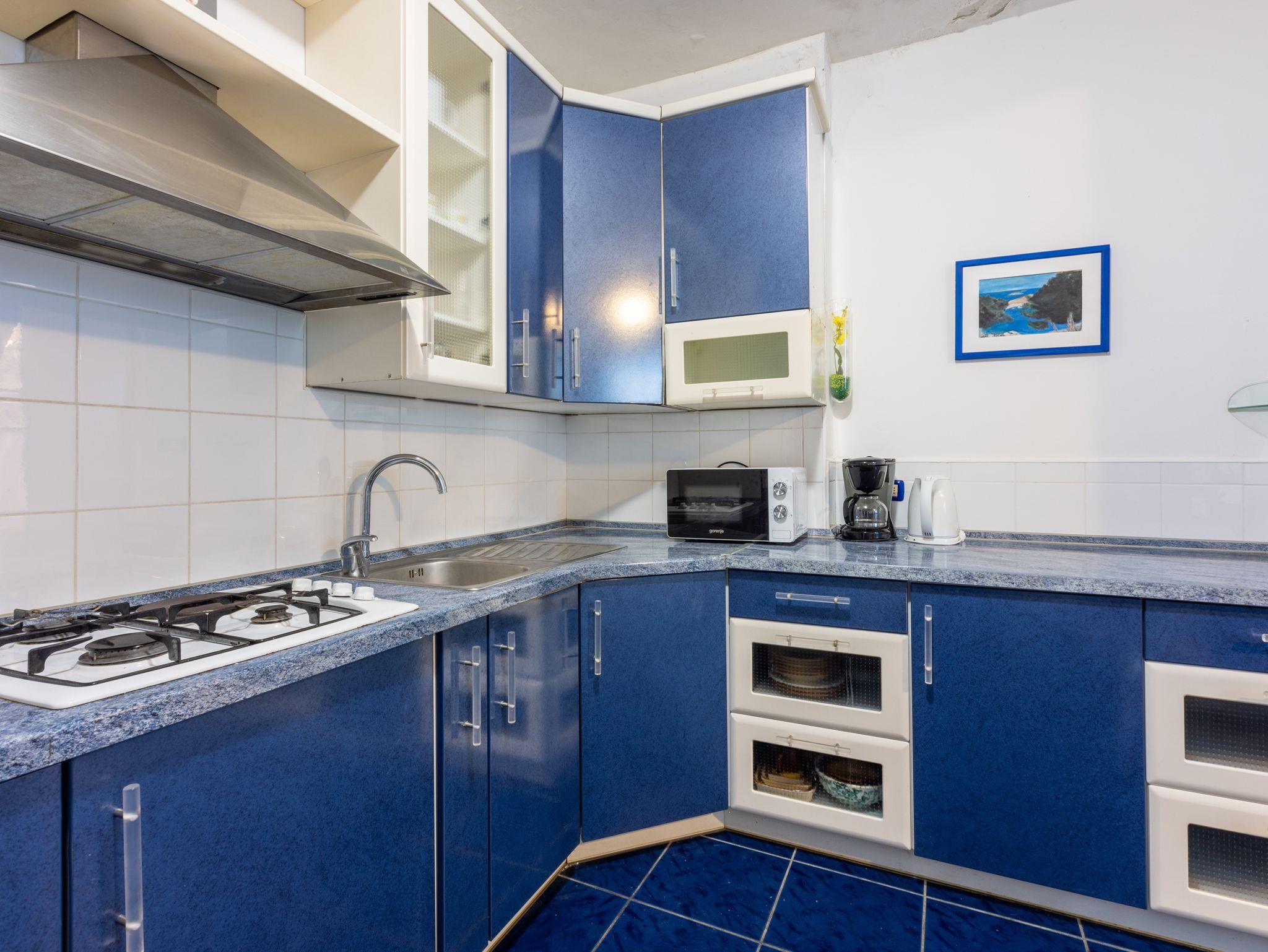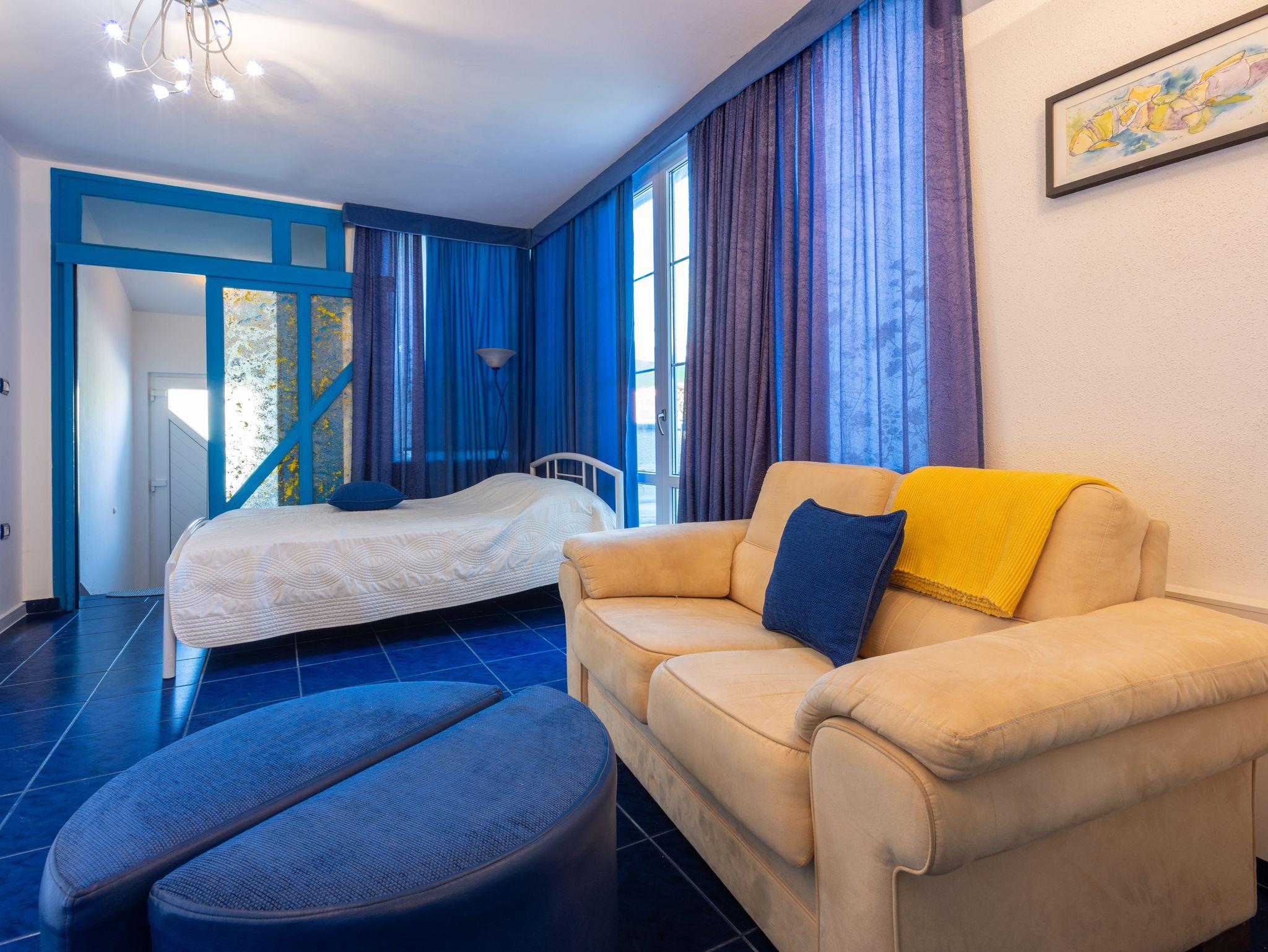Ferienwohnung bietet Platz für 6 Gäste. Die Betten sind in Schlafzimmern, die es 2 gibt, und in Wohnzimmer, innerhalb einer Gesamtfläche von 68m2, angeordnet. Die Gäste haben eine eigene Terrasse zur Verfügung, auf der sie in warmen Sommernächten genießen können. In der Unterkunftseinheit besteht die Möglichkeit des Mitbringens von Haustieren gegen Aufpreis. In der gebuchten Unterkunftseinheit zahlt man am Ort ein Depositum ( der Preis ist an der Internetseite angeführt ). IM PREIS INBEGRIFFEN: Kurtaxe, Endreinigung, Klimatisierung, Parkplatz, Internet, Kinderbett, Bügeleisen, Bügelbrett, Föhn. VERBINDLICHE ZUSÄTZLICHE KOSTEN: Kaution (100,00 € Einmalzahlung), Aufzahlung für Kurzaufenthalte (prozentualer Zuschlag pro Nächtigungsanzahl: 30% - 1, 20% - 2, 10% - 3). UNVERBINDLICHE ZUSÄTZLICHE KOSTEN: Wäschewaschen (7,00 € Waschen), Haustiere (7,00 € pro Nacht). Die Verfügbarkeit zusätzlicher Dienstleistungen in Ihrem reservierten Termin und die Preise derselben (falls nicht aufgeführt) müssen im Voraus überprüft werden. Zusätzliche Dienstleistungen die in der Zahlungsaufforderung nicht aufgeführt sind werden direkt beim Vermieter bezahlt, angenommen der Gast nutzt auch diese.