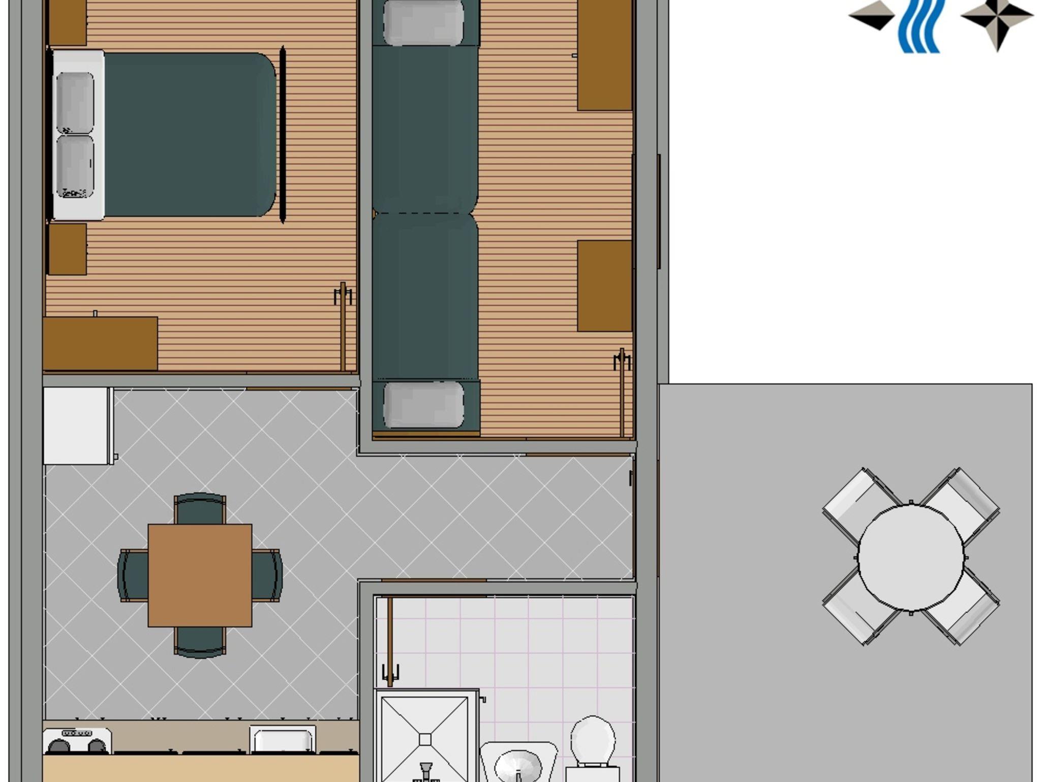 Ferienwohnung bietet Platz für 4 Gäste. Die Betten sind in Schlafzimmern, die es 2 gibt, innerhalb einer Gesamtfläche von 32m2, angeordnet. Die Gäste haben eine eigene Terrasse zur Verfügung, auf der sie in warmen Sommernächten genießen können. In der gebuchten Unterkunftseinheit zahlt man am Ort ein Depositum ( der Preis ist an der Internetseite angeführt ). IM PREIS INBEGRIFFEN: Kurtaxe, Endreinigung, Klimatisierung, Parkplatz, Internet, Föhn. VERBINDLICHE ZUSÄTZLICHE KOSTEN: Kaution (50,00 € Einmalzahlung), Aufzahlung für Kurzaufenthalte (prozentualer Zuschlag pro Nächtigungsanzahl: 30% - 1, 20% - 2, 10% - 3). Die Verfügbarkeit zusätzlicher Dienstleistungen in Ihrem reservierten Termin und die Preise derselben (falls nicht aufgeführt) müssen im Voraus überprüft werden. Zusätzliche Dienstleistungen die in der Zahlungsaufforderung nicht aufgeführt sind werden direkt beim Vermieter bezahlt, angenommen der Gast nutzt auch diese. Ermäßigung auf den Grundpreis: Aktion (erzielen Sie während der Buchung zusätzliche Ermäßigung von 10%).