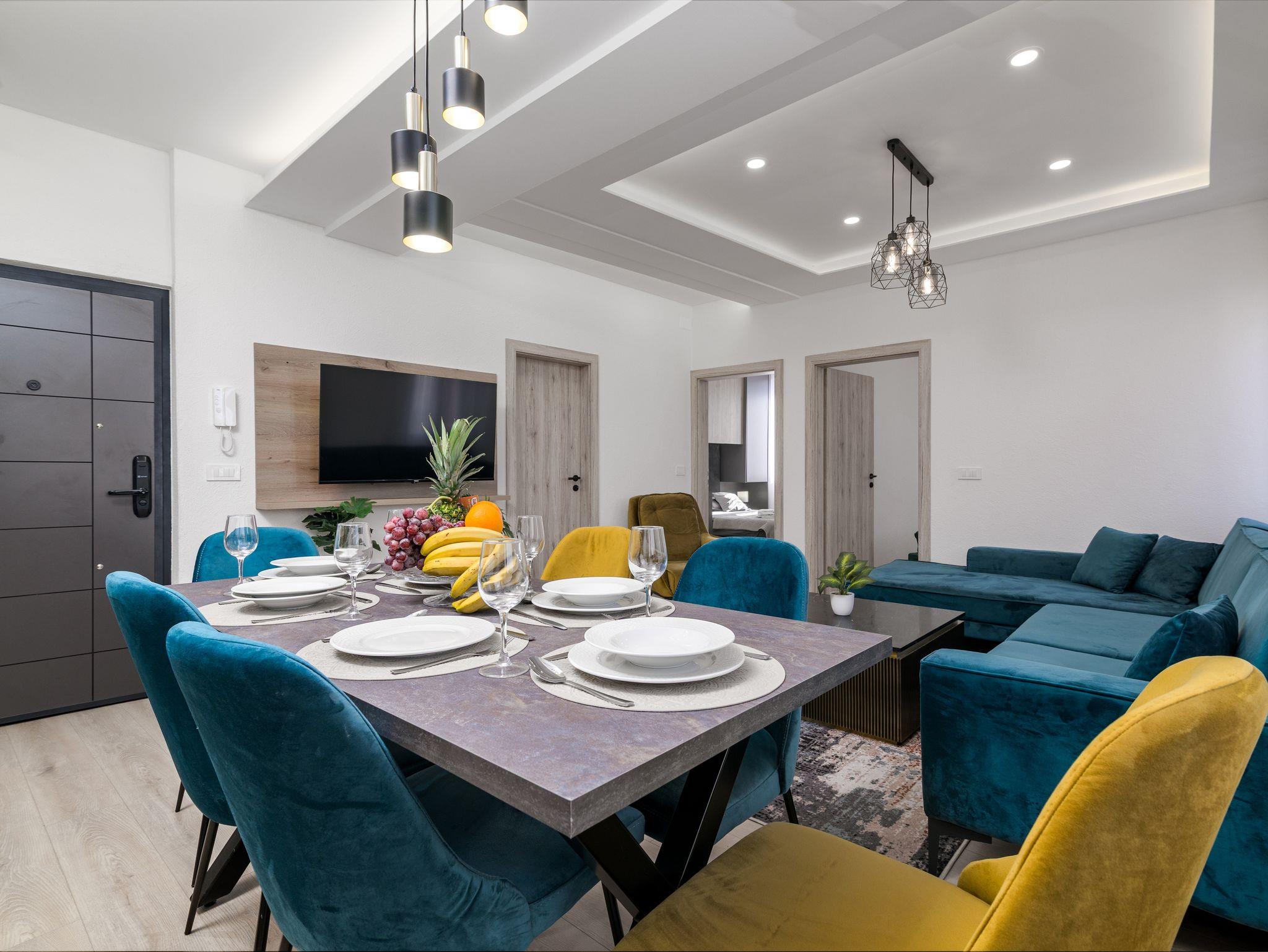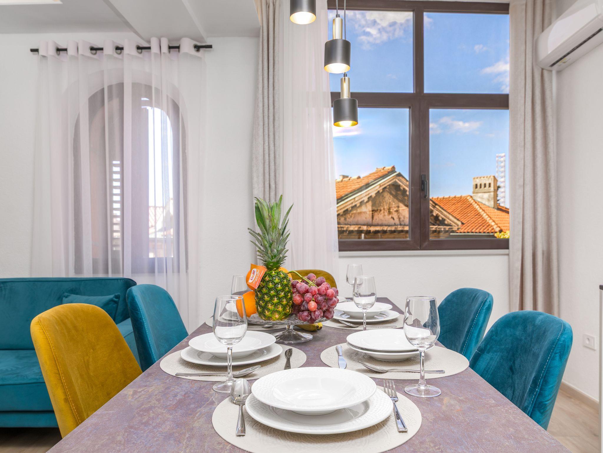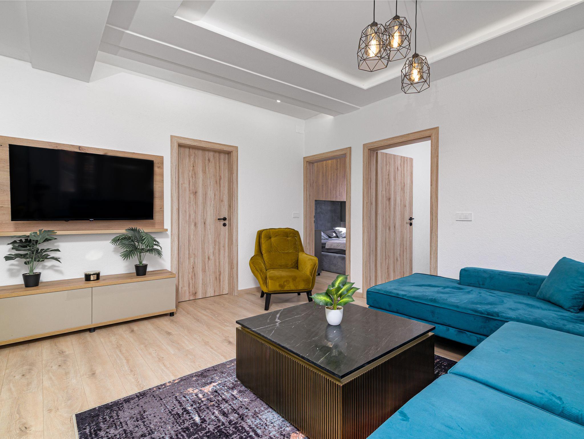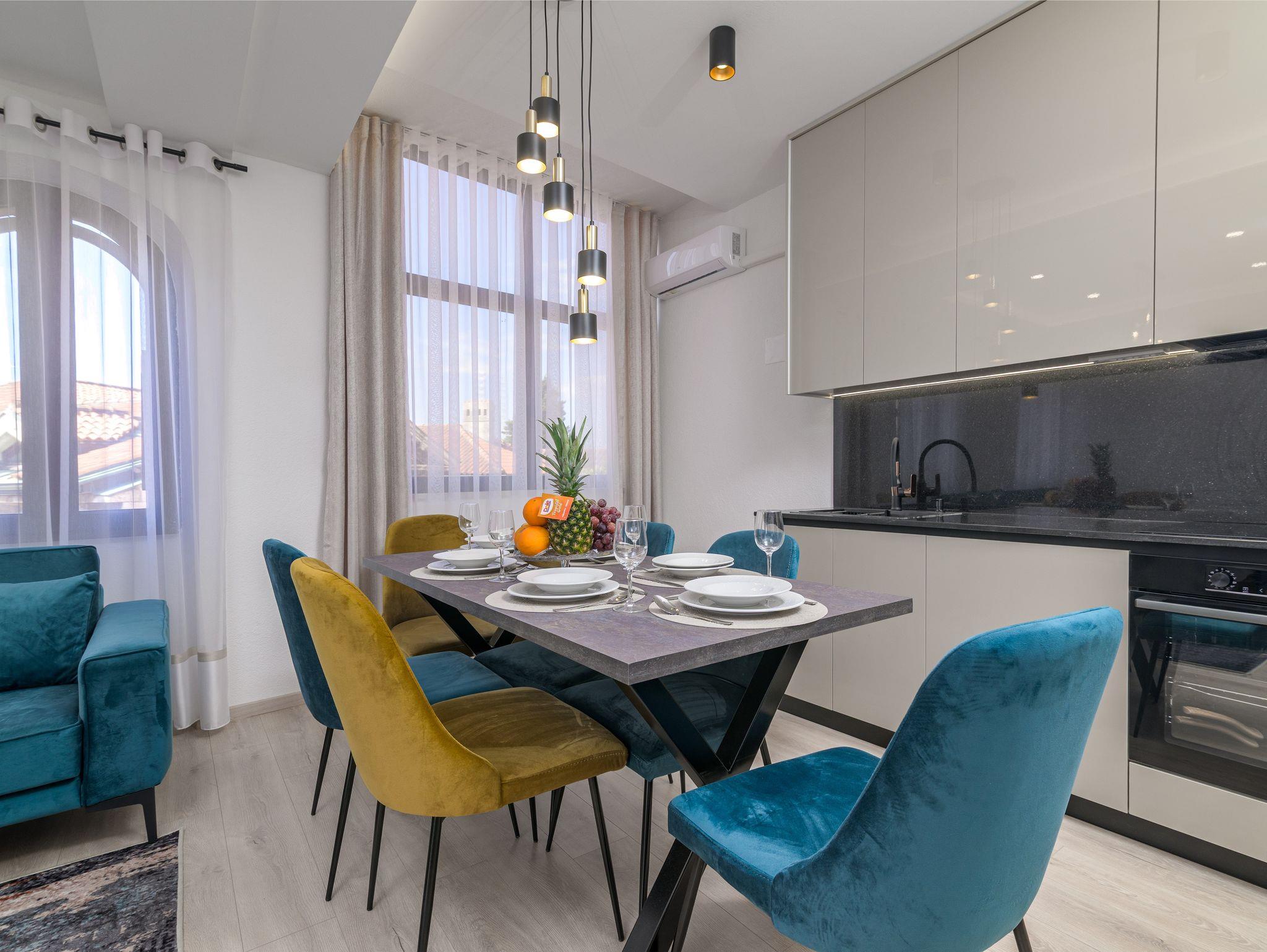 Ferienwohnung bietet Platz für 4 Gäste. Die Betten sind in Schlafzimmern, die es 2 gibt, innerhalb einer Gesamtfläche von 59m2, angeordnet. Die reservierte Unterkunftseinheit hat keinen Balkon und keine Terrasse. Räume der gebuchten Unterkunftseinheit werden nicht in eine Ganze verbunden. Unterkunftseinheit hat Räume, die von dem Rest der Einheit abgetrennt werden. IM PREIS INBEGRIFFEN: Kurtaxe, Endreinigung, Klimatisierung, Internet, Föhn. VERBINDLICHE ZUSÄTZLICHE KOSTEN: Aufzahlung für Kurzaufenthalte (prozentualer Zuschlag pro Nächtigungsanzahl: 30% - 1, 20% - 2, 10% - 3). Die Verfügbarkeit zusätzlicher Dienstleistungen in Ihrem reservierten Termin und die Preise derselben (falls nicht aufgeführt) müssen im Voraus überprüft werden. Zusätzliche Dienstleistungen die in der Zahlungsaufforderung nicht aufgeführt sind werden direkt beim Vermieter bezahlt, angenommen der Gast nutzt auch diese.