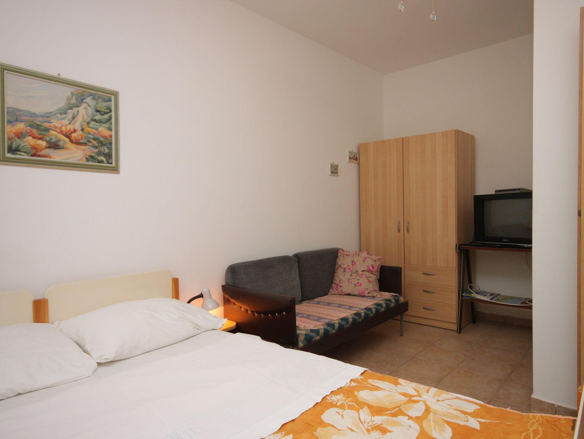 Ferienwohnung bietet Platz für 3 Gäste. Die Betten sind in Schlafzimmern, die es 1 gibt, und in Esszimmer, innerhalb einer Gesamtfläche von 21m2, angeordnet. Die Gäste haben eine eigene Terrasse zur Verfügung, auf der sie in warmen Sommernächten genießen können. Es ist erlaubt, Speisen auf dem Gemeinschafts-Grill vorzubereiten. In der Unterkunftseinheit besteht die Möglichkeit des Mitbringens von Haustieren gegen Aufpreis. IM PREIS INBEGRIFFEN: Kurtaxe, Endreinigung, Klimatisierung, Internet, Bügeleisen, Bügelbrett, Föhn, tragbarer Grill. VERBINDLICHE ZUSÄTZLICHE KOSTEN: Aufzahlung für Kurzaufenthalte (prozentualer Zuschlag pro Nächtigungsanzahl: 30% - 1, 20% - 2, 10% - 3). UNVERBINDLICHE ZUSÄTZLICHE KOSTEN: Wäschewaschen (5,00 € Waschen), Haustiere (10,00 € pro Nacht). Die Verfügbarkeit zusätzlicher Dienstleistungen in Ihrem reservierten Termin und die Preise derselben (falls nicht aufgeführt) müssen im Voraus überprüft werden. Zusätzliche Dienstleistungen die in der Zahlungsaufforderung nicht aufgeführt sind werden direkt beim Vermieter bezahlt, angenommen der Gast nutzt auch diese.