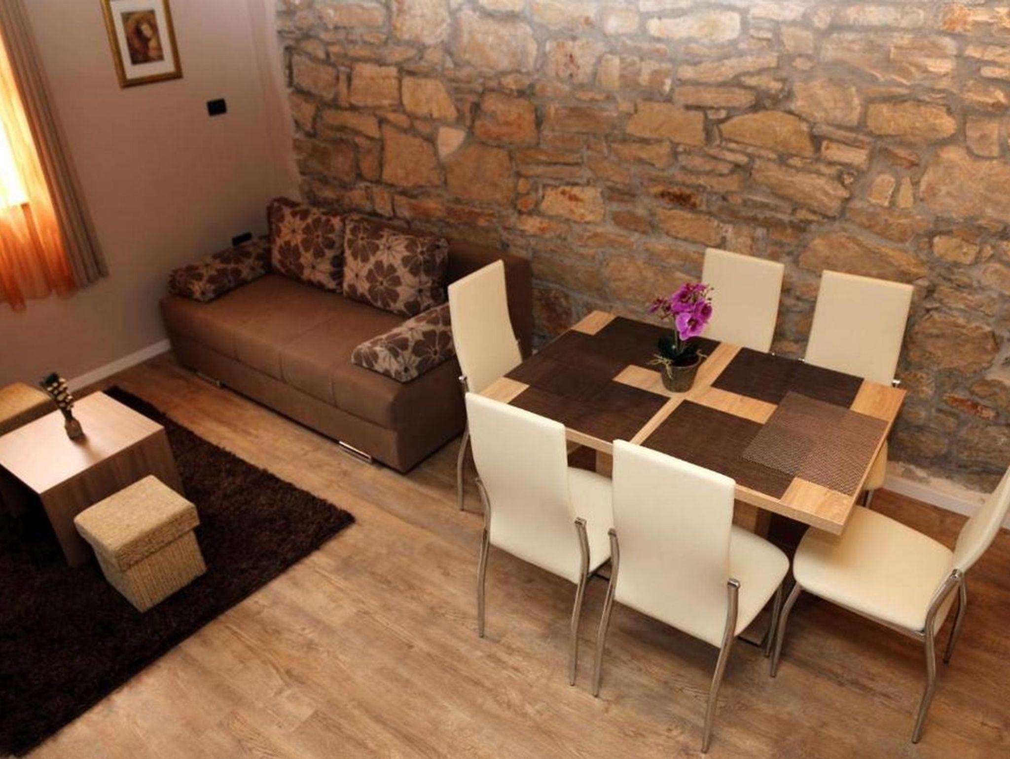 Ferienwohnung bietet Platz für 6 Gäste. Die Betten sind in Schlafzimmern, die es 2 gibt, und in Wohnzimmer, innerhalb einer Gesamtfläche von 69m2, angeordnet. Die Gäste haben eine eigene Terrasse zur Verfügung, auf der sie in warmen Sommernächten genießen können. Für vollen Genuss und Entspannung gibt es einen privaten Grill für Gäste dieser Unterkunft. Während ihres Aufenthalts können sich Gäste im privaten Schwimmbad entspannen. IM PREIS INBEGRIFFEN: Kurtaxe, Endreinigung, Klimatisierung, Pool, Internet, Wäschewaschen, Kinderbett, Bügeleisen, Bügelbrett, Föhn. Die Verfügbarkeit zusätzlicher Dienstleistungen in Ihrem reservierten Termin und die Preise derselben (falls nicht aufgeführt) müssen im Voraus überprüft werden. Zusätzliche Dienstleistungen die in der Zahlungsaufforderung nicht aufgeführt sind werden direkt beim Vermieter bezahlt, angenommen der Gast nutzt auch diese. Ermäßigung auf den Grundpreis: Gratistag 14=13 (bei einem Aufenthalt von 14 Tagen oder mehr erhalten Sie einen Gratistag für den Aufenthalt bis 31.12.26).