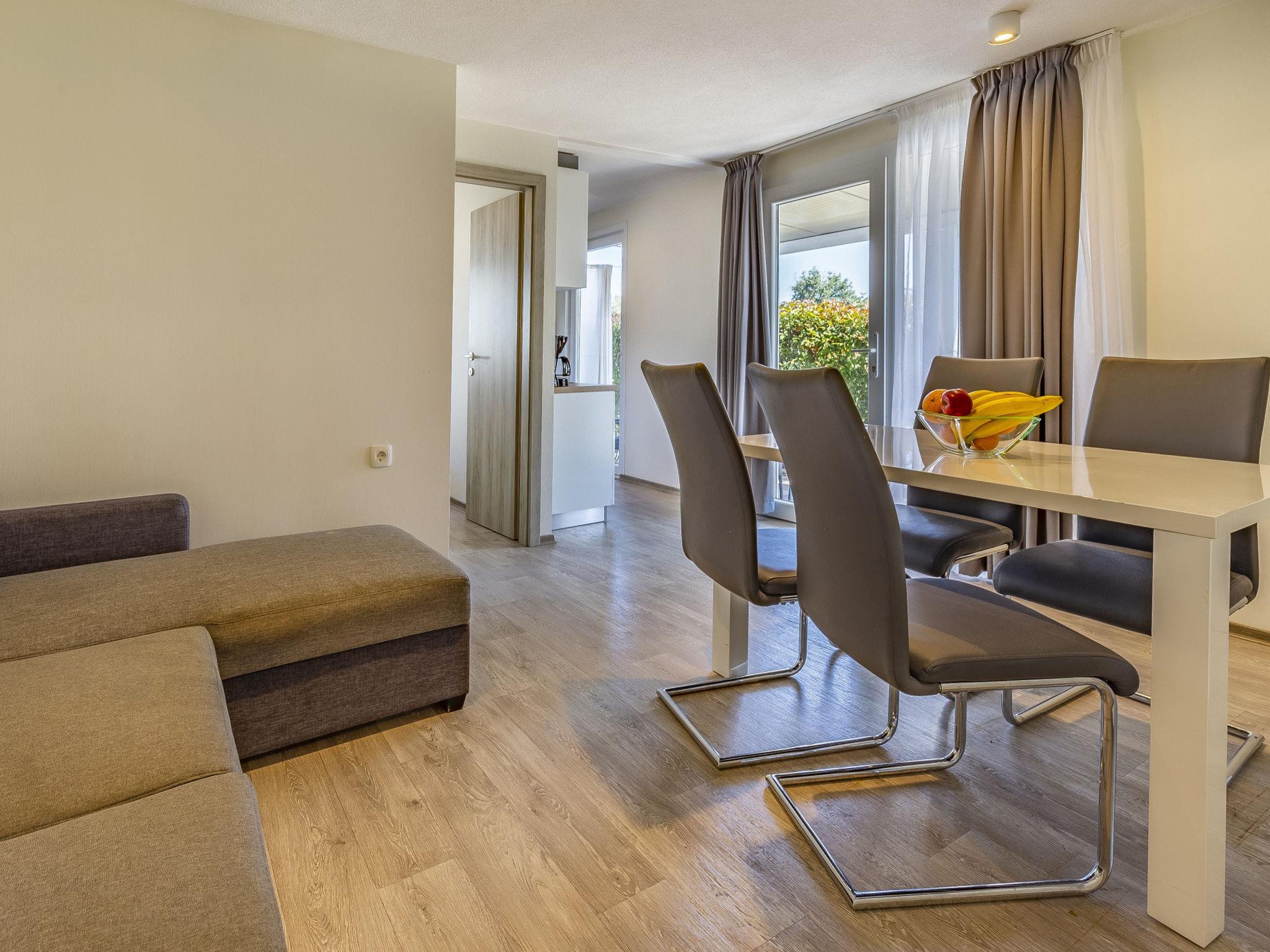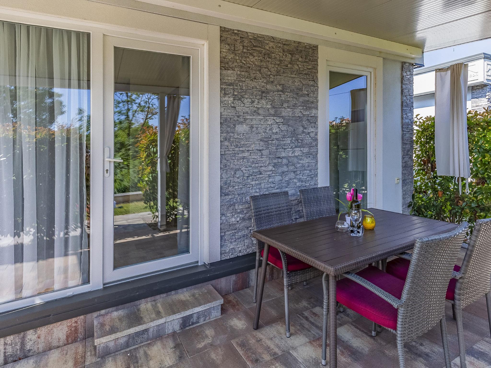 "Mobile home Superior", 3-room mobile home 40 m2. Living/dining room with 1 double sofabed (160 cm, length 200 cm), satellite TV (flat screen), air conditioning. Exit to the terrace. 1 room with 1 french bed (160 cm, length 200 cm), shower/WC. 1 room with 2 beds (90 cm, length 200 cm). Open kitchen (dishwasher, 4 ceramic glass hob hotplates, microwave, freezer, electric coffee machine). Shower/WC. Terrace 15 m2, roofed. Terrace furniture. Facilities: Internet (WiFi, free). Maximum 1 pet/ dog allowed.