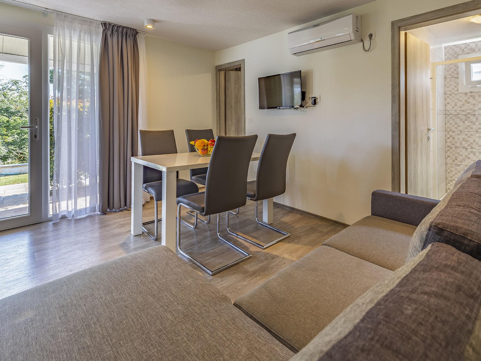 Resort "Rojnic". In a sunny position, 1 km from the sea, 1 km from the beach. For shared use: property 2'000 m2 (fenced), garden with lawn and plants, swimming pool (60 m2, depth 140 cm, seasonal availability: 01.May. - 01.Oct.) with internal staircase. Unconventional pool shape. Shower/WC in the pool area, children's pool, outdoor shower, tennis, basketball, volleyball, terrace (20 m2), garden furniture, barbecue, children's playground (slide, swing). In the house: internet access, trampoline, washing machine (extra) (for shared use). Parking at the house on the premises. Shop 1 km, restaurant 1 km, bus stop 400 m, sandy beach 7 km pebble beach 1 km, rocky beach 1 km. Walking paths from the house 100 m, cycle lane 150 m. Nearby attractions: Nature park Kamenjak 6 km. Please note: the photograph shows a typical example. Additional accommodations can be booked.