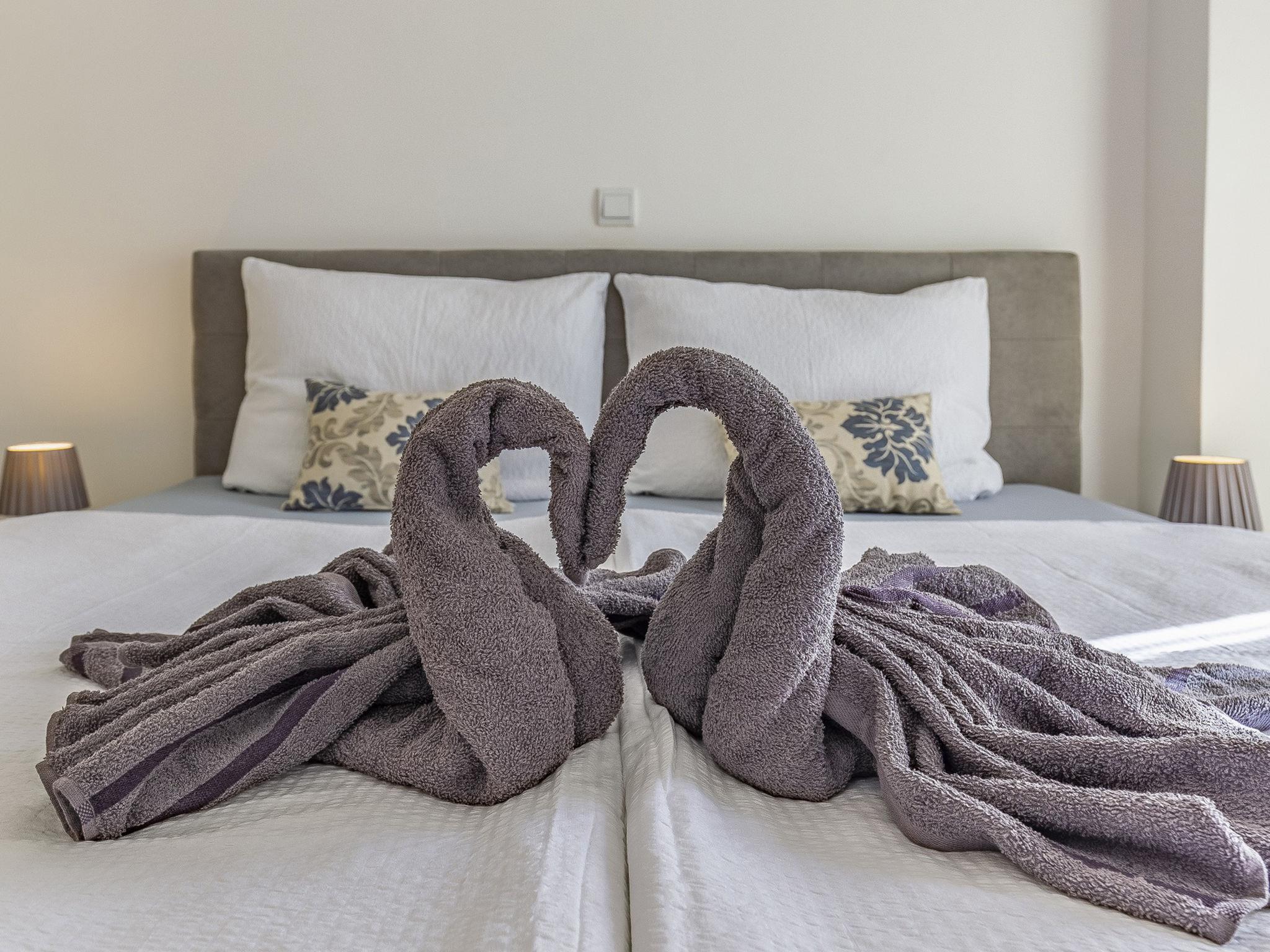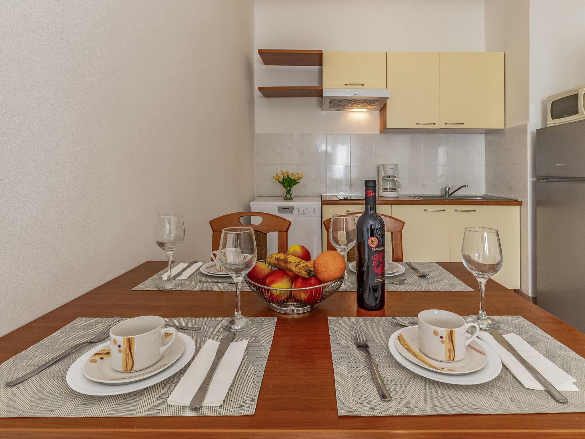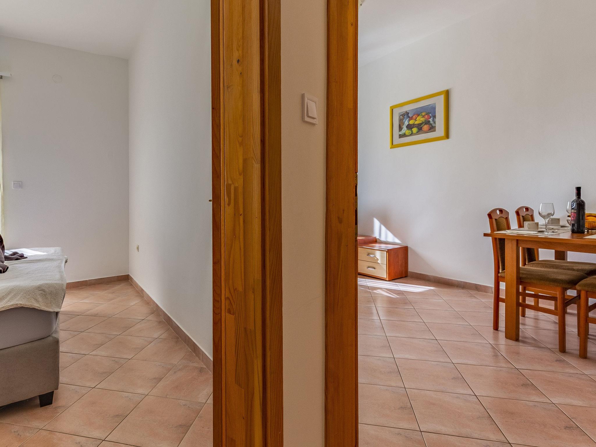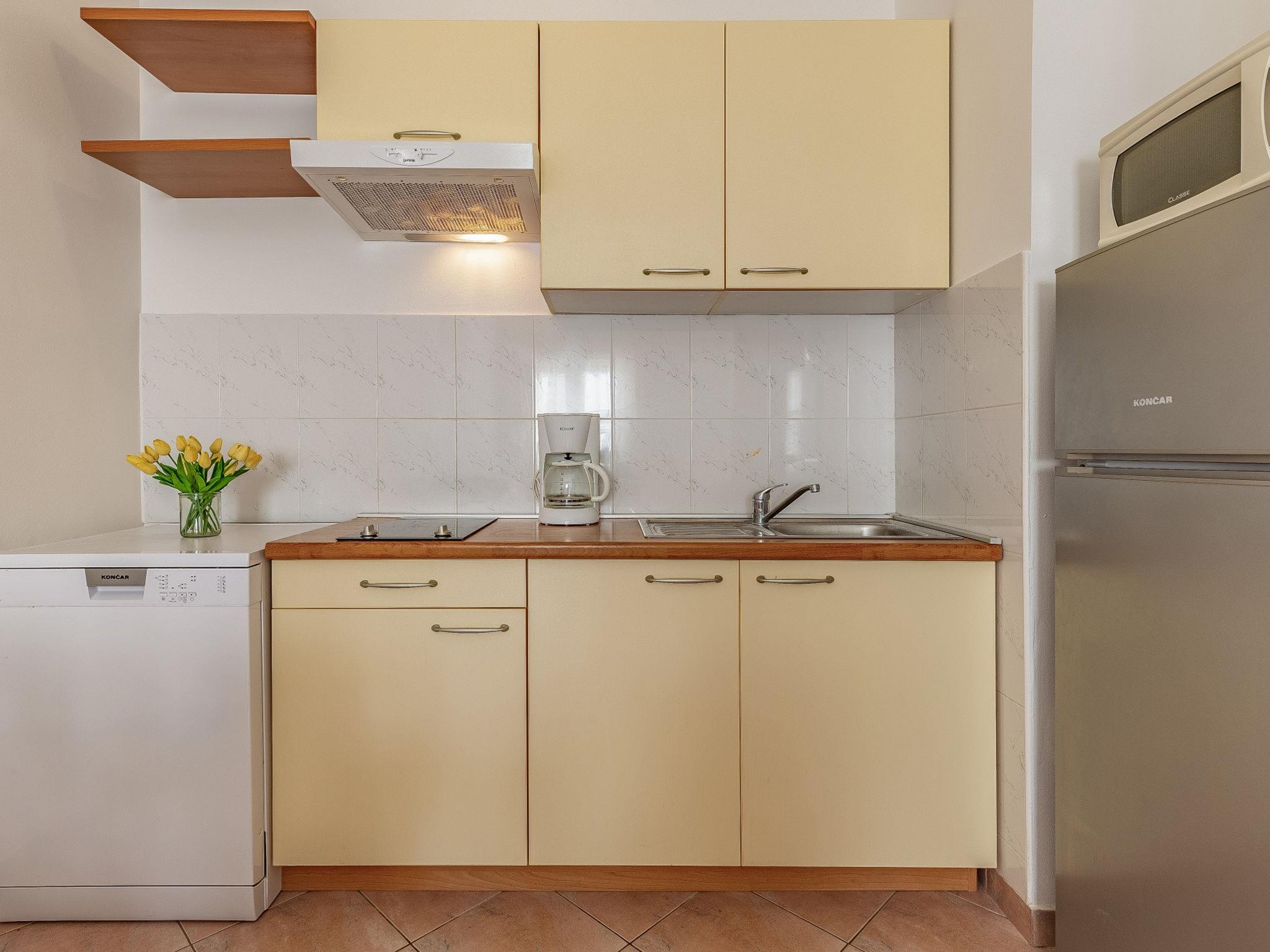 "Apartment Rok 1", 2-room apartment 40 m2, on the ground floor. Living/dining room with 1 double sofabed (150 cm, length 200 cm), satellite TV. 1 room with 1 french bed (180 cm, length 200 cm), air conditioning. Exit to the terrace. Open kitchen (2 hot plates, dishwasher, kettle, microwave, freezer, electric coffee machine). Shower/WC. Air-conditioning (extra). Terrace 5 m2. Terrace furniture. View of the garden. Facilities: Internet (WiFi, free). Maximum 1 pet/ dog allowed.