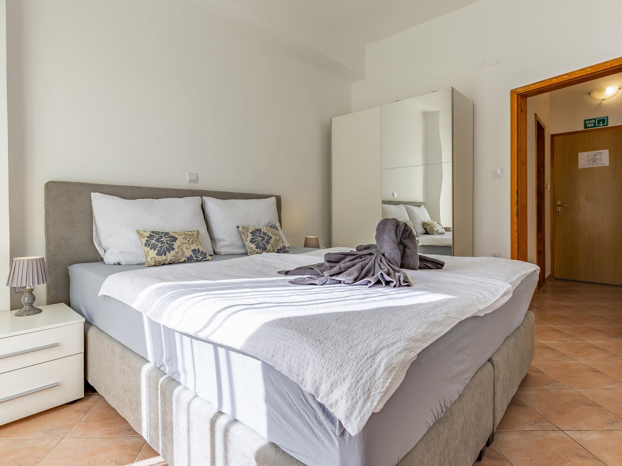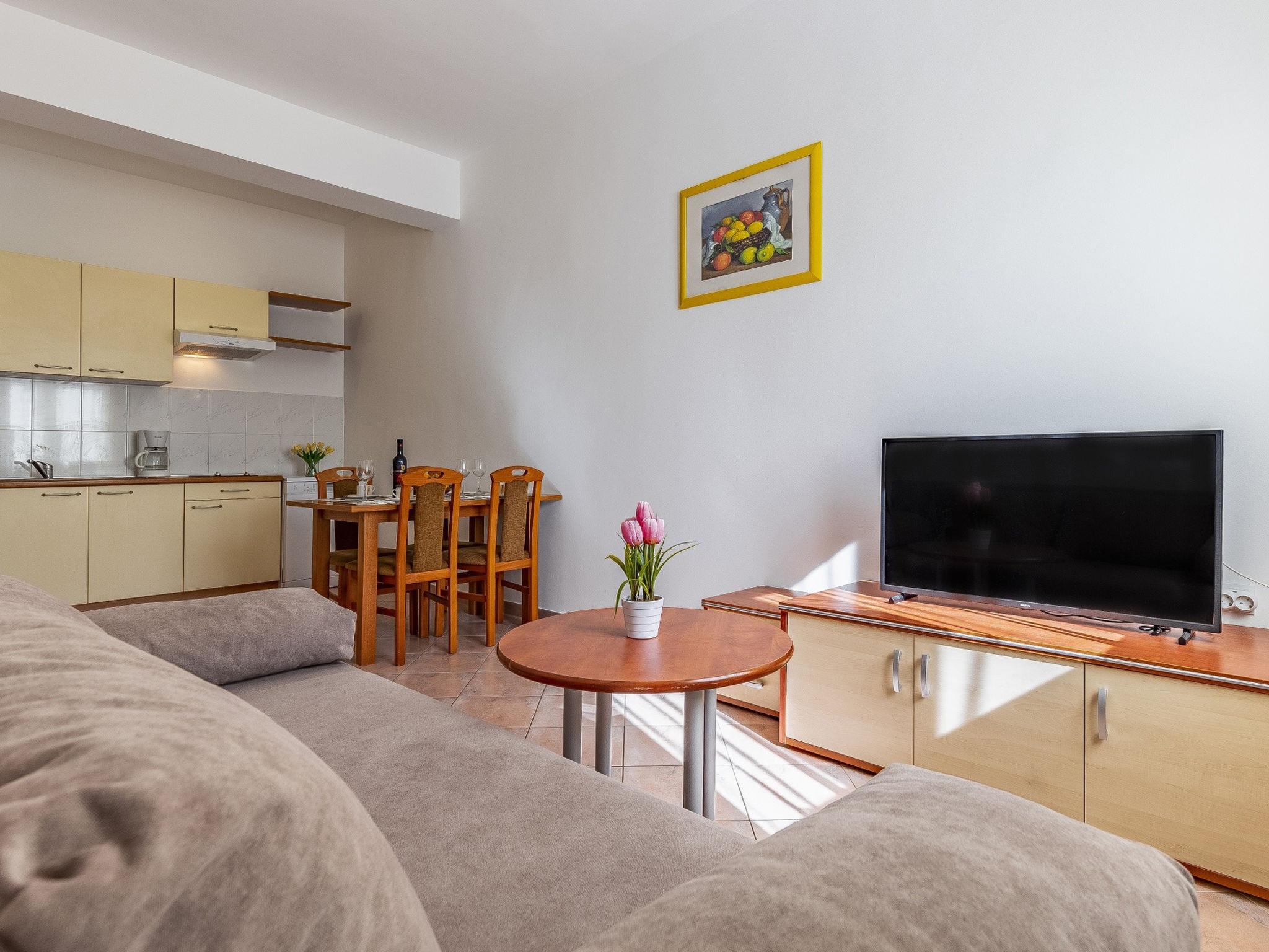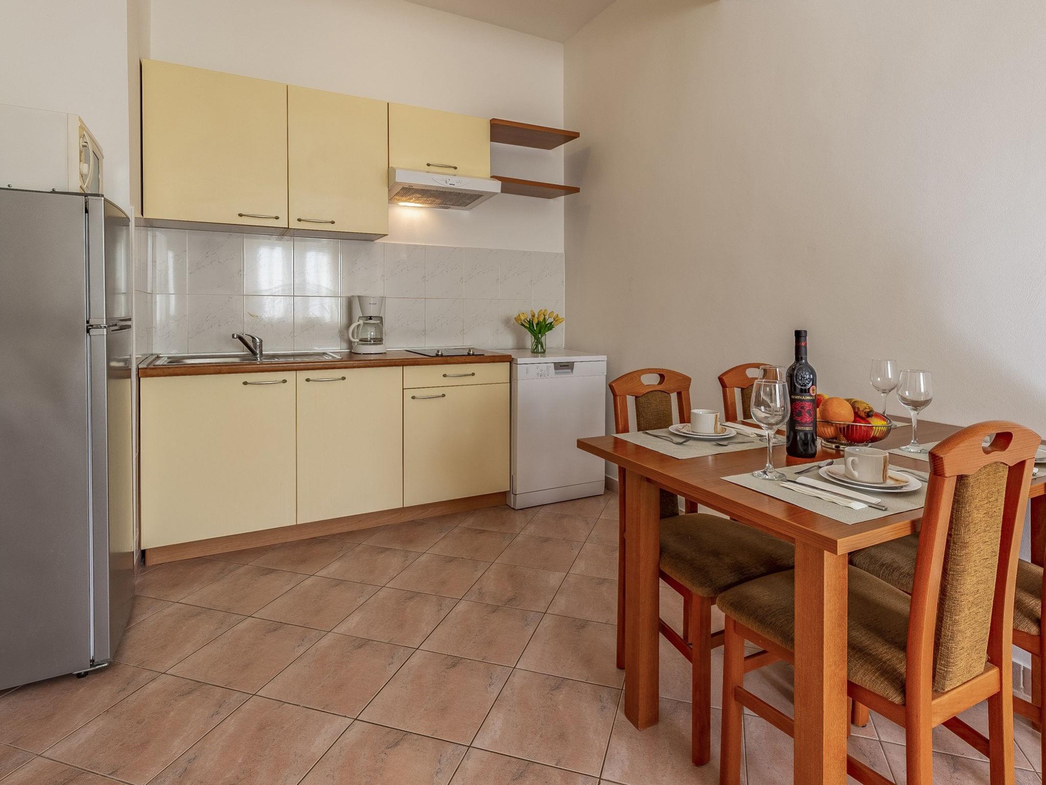 "Apartment Rok 4", 2-room apartment 40 m2, on the ground floor. Living/dining room with 1 double sofabed (150 cm, length 200 cm), satellite TV. 1 room with 2 beds (90 cm, length 200 cm), air conditioning. Exit to the terrace. Open kitchen (2 hot plates, dishwasher, kettle, microwave, freezer, electric coffee machine). Shower/WC. Air-conditioning (extra). Terrace 5 m2. Terrace furniture. View of the garden. Facilities: Internet (WiFi, free). Maximum 1 pet/ dog allowed.