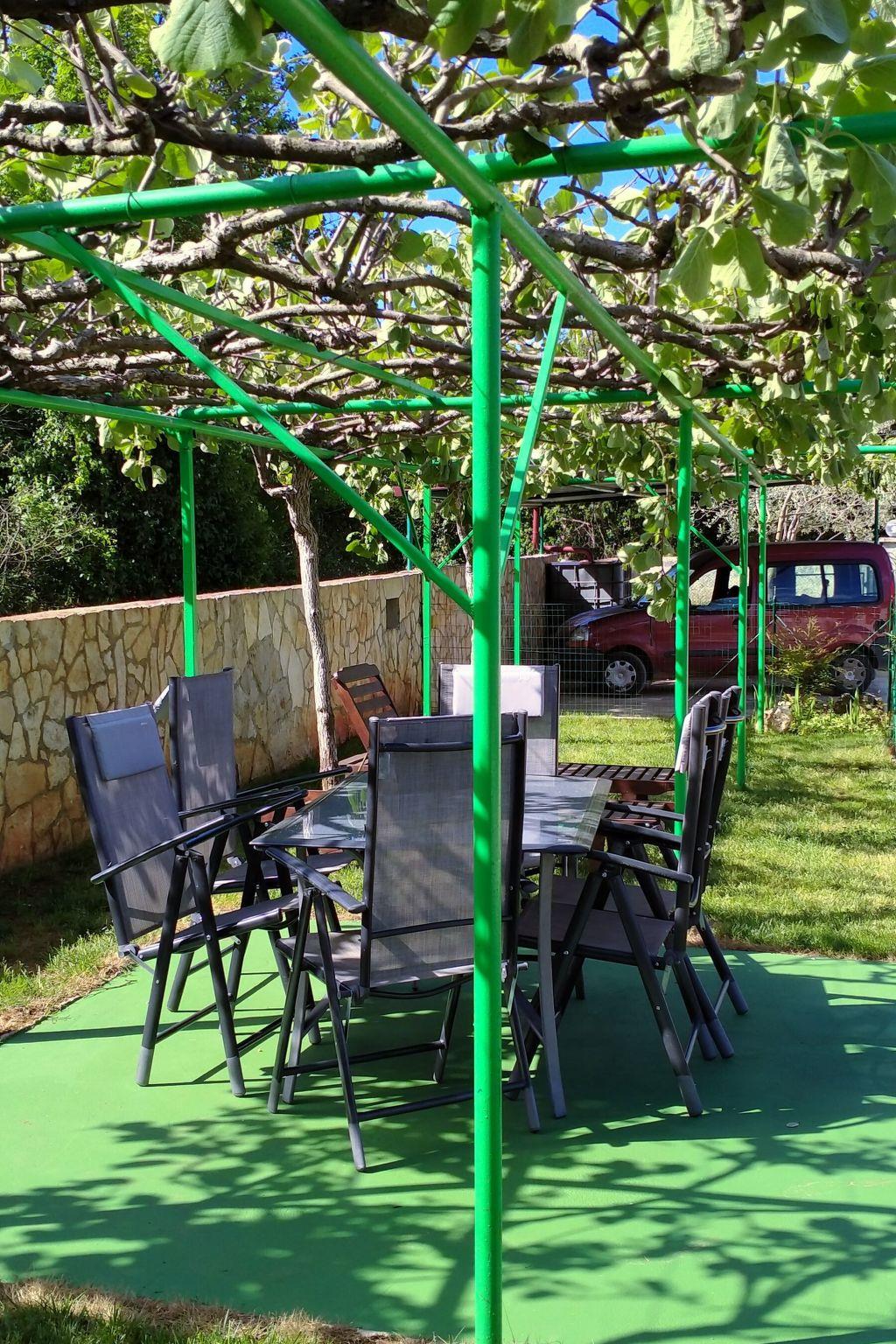 In the courtyard there is a roofed outdoor kitchen with a grill and terrace with garden furniture, a parasol and two deckchairs. To the left of the entrance area of the site there is a little house where the owner and his wife live and on the right there is a large, covered parking space for three cars. You go through a further gate behind the parking area to your holiday house. The whole courtyard is enclosed, so is suitable for children and dogs. As the two houses are about 30 metres from each other, holiday guests can enjoy absolute privacy, but the owner is also available to assist with any queries.