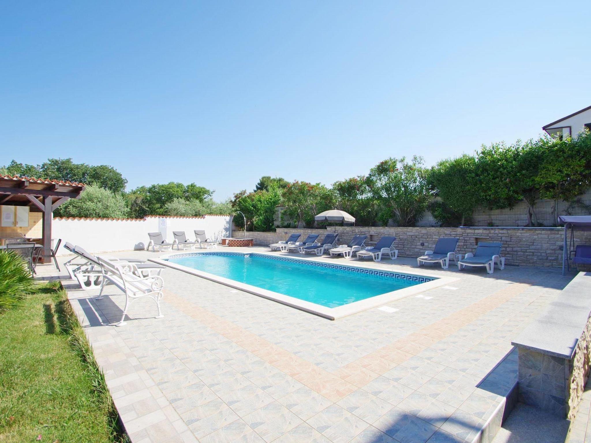 Lovely vacation house located on the south of the Istrian peninsula in the peaceful village Banjole. The vicinity of attractive beaches and children park, unique nature park Kamenjak, archeological sites and nice restaurants with local food make this house an attractive choice for the holiday. Two bedroom apartment on the ground floor and 2 smaller apartments on the first floor and second floor share the swimming pool and fenced ample garden. Well maintained greenery , barbeque and garden furniture make it a perfect spot for leisure and relaxation. For those seeking the hustle and bustle of the city life, nearby city of Pula is just 6 km distanced. Here, the vivid atmosphere of the local green market, street events, colorful stores and various restaurant will indulge your senses. Culture lovers will find valuable Roman remains among which the most prominent one is Roman Colosseum, the stage of various concerts, operas, festivals..