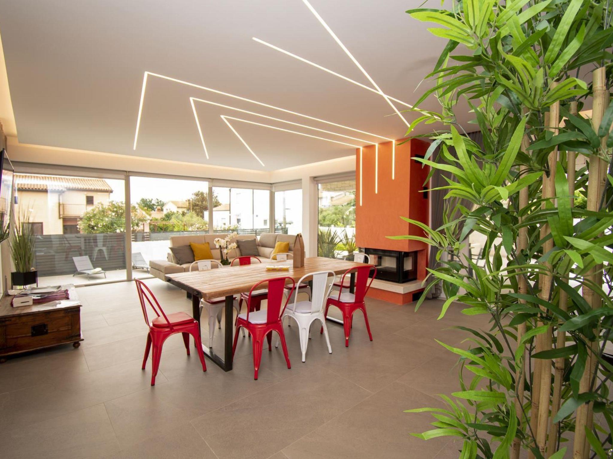 - living room with air condition, Smart SAT-TV, sofa , dining area, exit to garden and pool