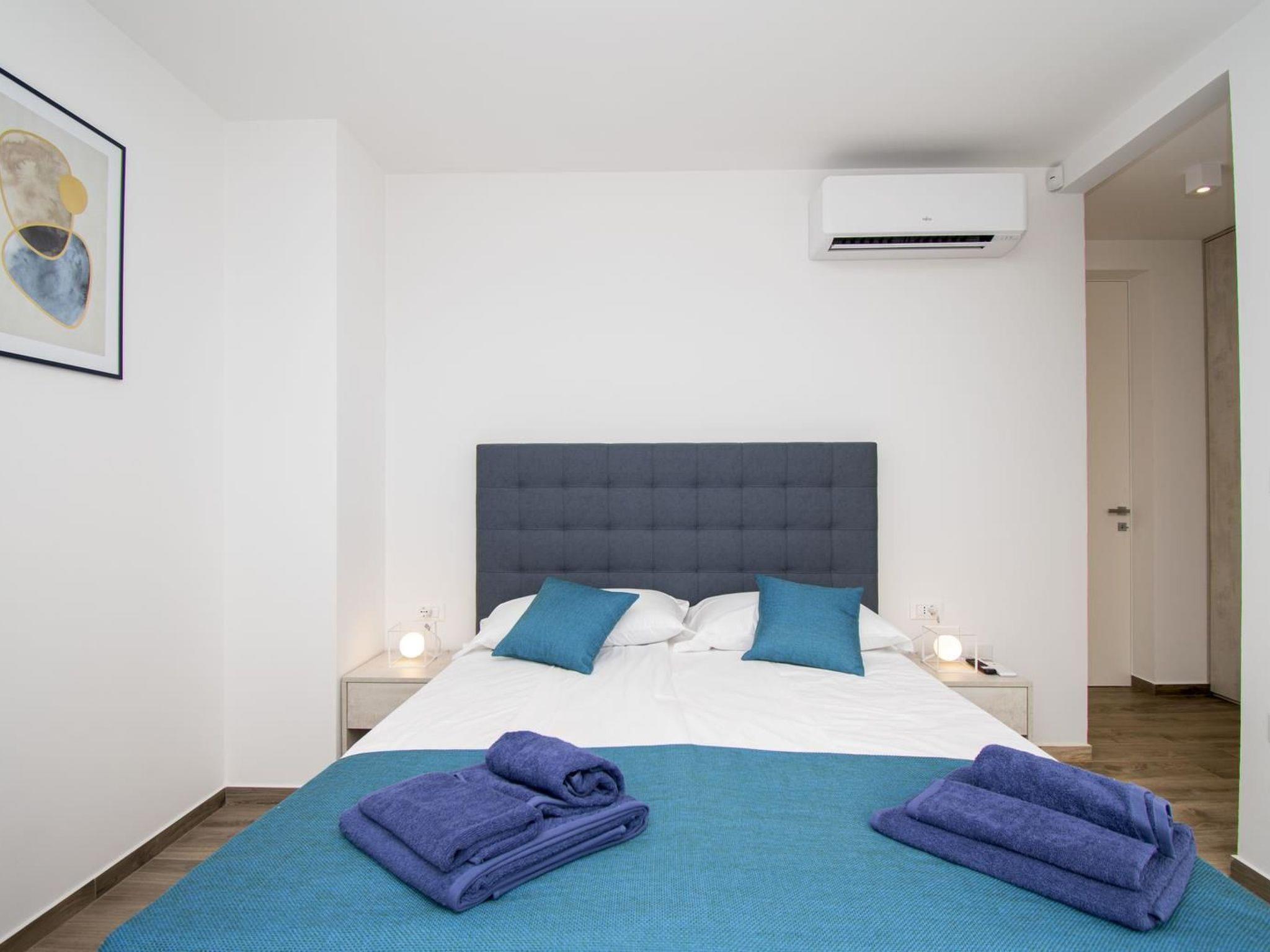 - 2nd bedroom with double bed ( 160cm x 200cm), air condition, en suite bathroom ( WC, bidet, shower, wash basin, hair dryer ), SAT-TV, exit to the balcony