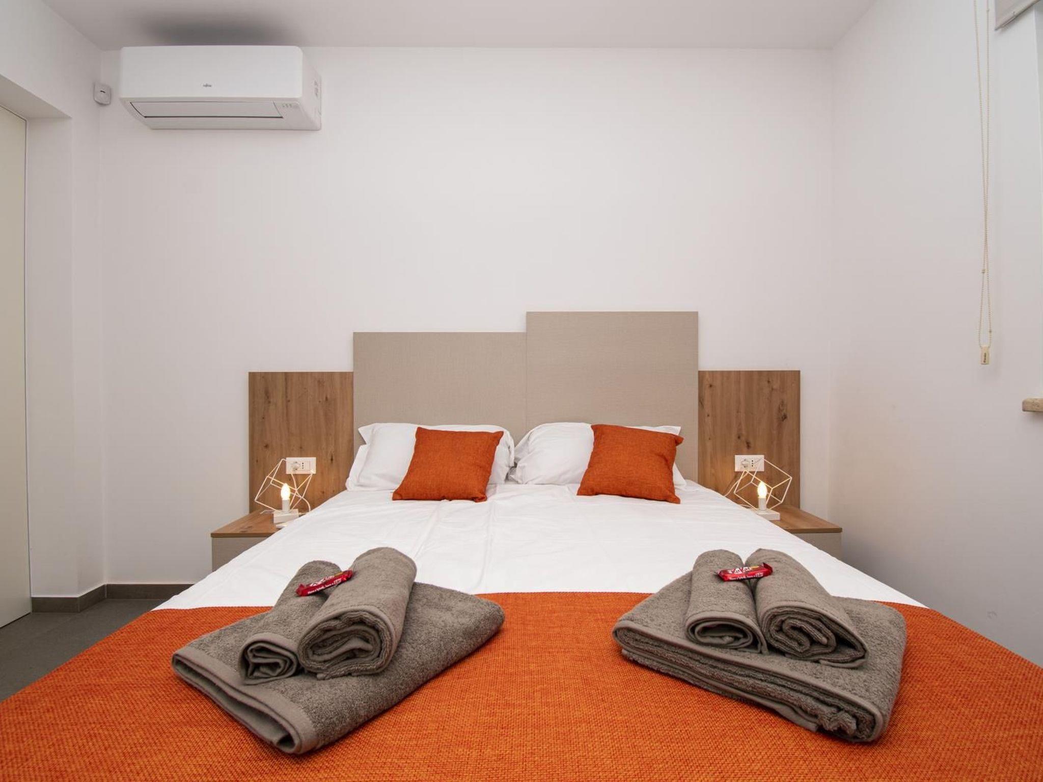 - 1st bedroom with double bed (160cm x 200cm), air condition, SAT-TV, en suite bathroom ( WC, bidet, shower, wash basin, hair dryer ), exit to the terrace