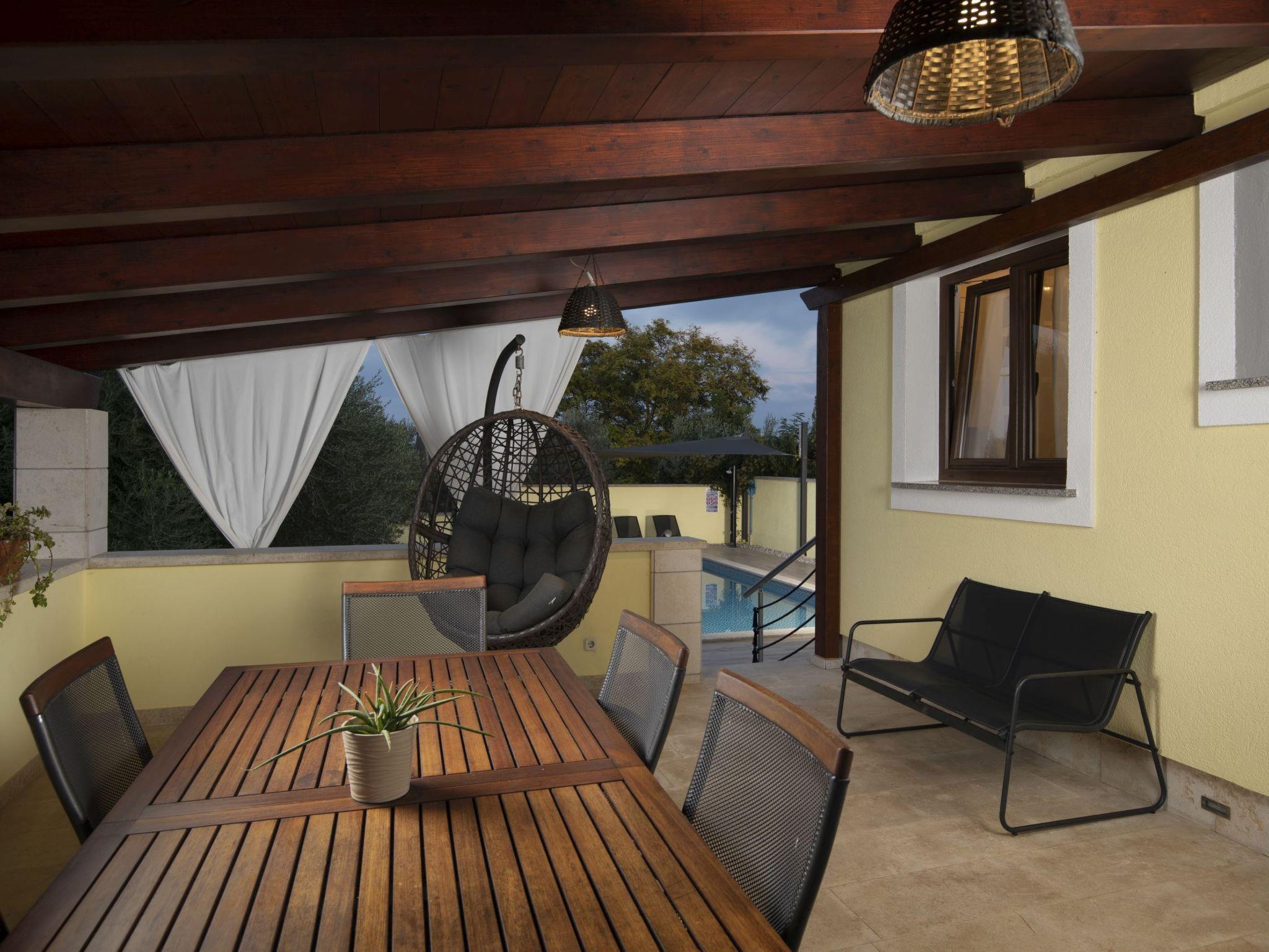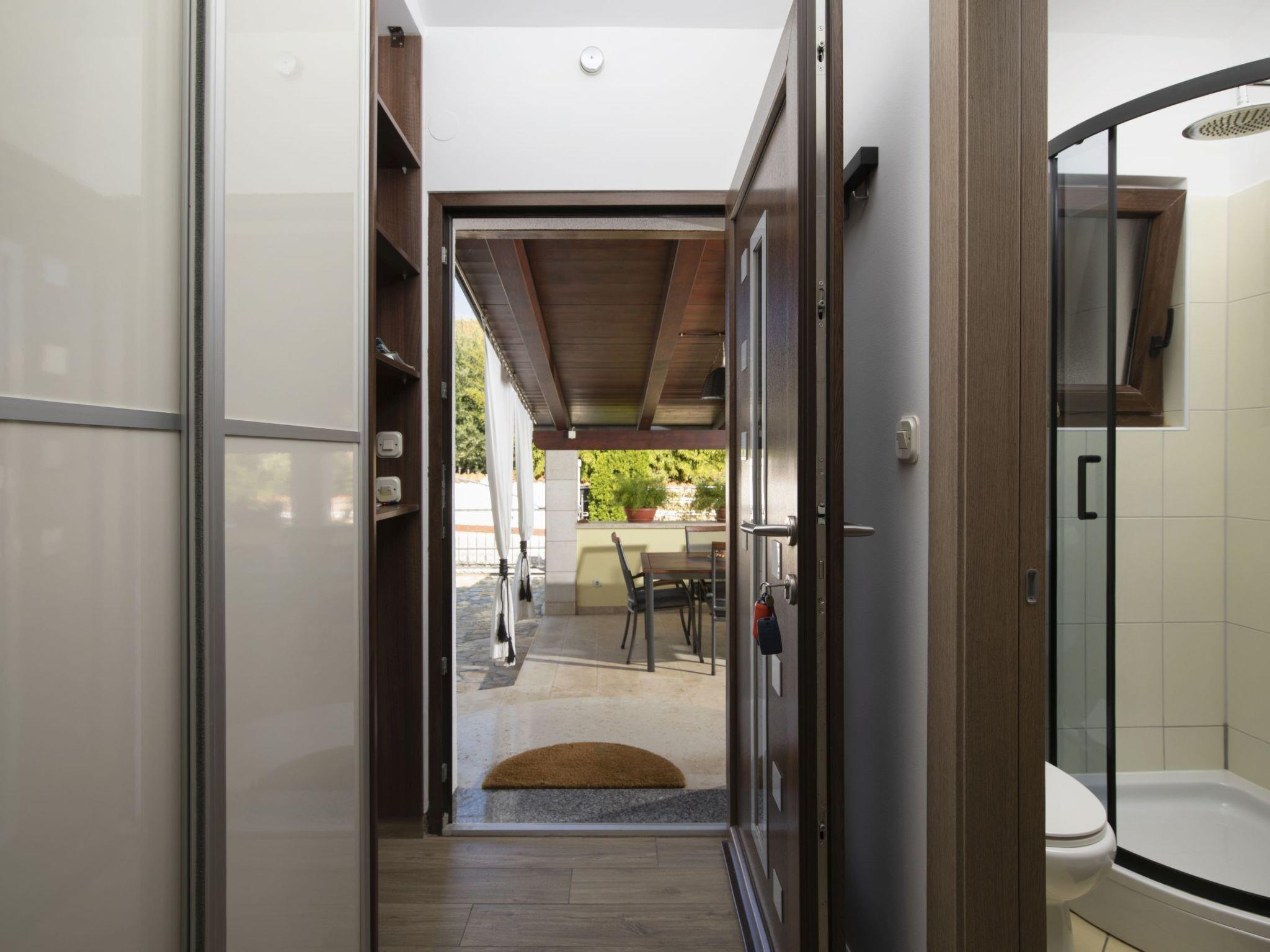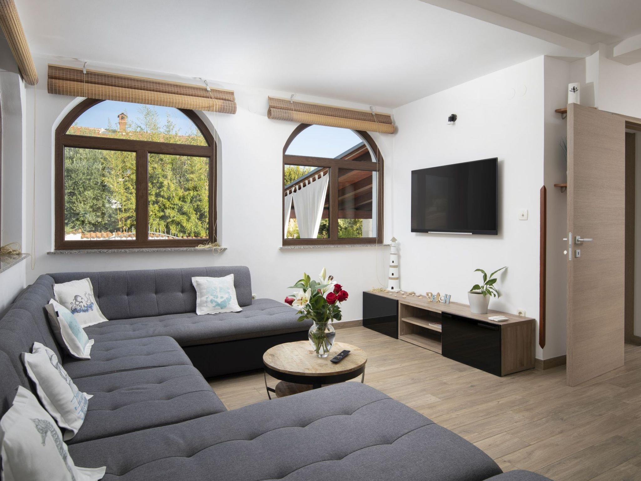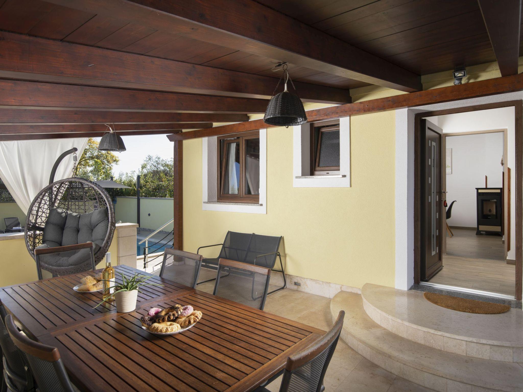 The outdoor area of Holiday House Captains is a true highlight, designed for ultimate relaxation and entertainment. The private garden encompasses a pool exclusive for your use, inviting you to take a refreshing dip at any time of day. The presence of a barbecue sets the stage for delightful outdoor dining experiences, while the terrace, outfitted with seating for six, offers the perfect backdrop for enjoying meals or simply lounging under the balmy Istrian sun. This setting promises memorable moments with loved ones in a serene environment.