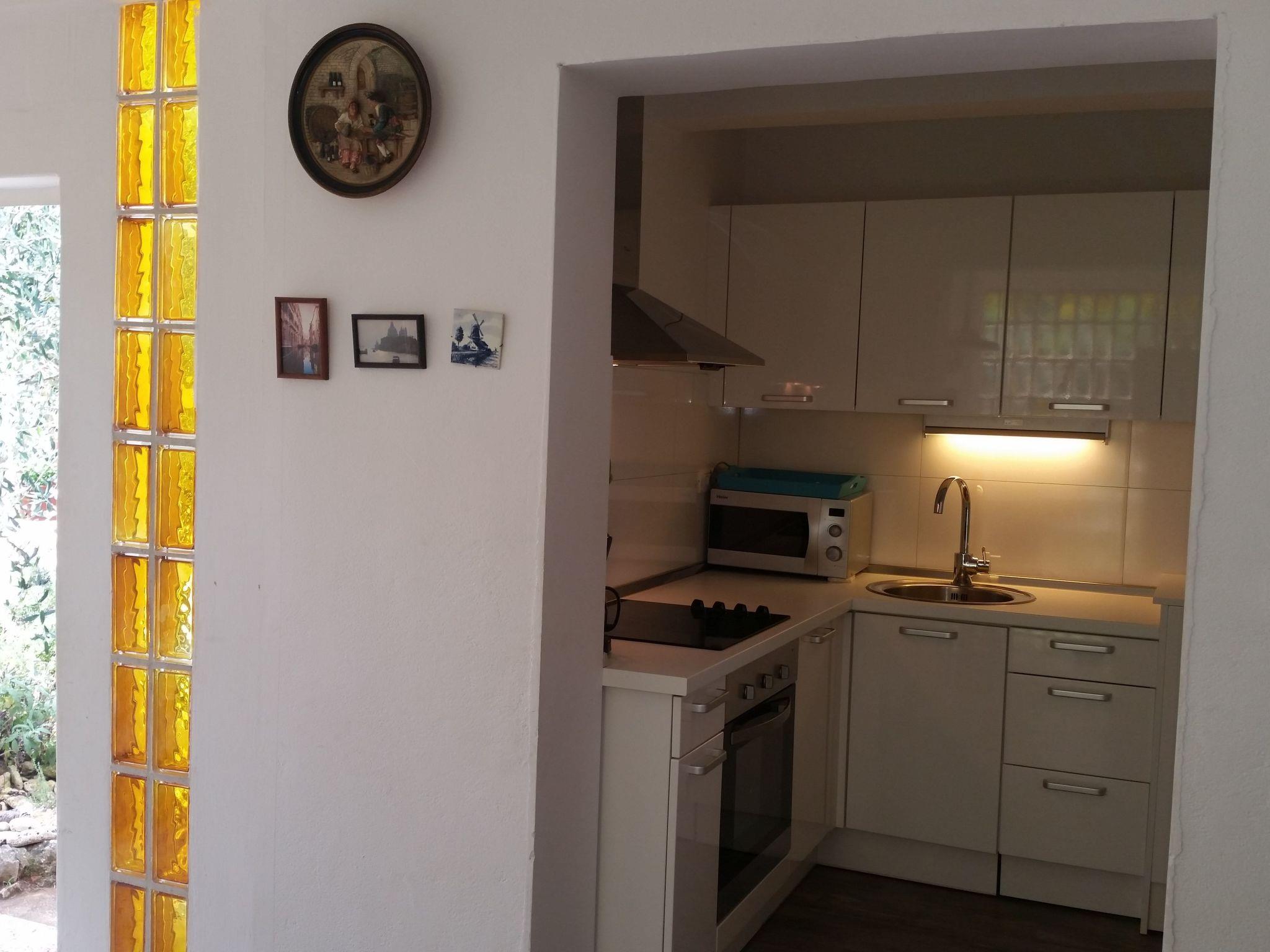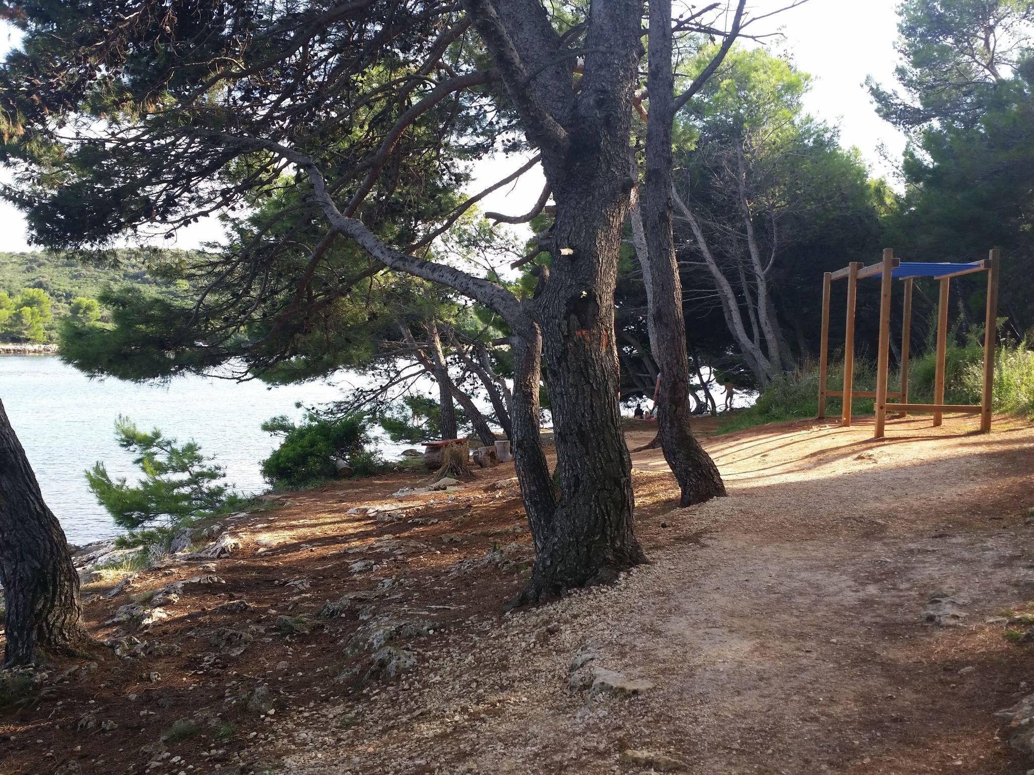 The beach is only about 70 meters away. There is a nice pine forest with a promenade along the sea, ideal for walking around. Close to the beach are pine trees so you have natural shade if you like it. Also, there are a lot of small natural rocky beaches with not a lot of people where you can enjoy the peace and green nature.