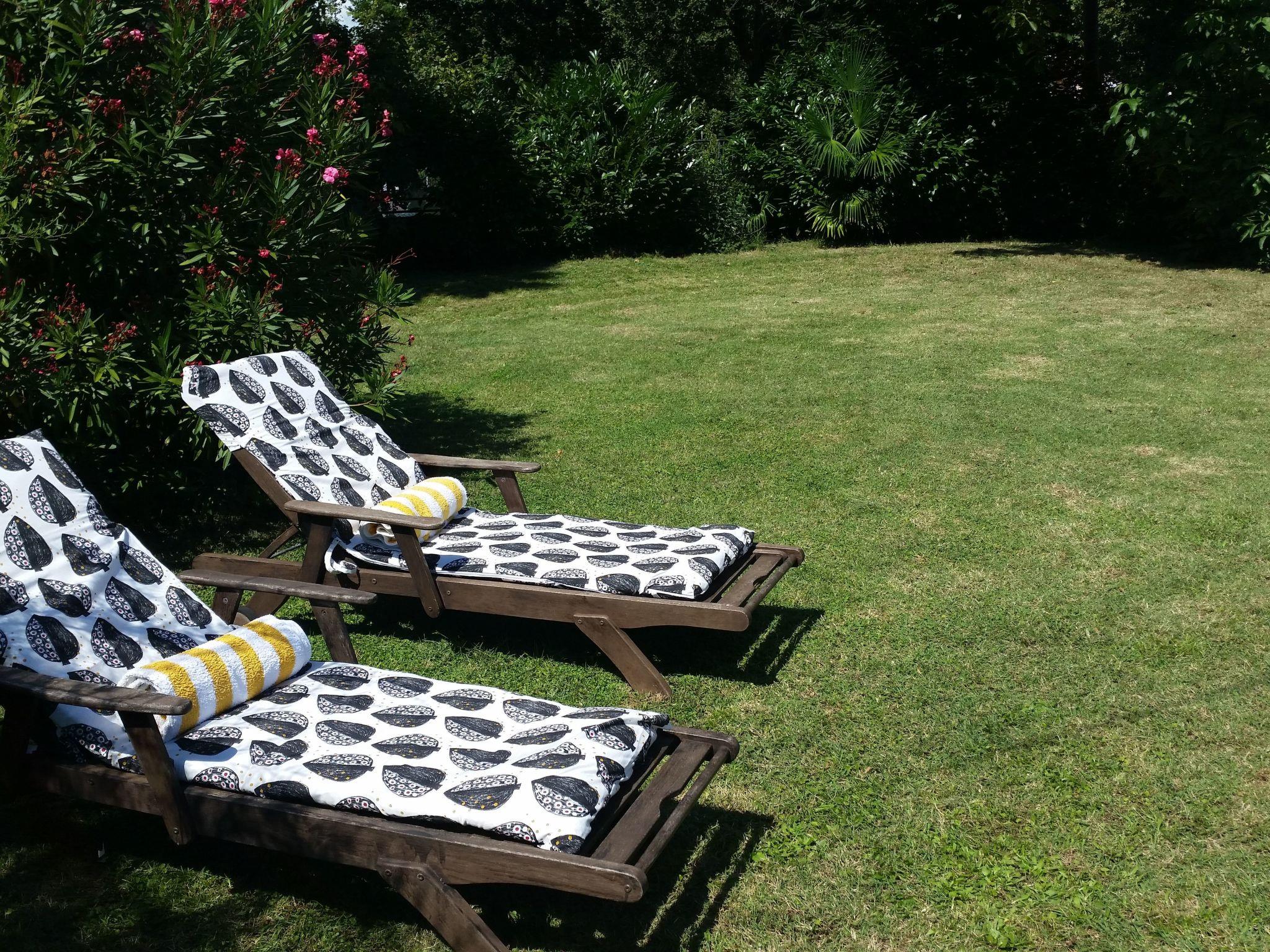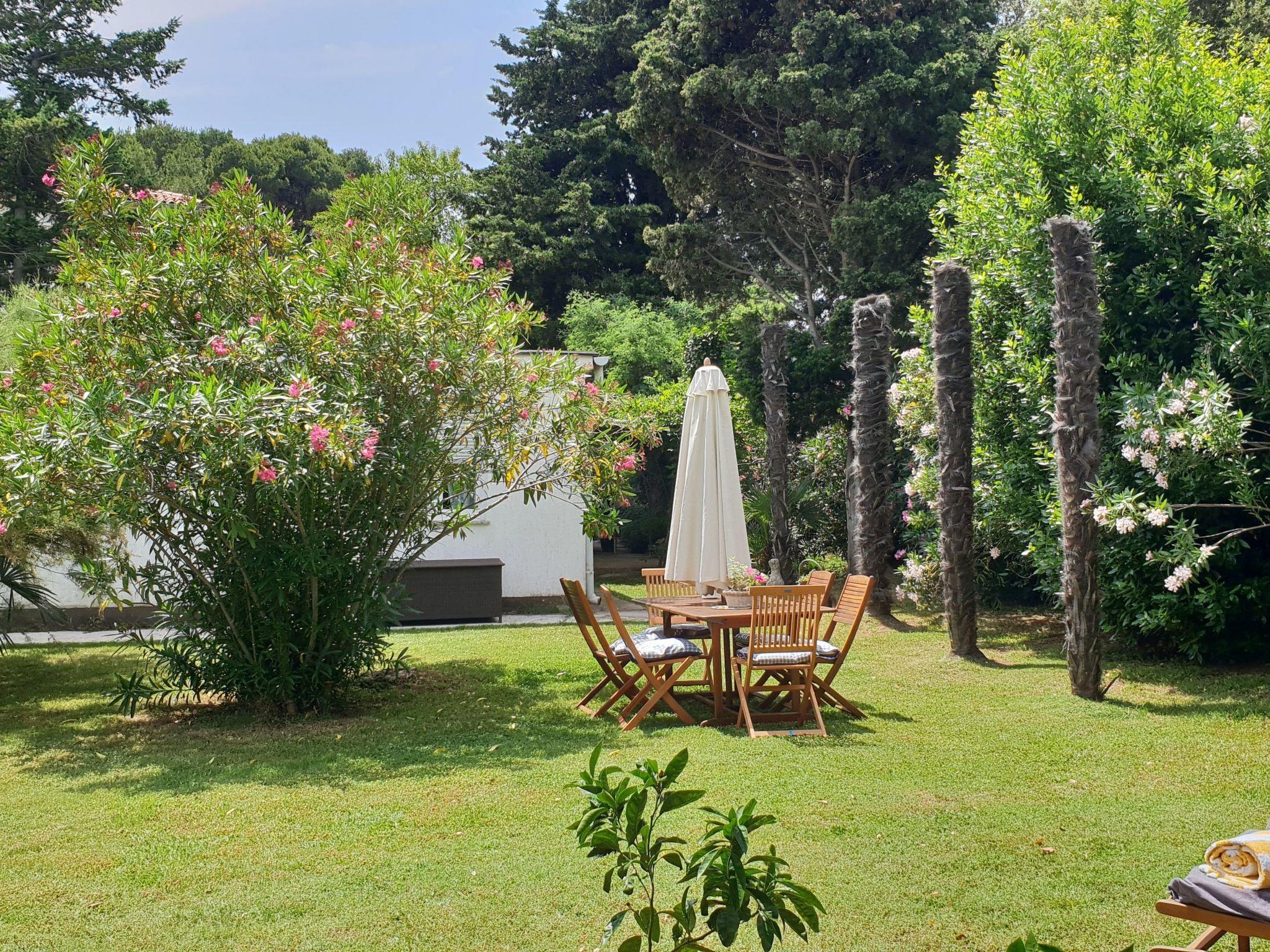 A highlight is the garden that extends to 600m² and is full of palm trees, oleanders, lavender, rosmary and flowers. It is also equipped with a barbecue and garden furniture (sunshade and two garden loungers). And right in front of the bungalow you find a sunny terace with a table and chairs for outdoor dining with a view of the garden and the sea. Parking place is on the house court.