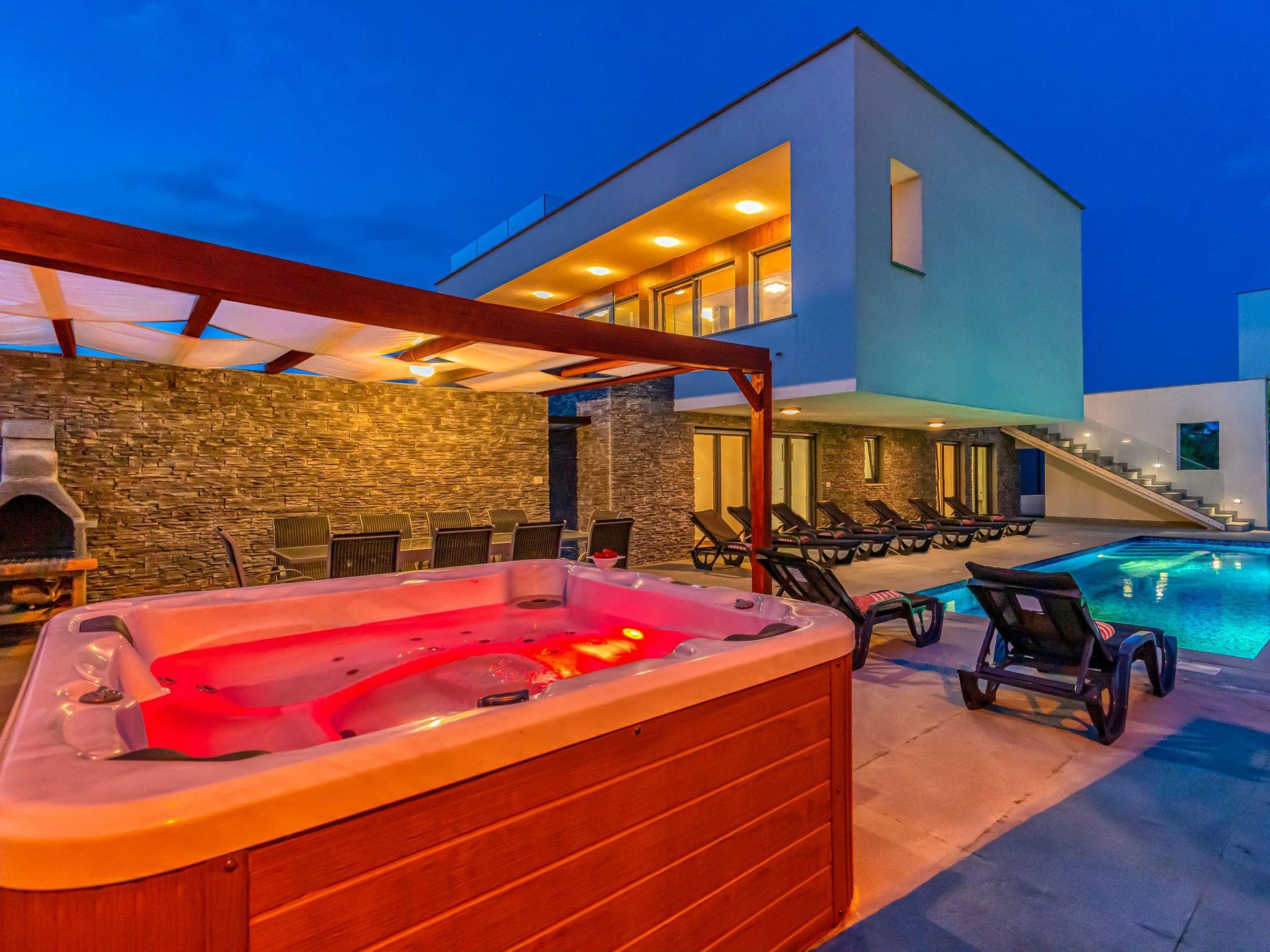- Private outdoor hot tub with LED coloured light & massage jets