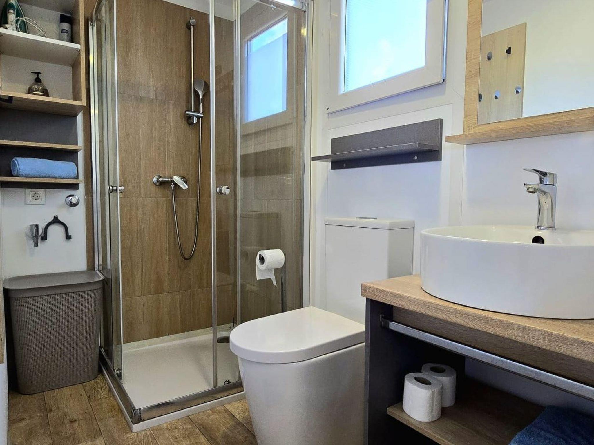 This charming 32 m² mobile home is situated in a perfect location – right by the sea, in a quiet corner surrounded by a lush olive grove and untouched nature. It is an ideal choice for up to 6 people, whether you come with family, friends or a partner, and offers a harmonious combination of comfort and authentic Mediterranean ambience.