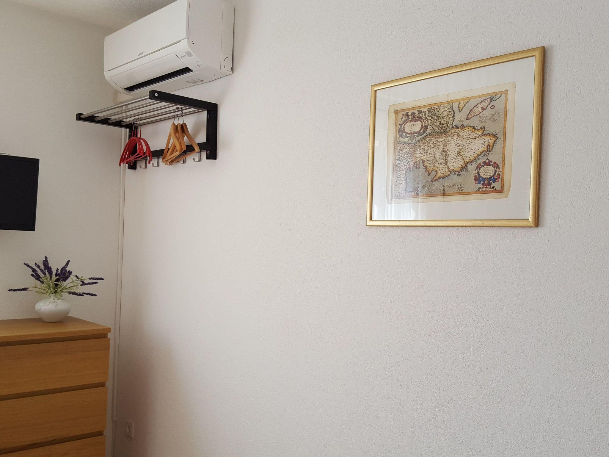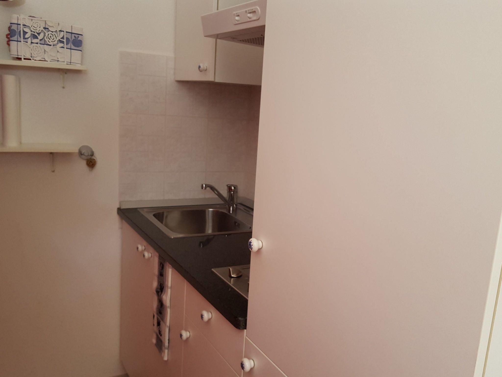 Inside, you will find a tastefully furnished living room with a cosy French bed. Other amenities include air conditioning, which ensures a pleasant room temperature, an espresso pot and a filter coffee machine for enjoyable mornings, as well as a kettle. The bathroom has a practical shower. A modern kitchenette is available for communal evenings, and the possibility of washing clothes in the washing machine and tumble dryer available for communal use in the building means added convenience.