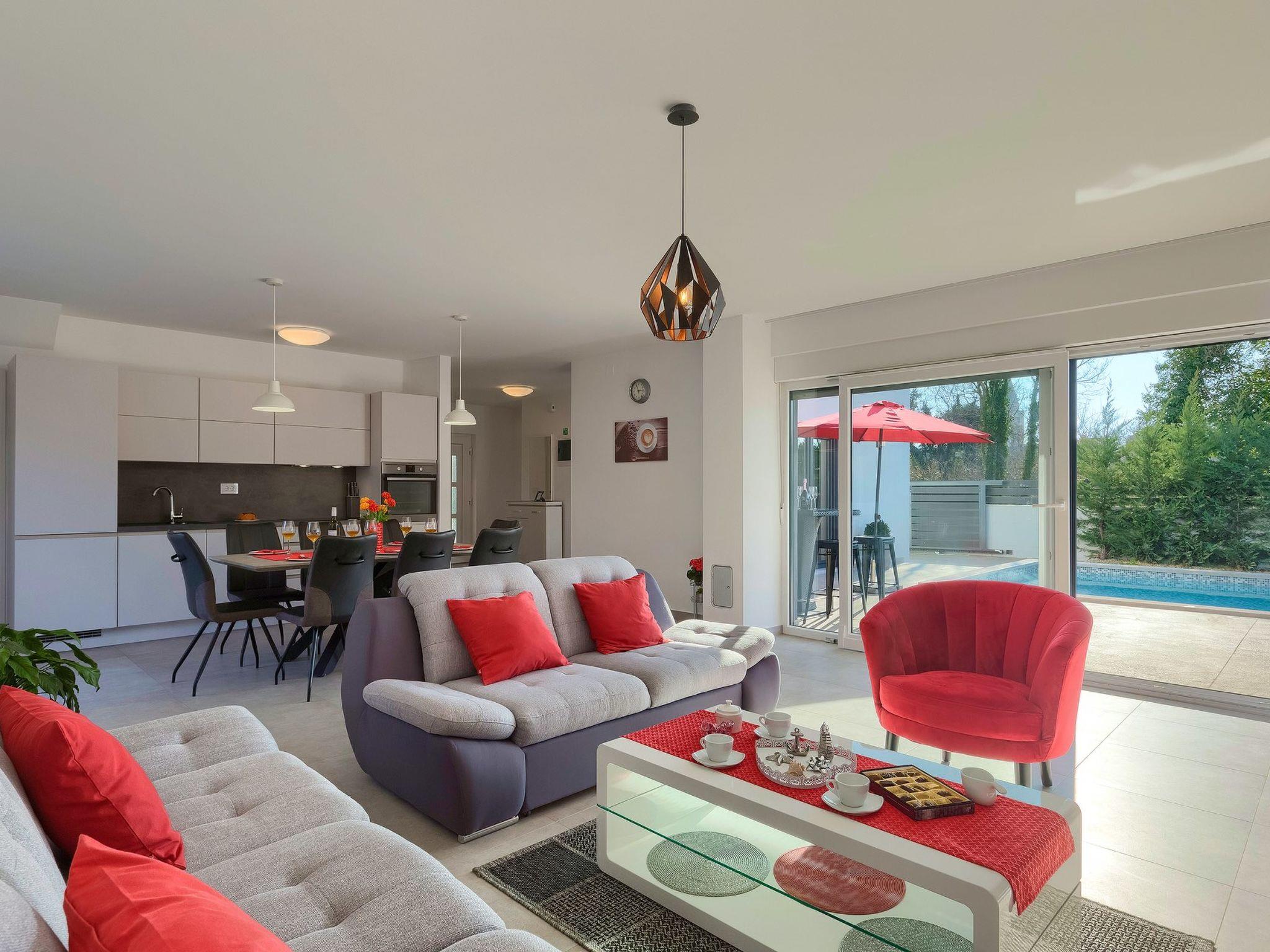 You would like to spend your vacation near all of the amenities a town offers, but you would also like to be able to enjoy some peace and quiet? Villa Ema could be the perfect choice ! This modern property has a total of 3 bedrooms and can accommodate up to 8 persons, making it ideal for a large family. Outside, there´s a nicely tended garden at your disposal, centred around a large swimming pool.