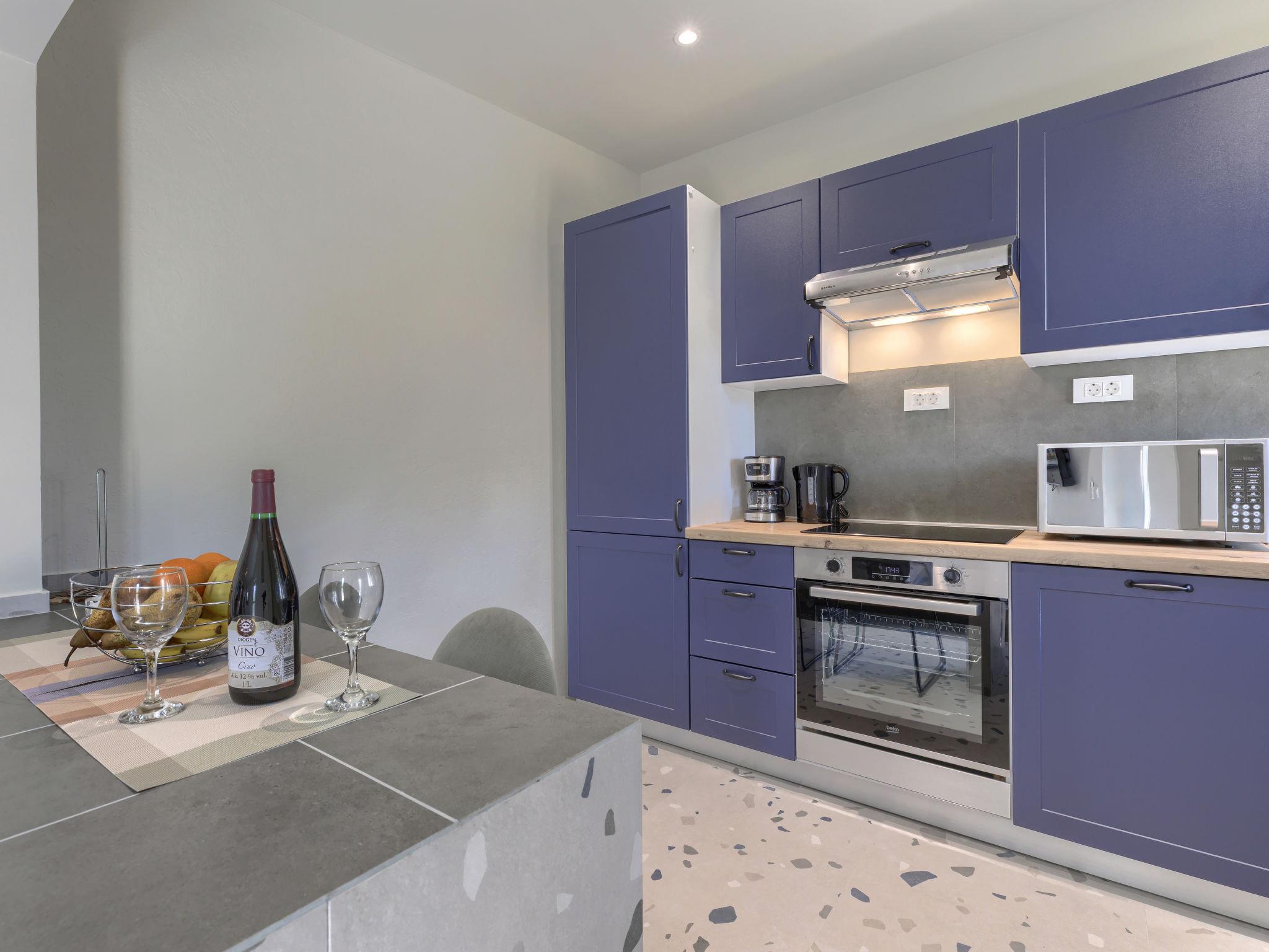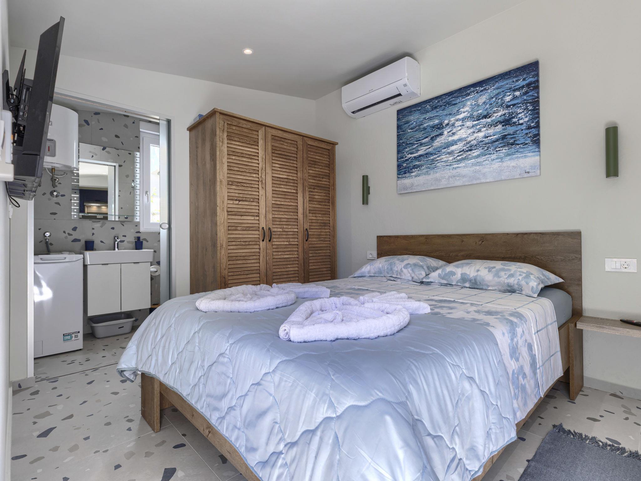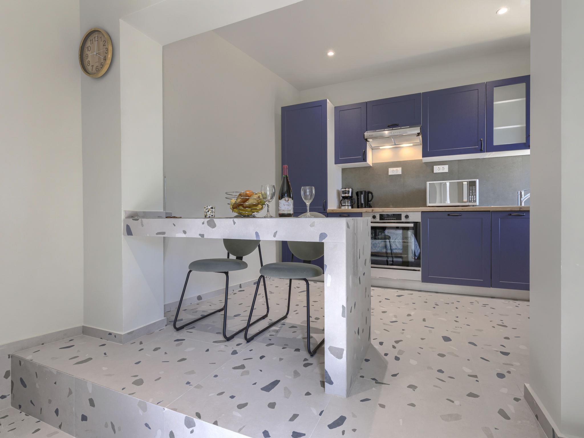 "More", 1-room studio 25 m2, on the ground floor. Beautiful furnishings: living/sleeping room with 1 french bed and satellite TV (flat screen), air conditioning. Exit to the terrace. Open kitchen (oven, dishwasher, 4 ceramic glass hob hotplates, toaster, freezer, electric coffee machine). Shower/WC. Forced-air heating. Facilities: Internet (WiFi, free). Please note: private entrance.