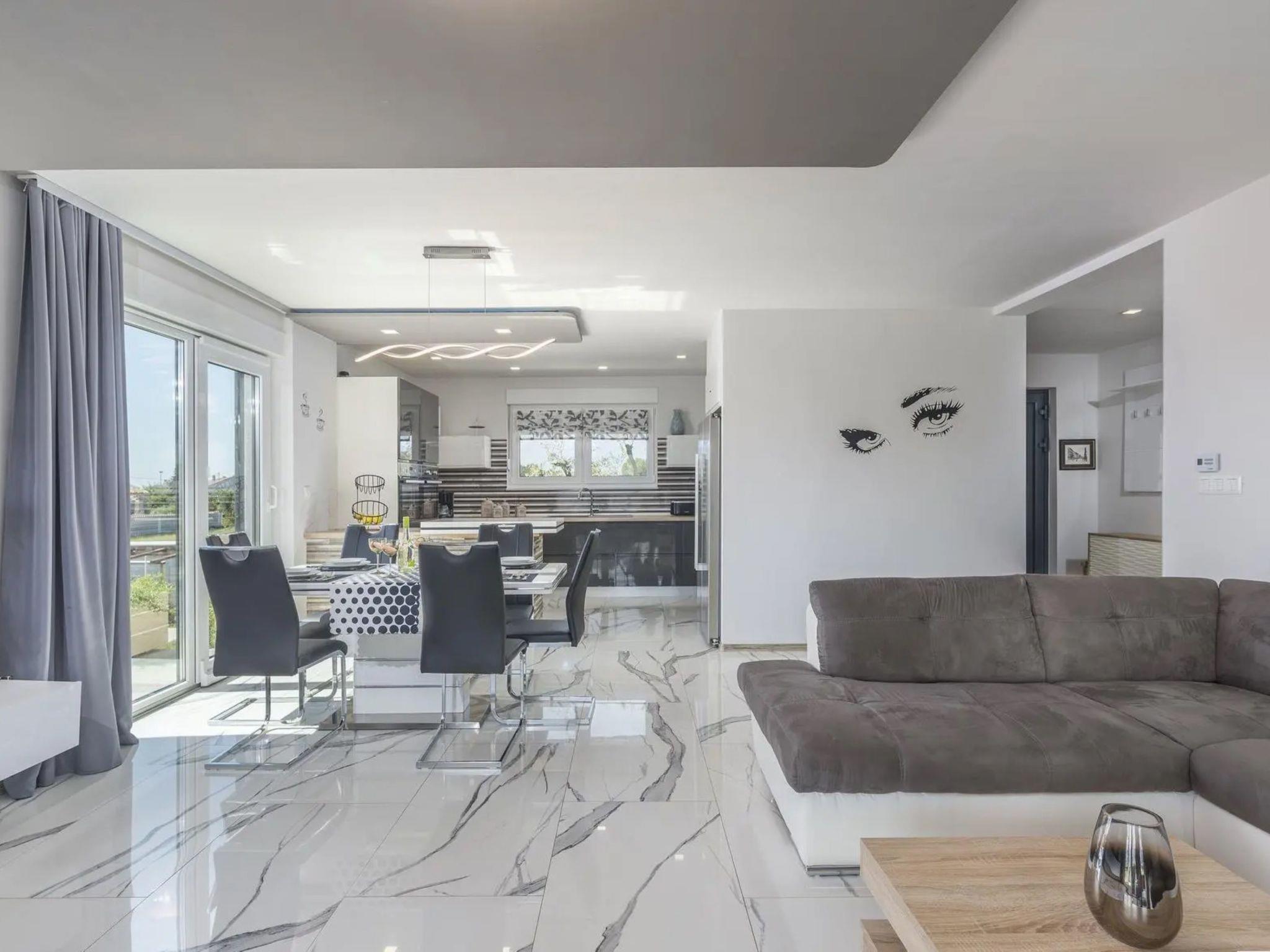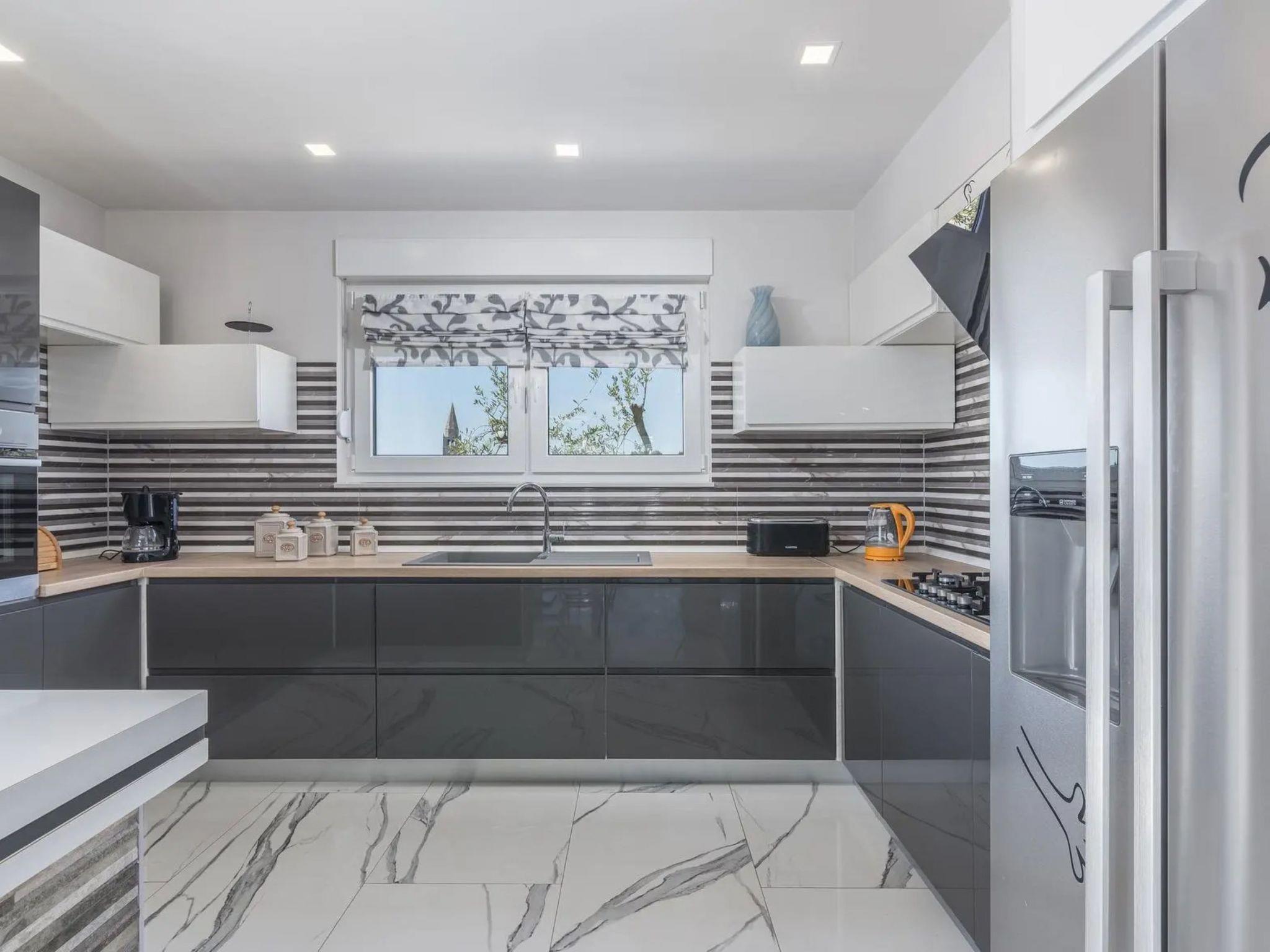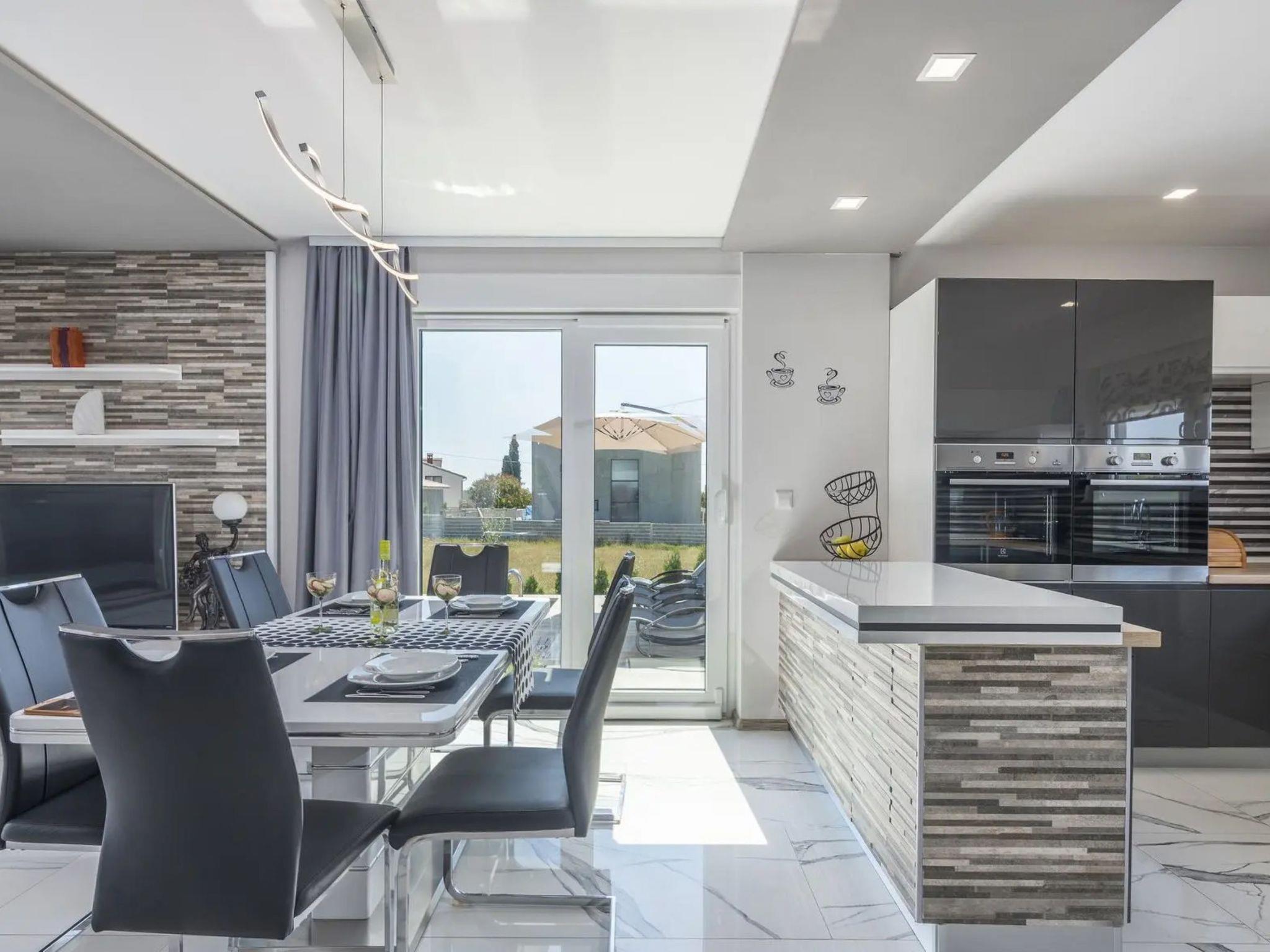 Galižana 5 km from Pula: Modern, cosy house "Ljiljana". 1 km from the centre of Galižana, 5 km from the sea, 5 km from the beach. Private: property 450 m2 (fenced), well-kept garden with wildlife garden and trees, swimming pool angular (8 x 3 m, depth 140 cm, seasonal availability: 01.May. - 01.Oct.) with internal staircase. Outdoor shower, terrace (20 m2), garden furniture, barbecue. In the house: internet access, air conditioning, washing machine. Parking (for 2 cars) at the house on the premises. Shop 400 m, restaurant 3 km, café 400 m, bus stop 1 km, pebble beach 5 km, rocky beach 5 km. Please note: airfield 8 km from the property.