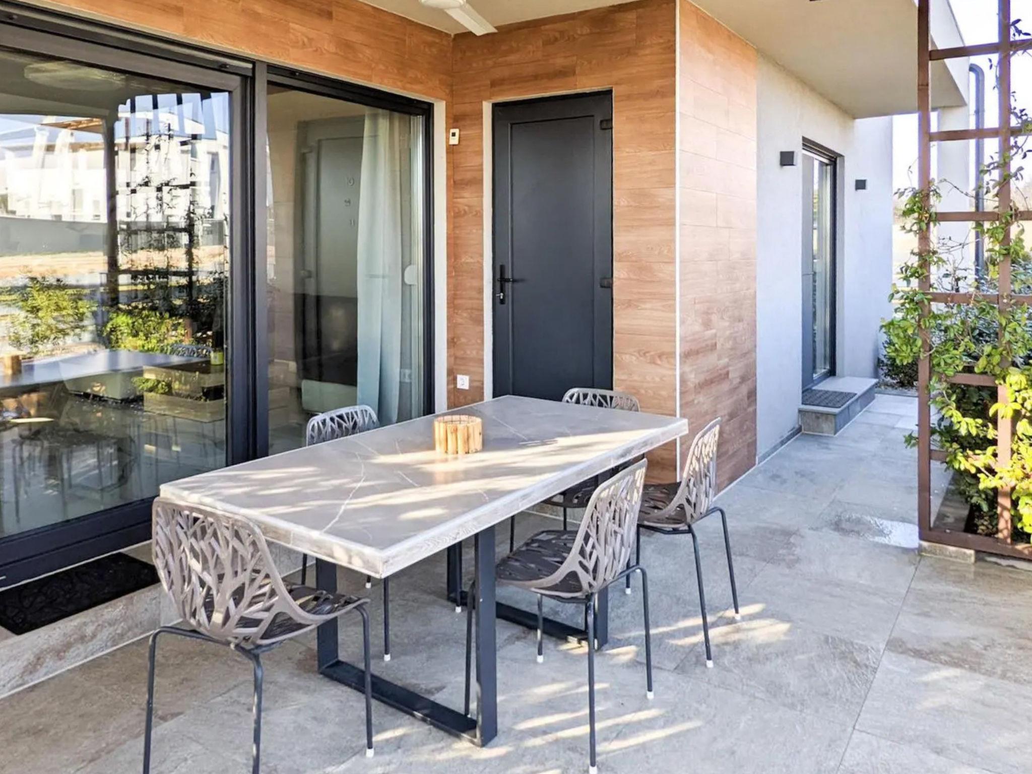3-room house 100 m2. Beautiful and stylish furnishings: living/dining room with 1 sofabed (150 cm, length 200 cm), satellite TV (flat screen). Exit to the terrace. 1 room with 1 french bed (150 cm, length 200 cm). 1 room with 1 french bed (160 cm, length 200 cm). Exit to the terrace. Open kitchen (oven, dishwasher, 5 gas rings, toaster, kettle, freezer, electric coffee machine). Shower/bidet/WC. Underfloor heating. Deck chairs. Facilities: Internet (WiFi, free). Please note: non-smoking house. Maximum 3 pets/ dogs allowed. Fire extinguisher.