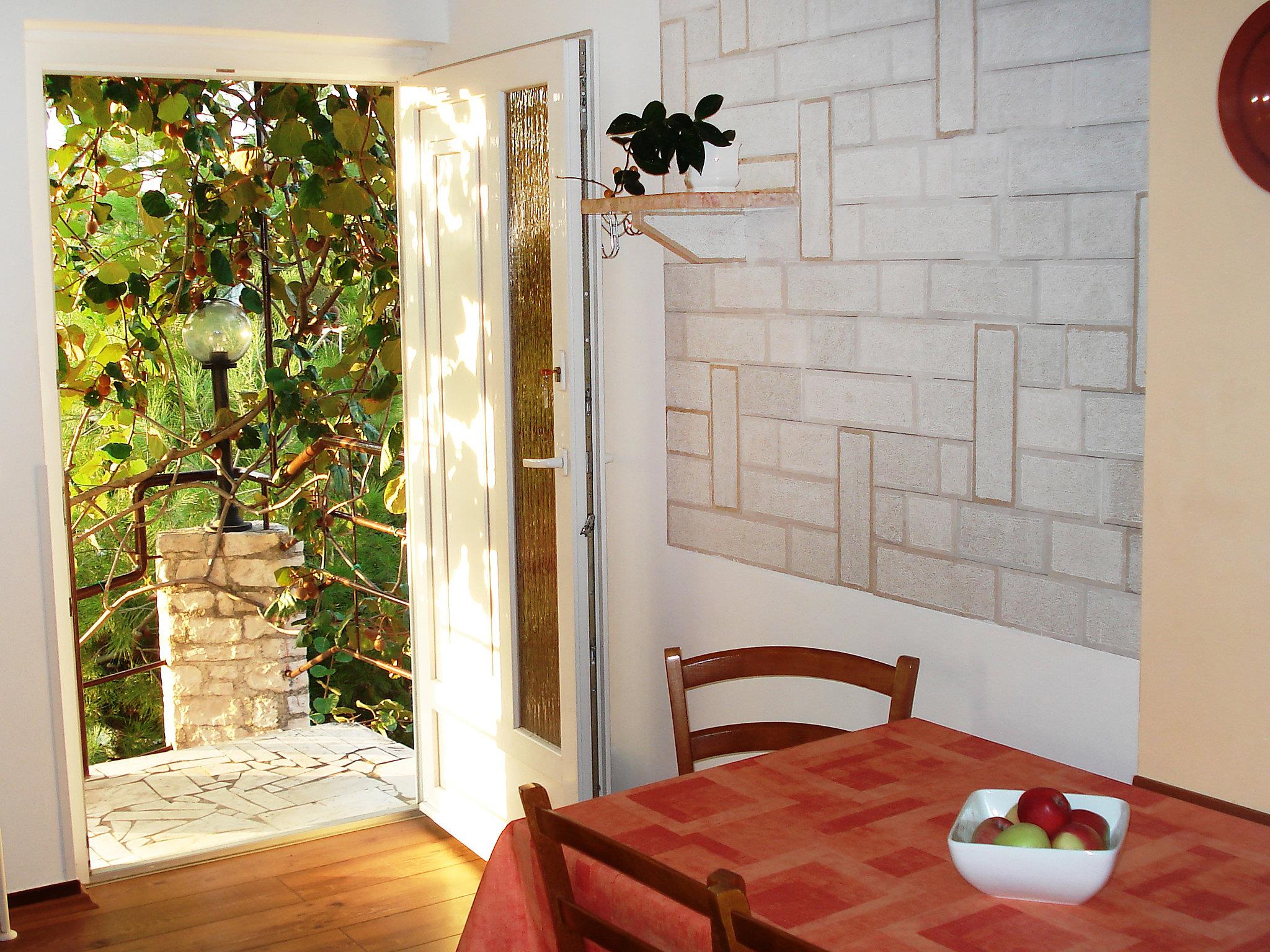 2-family house "Novi". In a sunny position, 2.5 km from the sea, 2.5 km from the beach. For shared use: property 500 m2 (fenced) with plants and flowers. Pergola, barbecue. In the house: internet access. Motor access to the house. Parking at 50 m. Shop, restaurant 200 m, bus stop 5.1 km, pebble beach 2.5 km, rocky beach 2.5 km, diving center 2.5 km, indoor swimming pool 5 km. Tennis 5 km, riding stable 6 km, sports centre 5 km, walking paths from the house 3 km, cycle lane 3 km.