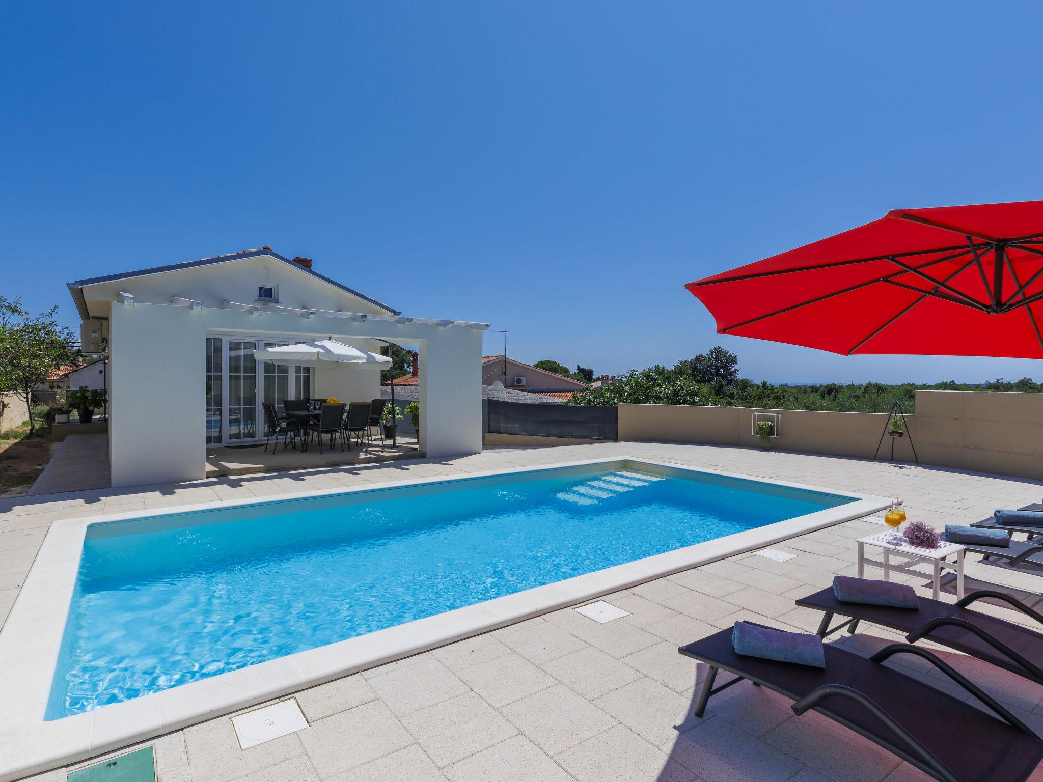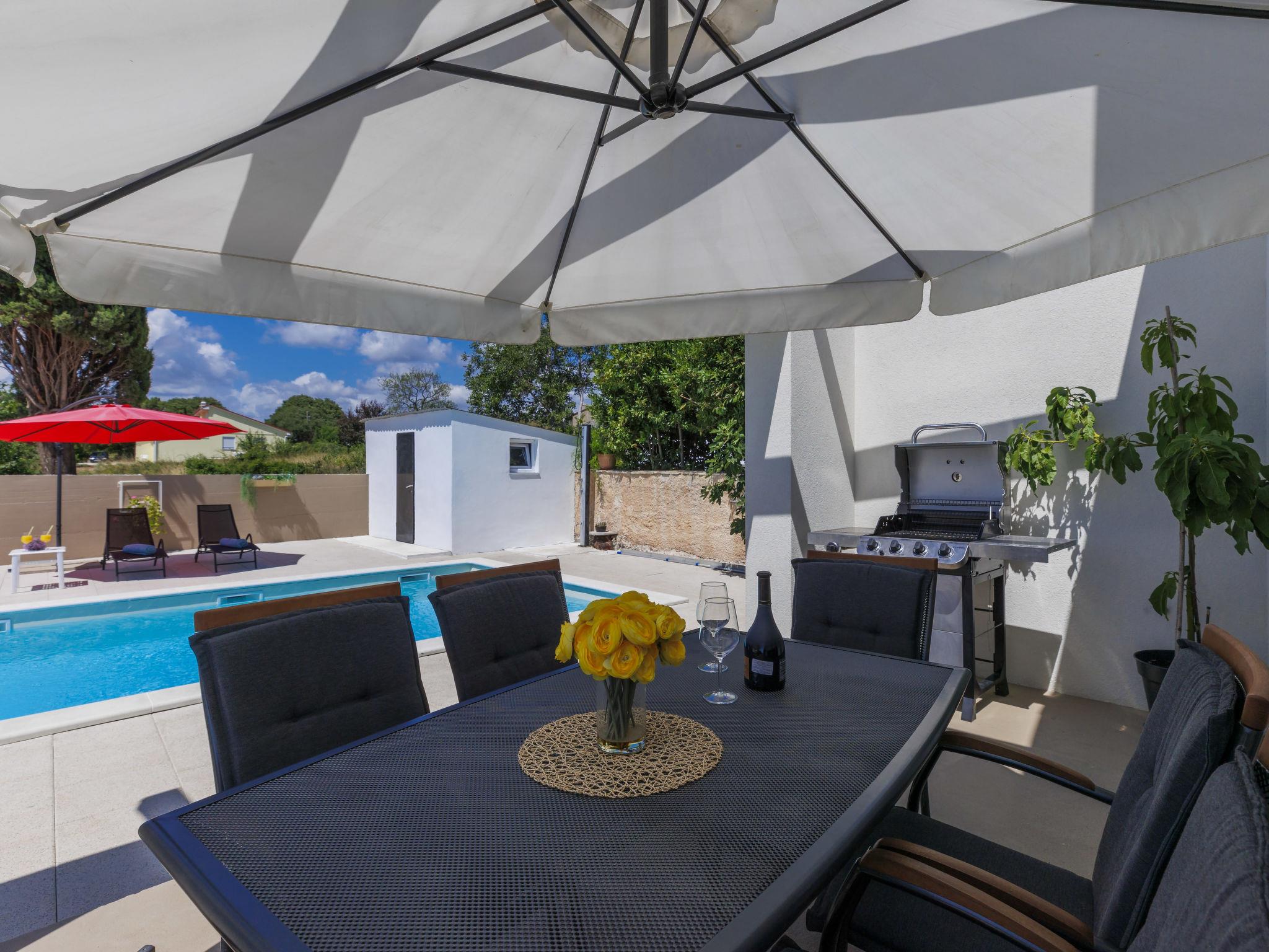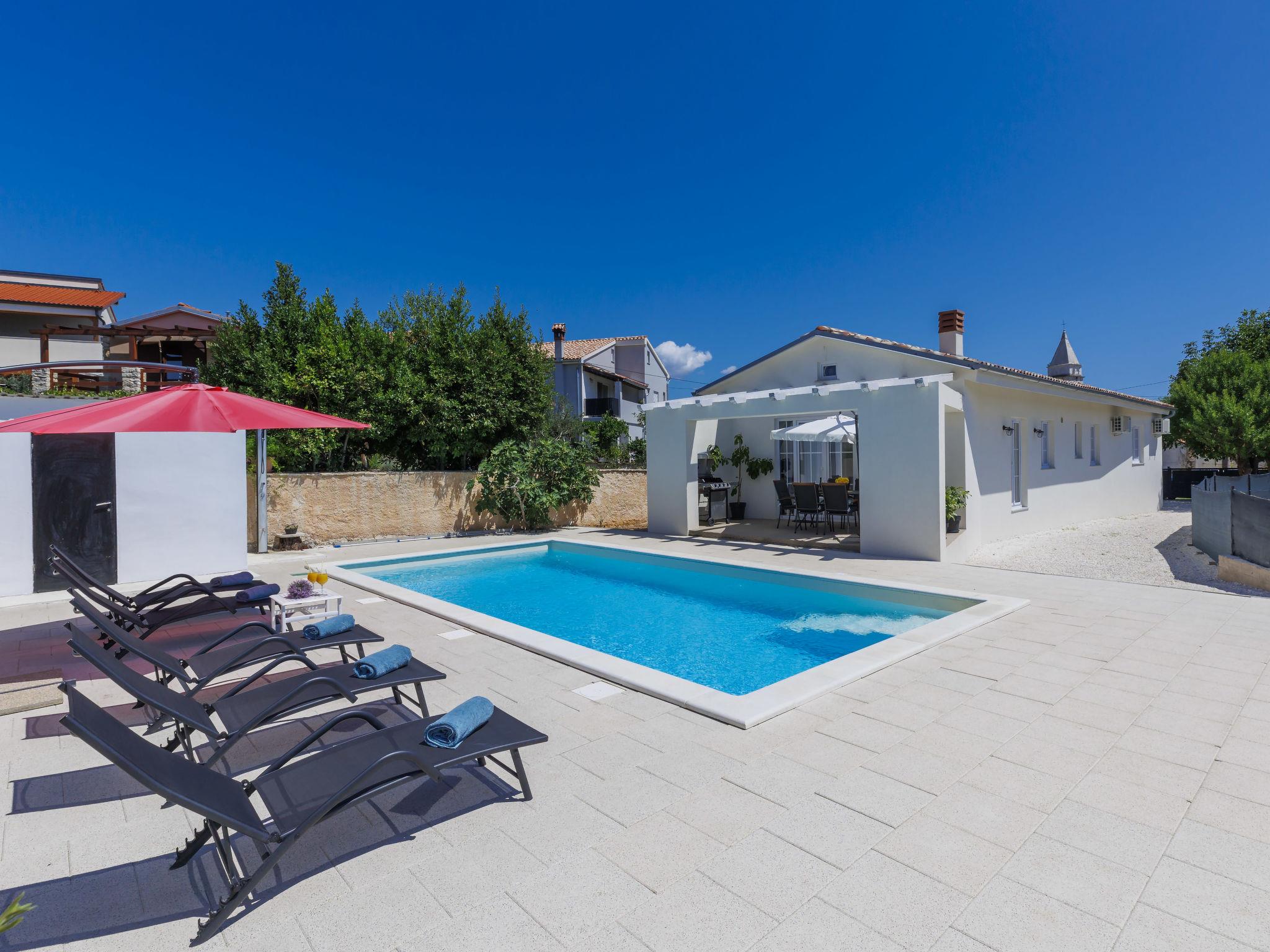 Cosy single-family house "Noce". 300 m from the centre, 22 km from the centre of Pula, in a quiet, sunny position, 3 km from the sea, 3 km from the beach. Private: property 500 m2, garden with lawn and wildlife garden, swimming pool angular (8 x 4 m, depth 140 cm, seasonal availability: 15.Apr. - 15.Oct.) with internal staircase. Outdoor shower, barbecue, pool maintenance by the owner/gardener. In the house: internet access, WiFi, washing machine. Parking (for 2 cars) at the house on the premises. Shop, restaurant, bar 300 m, bus stop 5.1 km, pebble beach 7 km, rocky beach 3 km. Riding stable 6 km, walking paths from the house, cycle lane 100 m. Groups of teenagers on request only.