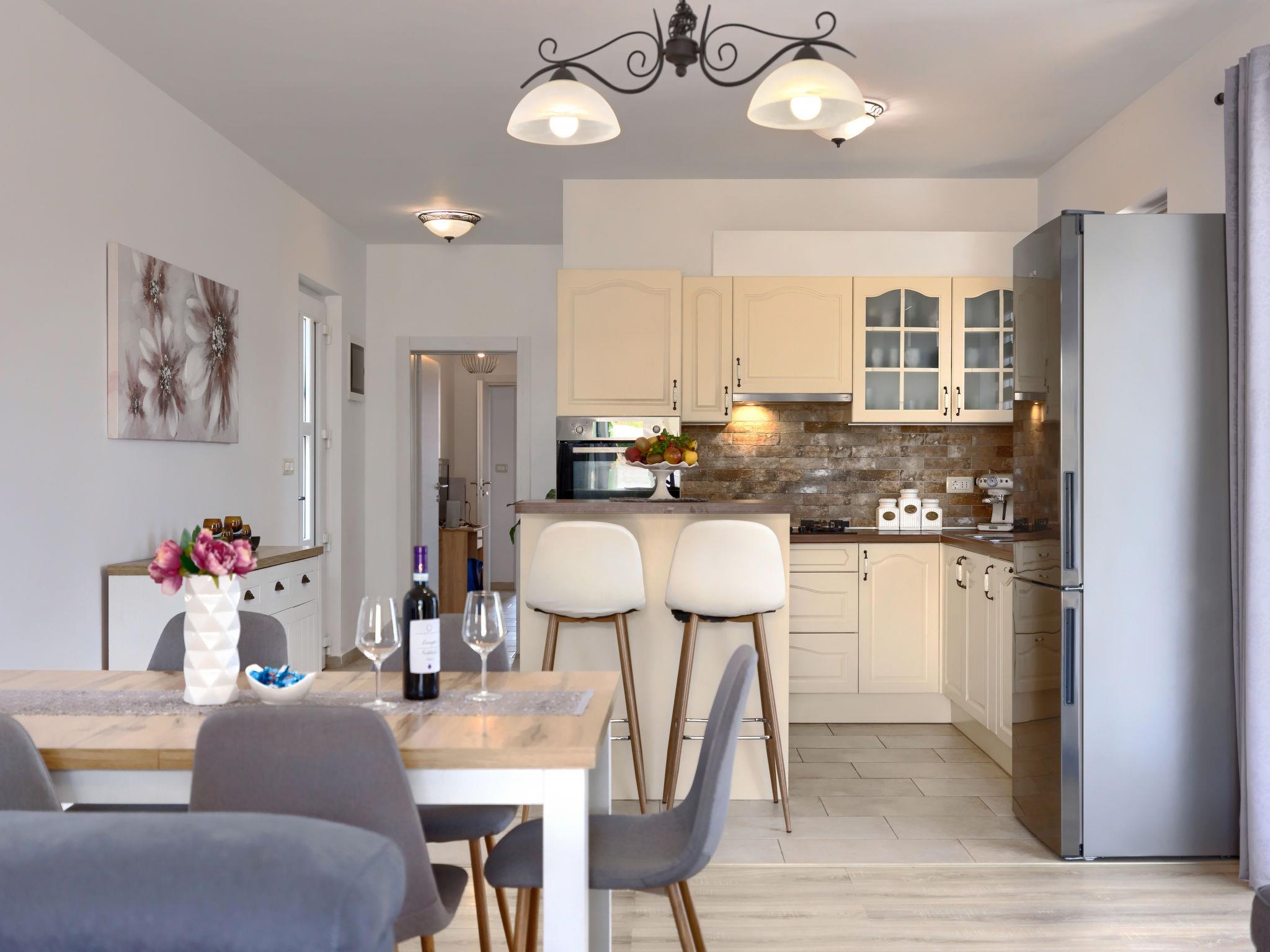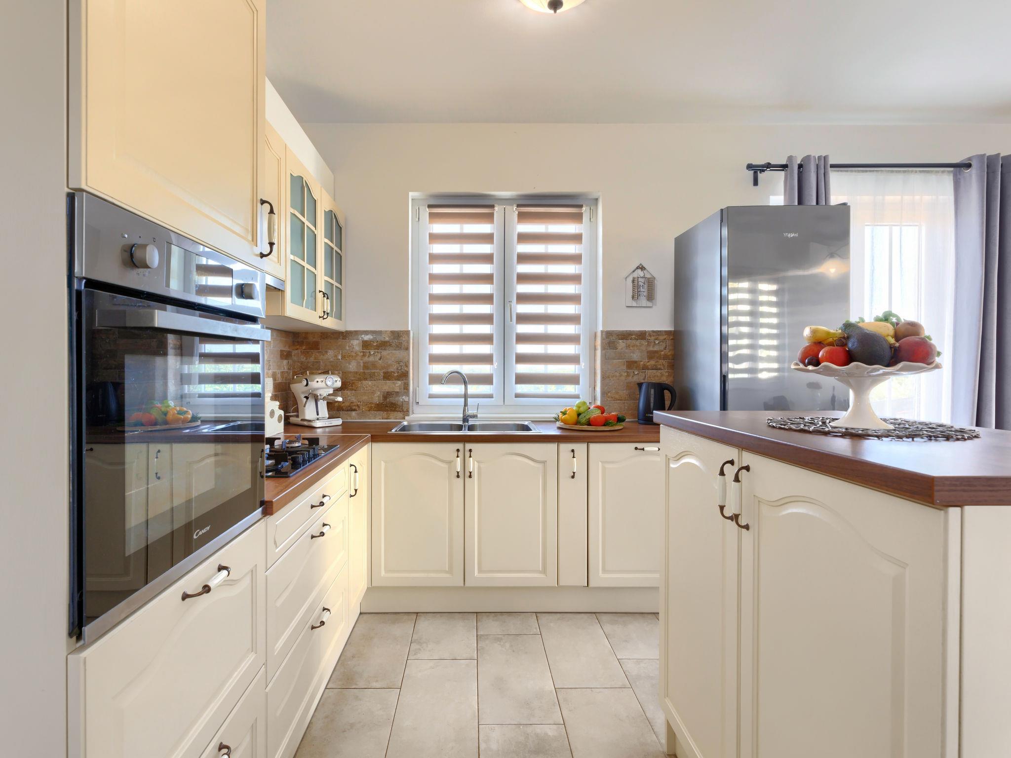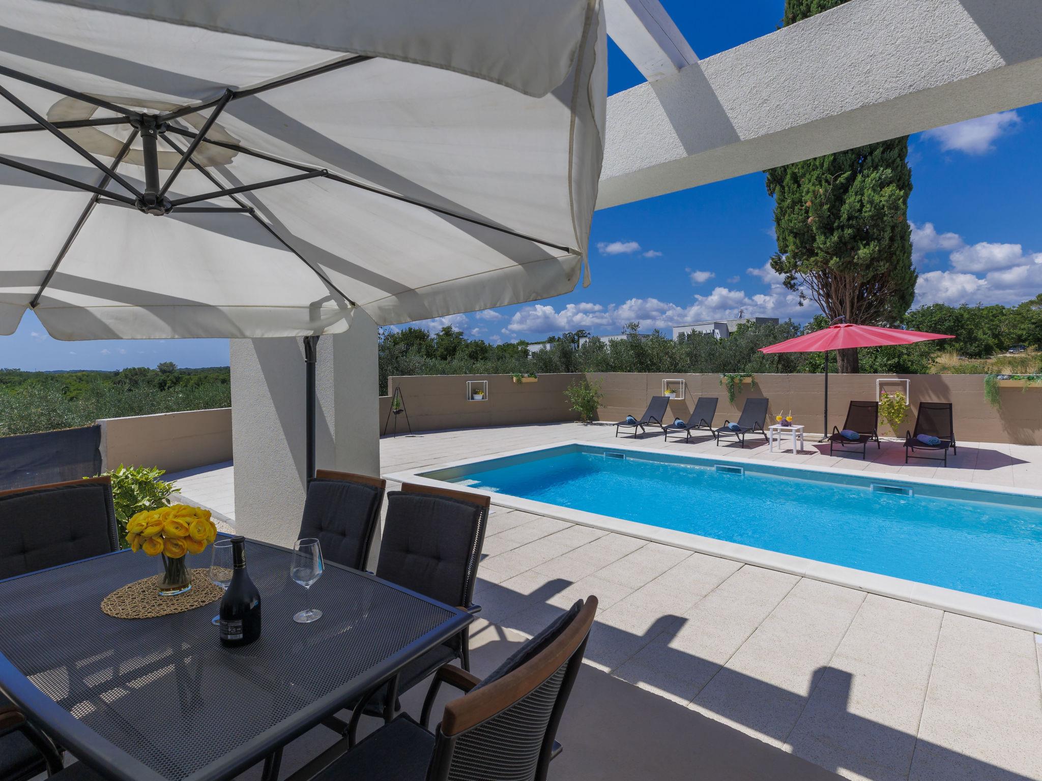 Cosy single-family house "Noce". 300 m from the centre, 22 km from the centre of Pula, in a quiet, sunny position, 3 km from the sea, 3 km from the beach. Private: property 500 m2, garden with lawn and wildlife garden, swimming pool angular (8 x 4 m, depth 140 cm, seasonal availability: 15.Apr. - 15.Oct.) with internal staircase. Outdoor shower, barbecue, pool maintenance by the owner/gardener. In the house: internet access, WiFi, washing machine. Parking (for 2 cars) at the house on the premises. Shop, restaurant, bar 300 m, bus stop 5.1 km, pebble beach 7 km, rocky beach 3 km. Riding stable 6 km, walking paths from the house, cycle lane 100 m. Groups of teenagers on request only.