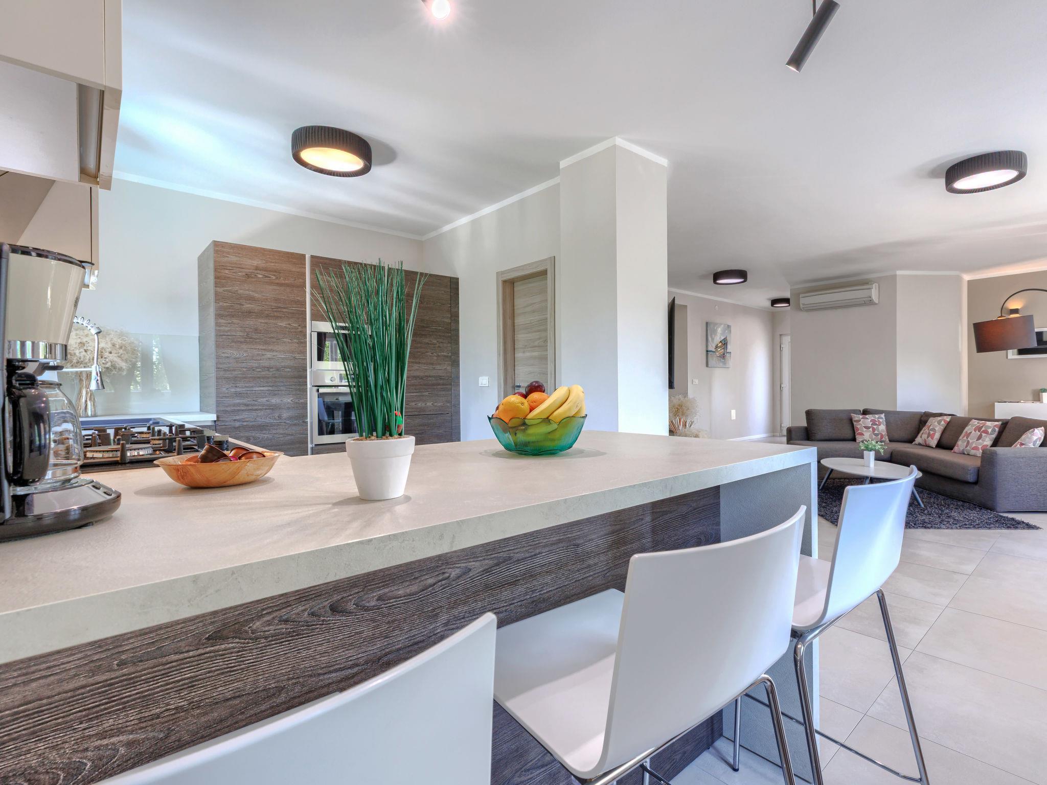Krnica 22 km from Pula: 2-family house "Ana". In the hamlet Beloci 7 km from the centre of Krnica, 7 km from the centre of Barban, 26 km from the centre of Rabac, in a quiet, sunny position, 4 km from the sea, 4 km from the beach. For shared use: property 800 m2 (fenced), garden with lawn and plants. Private: swimming pool angular, heated (7 x 4 m, depth 140 cm, seasonal availability: 01.Apr. - 01.Nov.) with internal staircase and salt-electrolysis pool-cleaning system. Outdoor shower, terrace (20 m2), garden furniture, barbecue (slide, swing), pool maintenance by the owner/gardener. In the house: internet access, trampoline, storage room for bicycles. Available: bicycles (4). Parking at the house on the premises. E-charging station. Shop 2 km, supermarket 7 km, restaurant 3 km, bus stop 1.4 km, pebble beach 4 km, rocky beach 4 km, public bathing area 16 km. Riding stable 500 m, walking paths from the house 50 m, cycle lane 100 m. Nearby attractions: Amusement park 6 km. Please note: airfield 20 km from the property. For shared use: trampoline, bicycles (4), storage room for bicycles. The owner can arrange excursions (on request, extra). Swimming pool heated (extra). It is necessary to announce 7 days in advance if the pool heating is required.