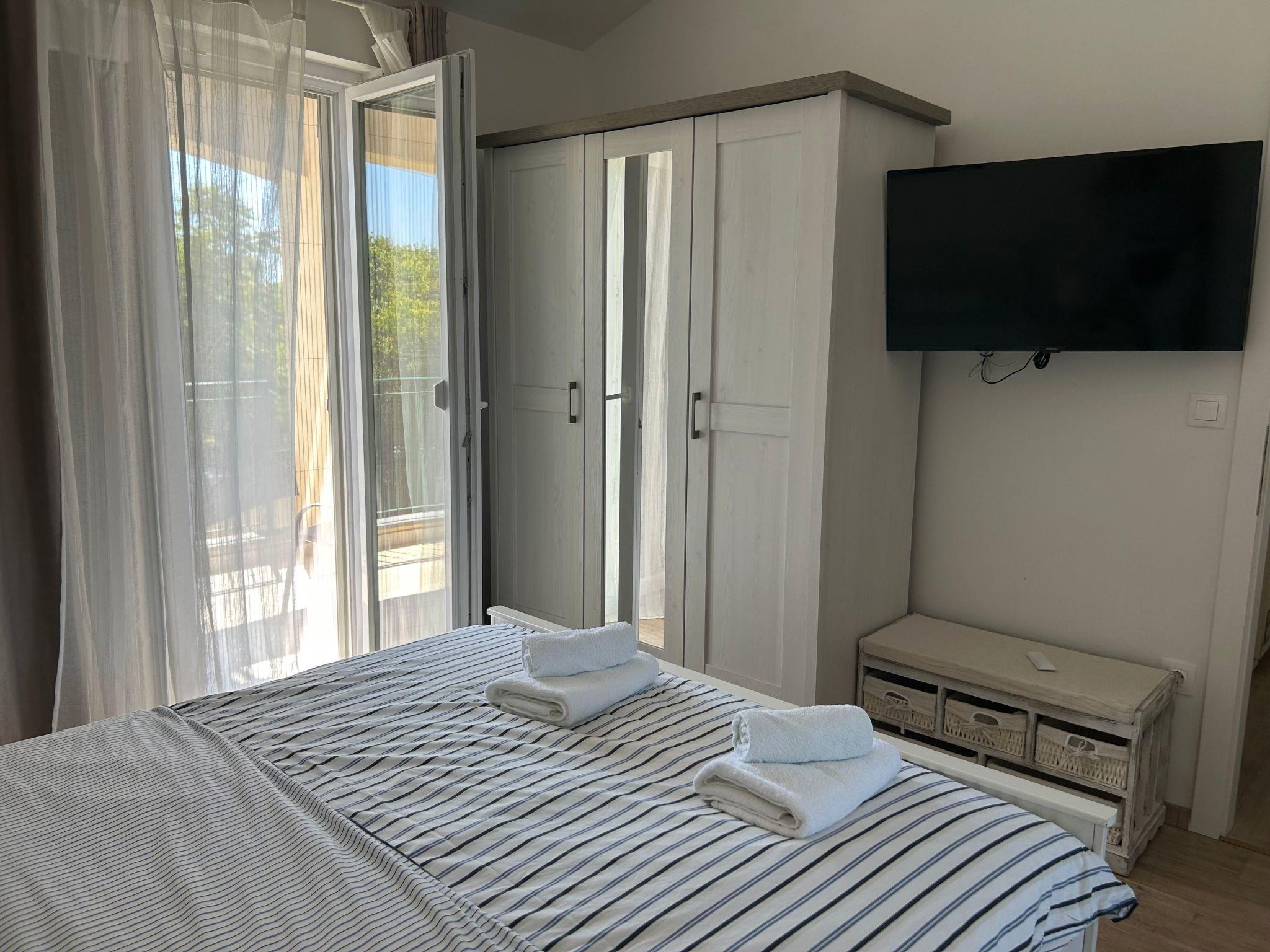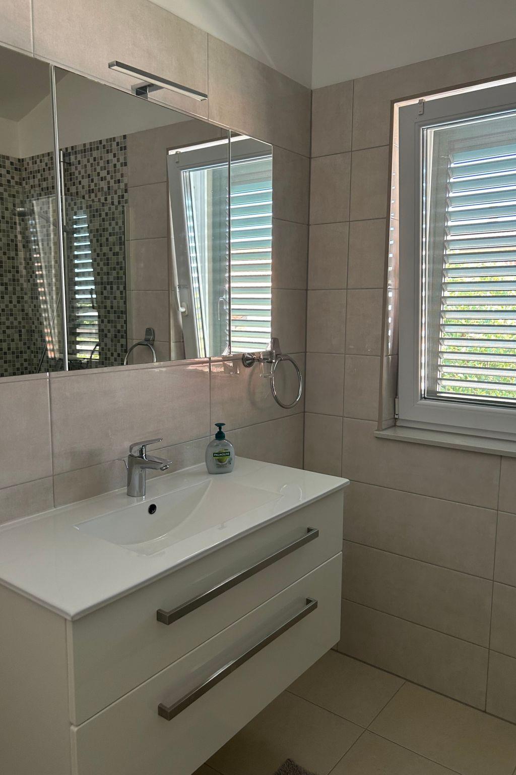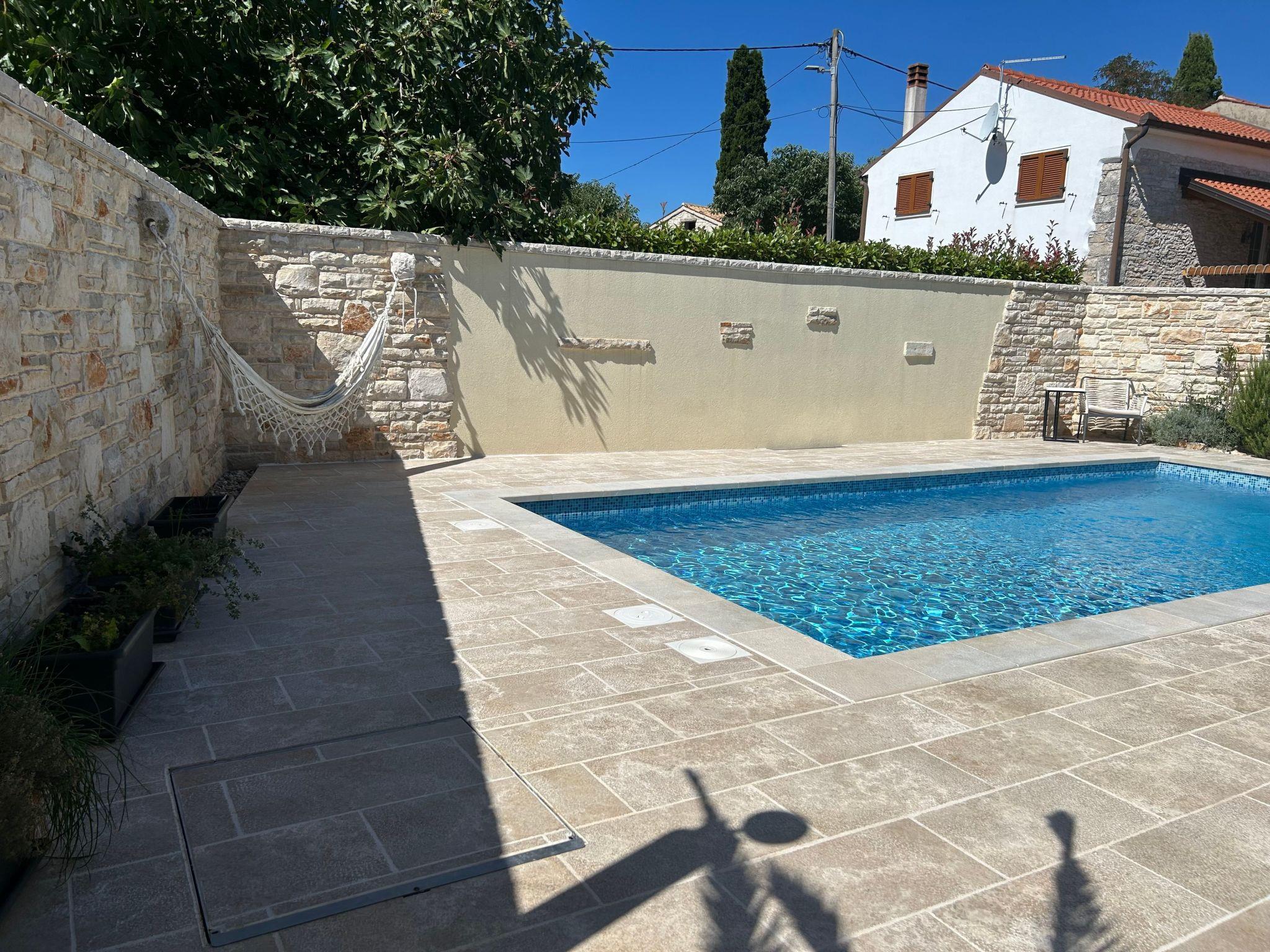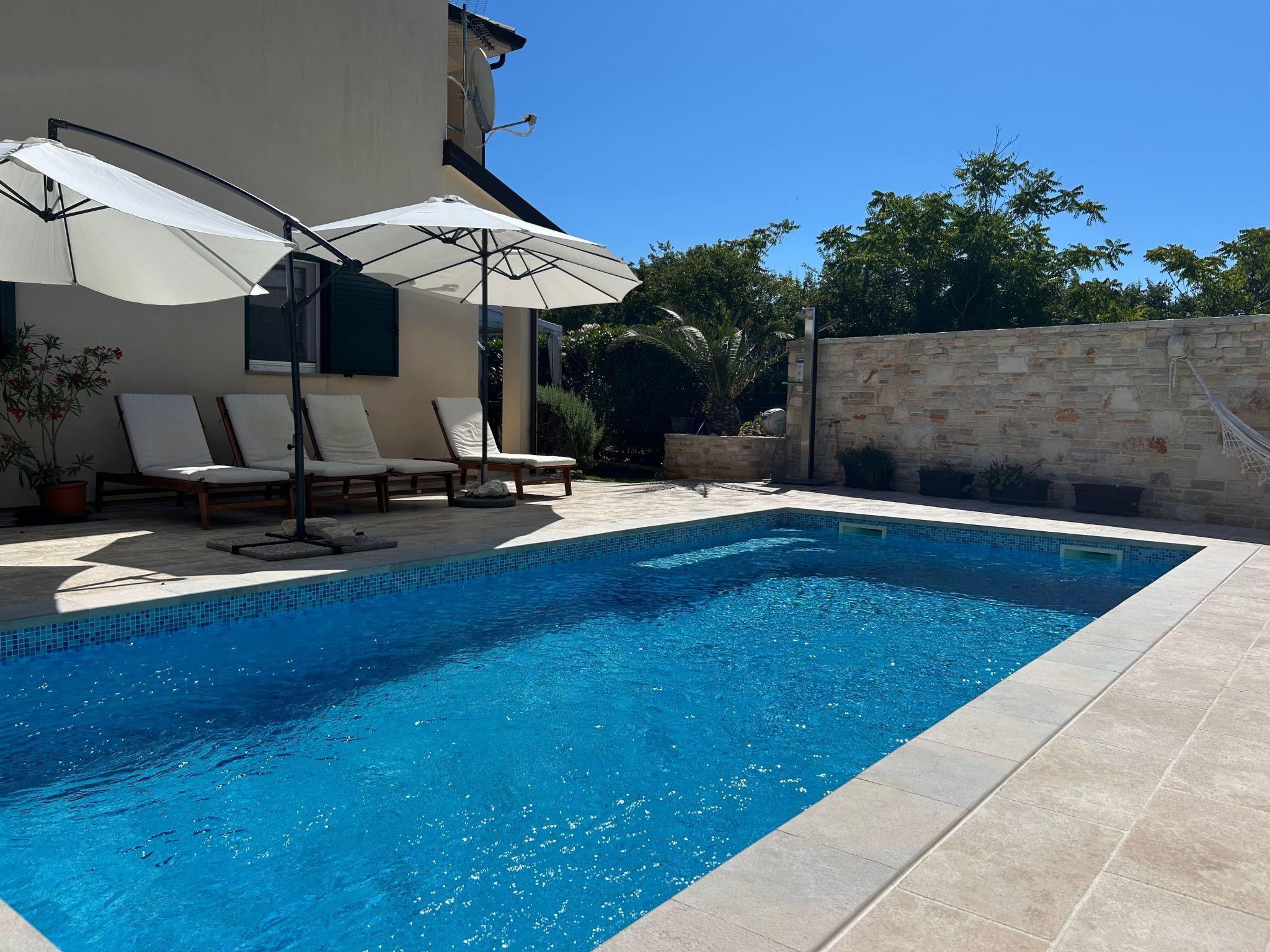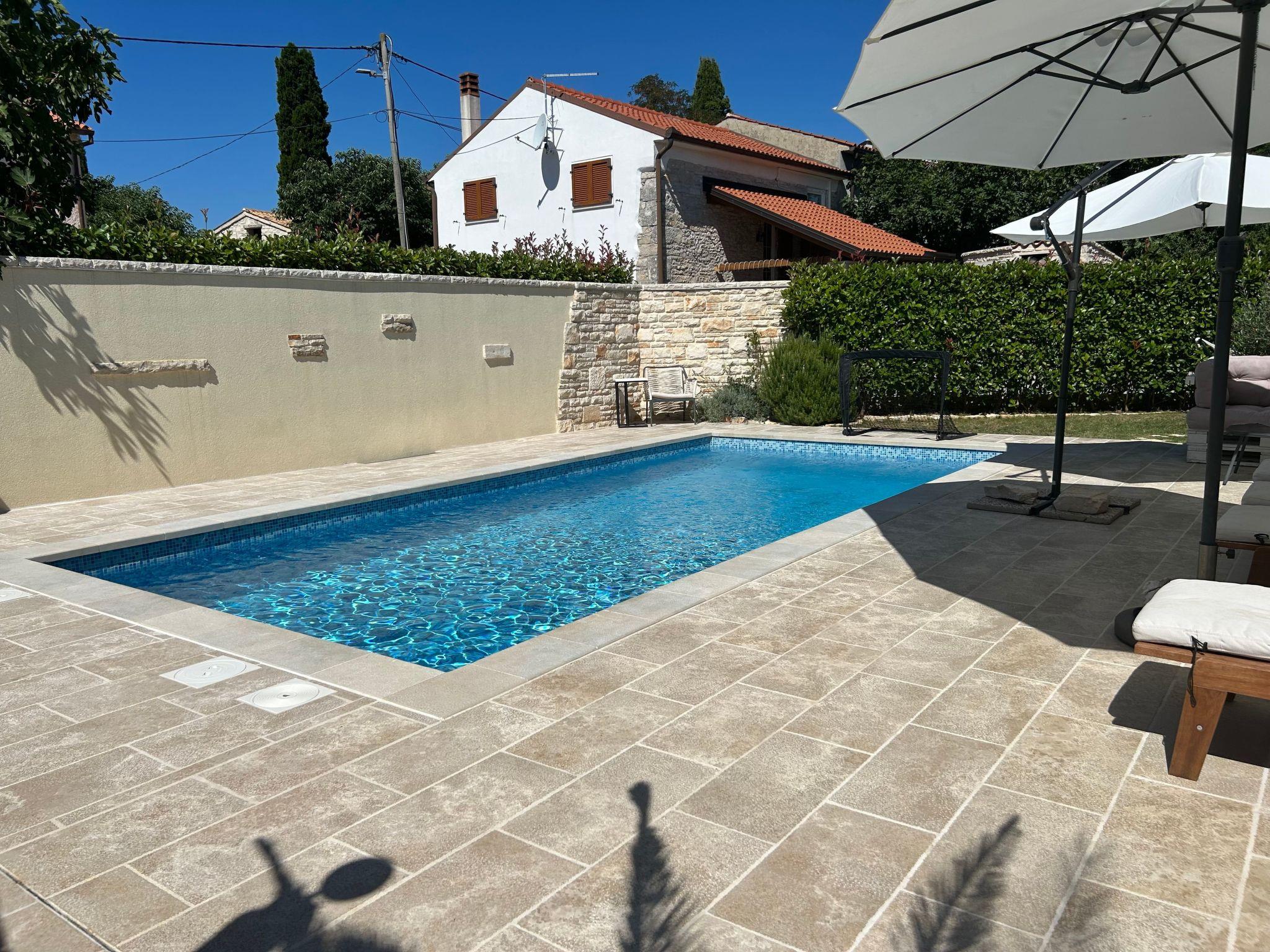 Ihre Ferienunterkunft befindet sich in Krnica einem kleinen, beschaulichen aber sehr schönen Ort ca 20 km von Pula und dem Flughafen entfernt und bietet 1 Geschäft zum Einkaufen, 1 kleiner Bäcker, 3 Lokale, eine Post (um Geld zu wechseln) sowie ein Touristikbüro. Zum nächsten Strand und Meer sind es gerade einmal ca 3km (weitere Strände und kleine Buchten erreichen Sie innerhalb 10km). In diesem wunderschönen Haus können Sie abseits vom Massentourismus und Rummel entspannen da sich das Haus in einer ruhigen Sackgasse befindet. Aber dennoch ermöglicht Ihnen die Lage des Hauses, dass Sie in 5 - 10 Minuten Fußweg zu 3 Restaurants (viele weitere Lokale finden Sie im Umkreis von 10 km), zum Geschäft für den täglichen Bedarf und den Bäcker gelangen. Die wichtigsten und schönsten Sehenswürdigkeiten Istriens erreichen Sie mit dem Auto innerhalb von ca 30 Minuten. In ca 300 m erreichen Sie einen Aussichtspunkt, von dem man einen atemberaubenden Blick auf das Meer und die Insel Cres hat.NEU 2021 ALLE Fenster m. Moskitoschutz!!! Neues Ferienhaus ELMASO****m. priv. Pool, 3 Schlafz. alle m. Klima, 2 Bäder, Küche, Wohn-Essz. m. Klima, WC, TV, Waschmaschine usw.