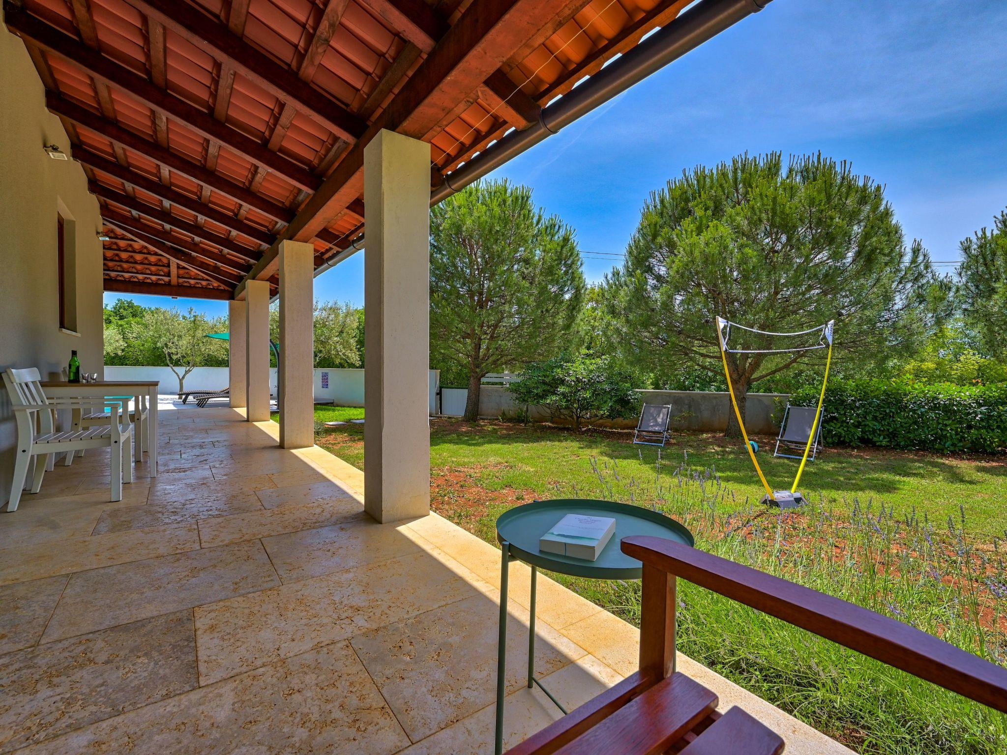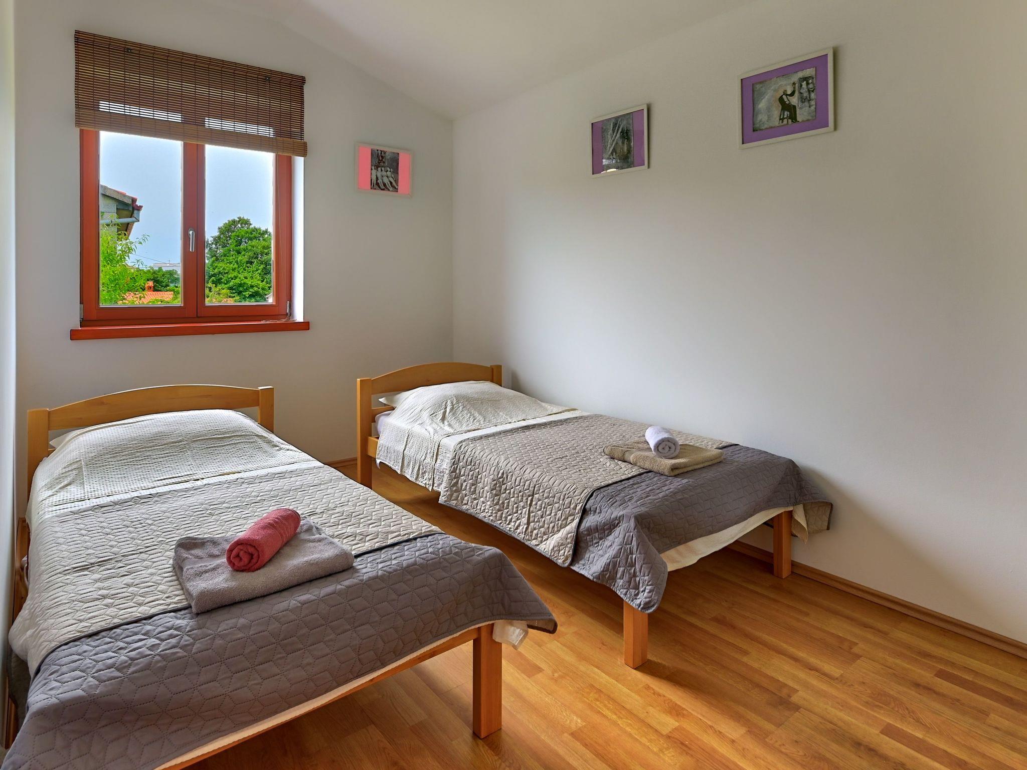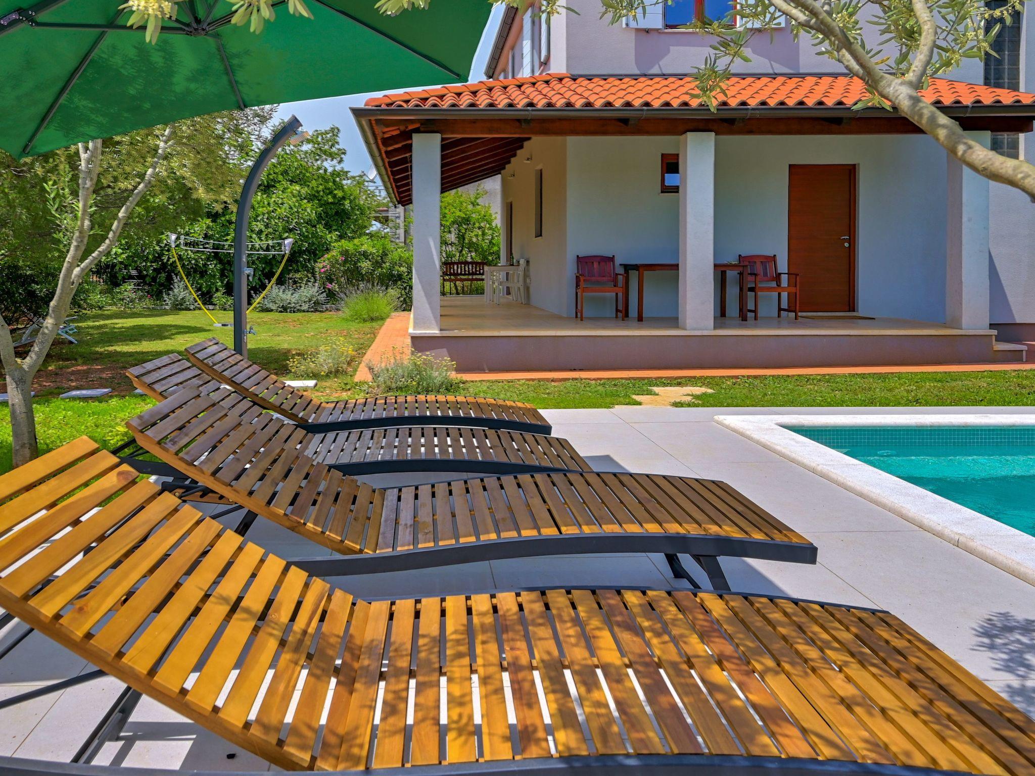 New holiday home for up to 6 people, 120 m² on 2 floors with a large private pool 8 x 4 m and a completely fenced-in property, outdoor shower, large covered terrace with garden furniture, parasol and sun loungers, barbecue, WiFi internet access, washing machine,dishwasher, air conditioning and private parking ( for 2 cars) on the property.The house is in a peaceful village, near a coast, with a view of the sea.The nearest beach and sea are just about 3km (other beaches and small bays can be reached within 10km) Krnica is located about 20 km from Pula and the airport and offers 1 grocery shop, 1 small bakery, 3 restaurants, a post and a tourist office. The nearest beach and sea are just about 3km (other beaches and small bays can be reached within 10km).. A playground is 100 m away, so if you like to play sports, you can play various sports like basketball, football, volleyball, and has a small playground for kids.