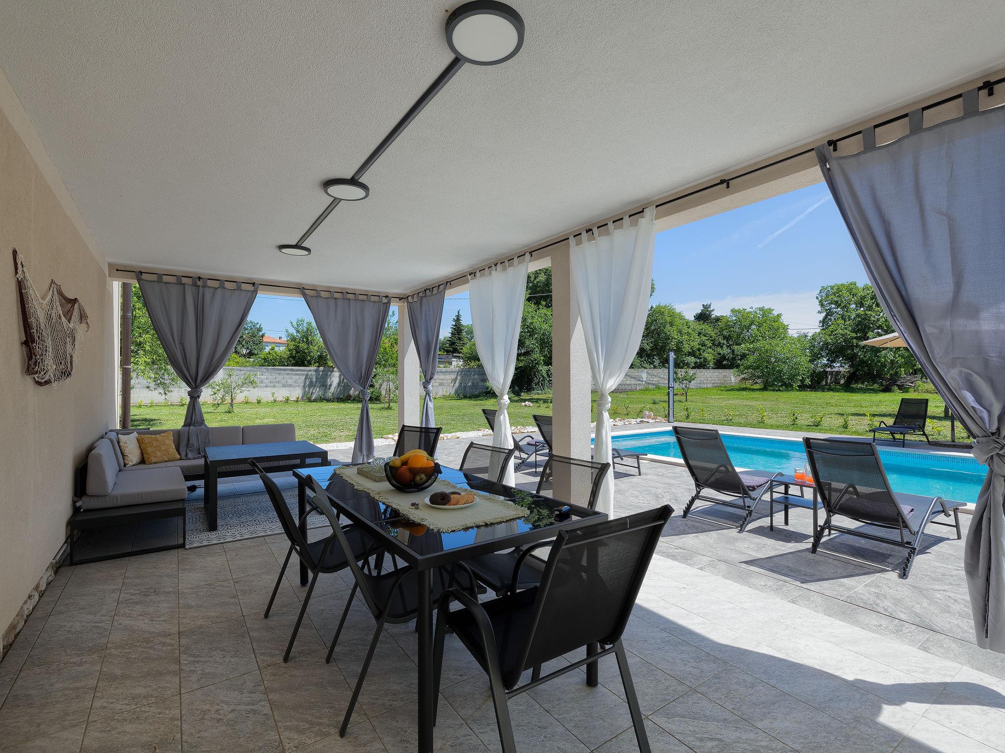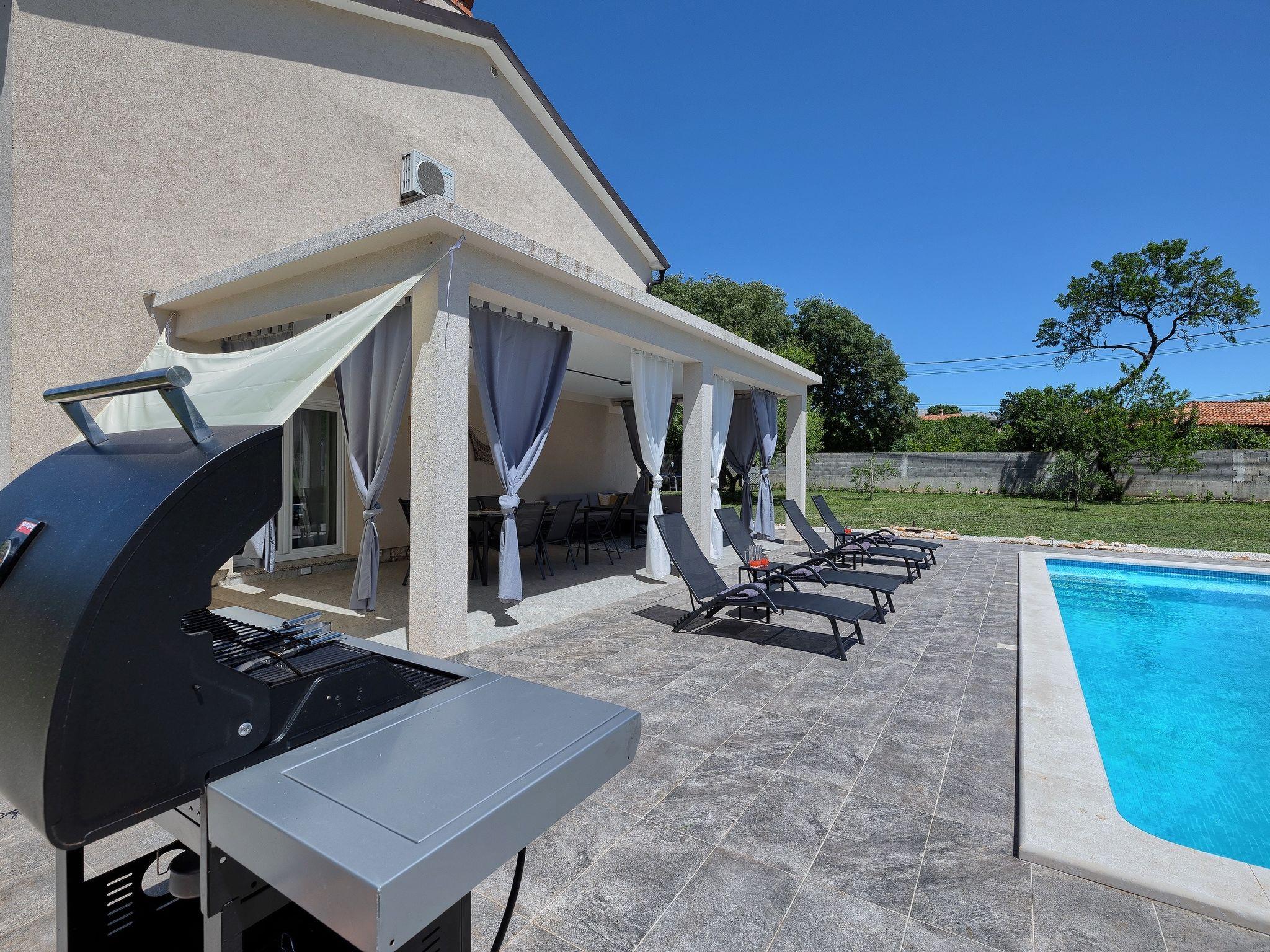Step outside and enjoy the beautiful outdoor facilities designed to enhance your stay. The garden is a haven for the little ones too, with a swing and trampoline for endless fun. Explore the picturesque surroundings of Hrboki with the bikes provided. Enjoy pleasant evenings in the covered outdoor dining area, equipped with a barbecue for al fresco dining. Cool off and relax in the private swimming pool, equipped with sun loungers for soaking up the sun. The entire outdoor area is securely fenced, ensuring your privacy and safety, and convenient private parking spaces are available for your vehicles.
