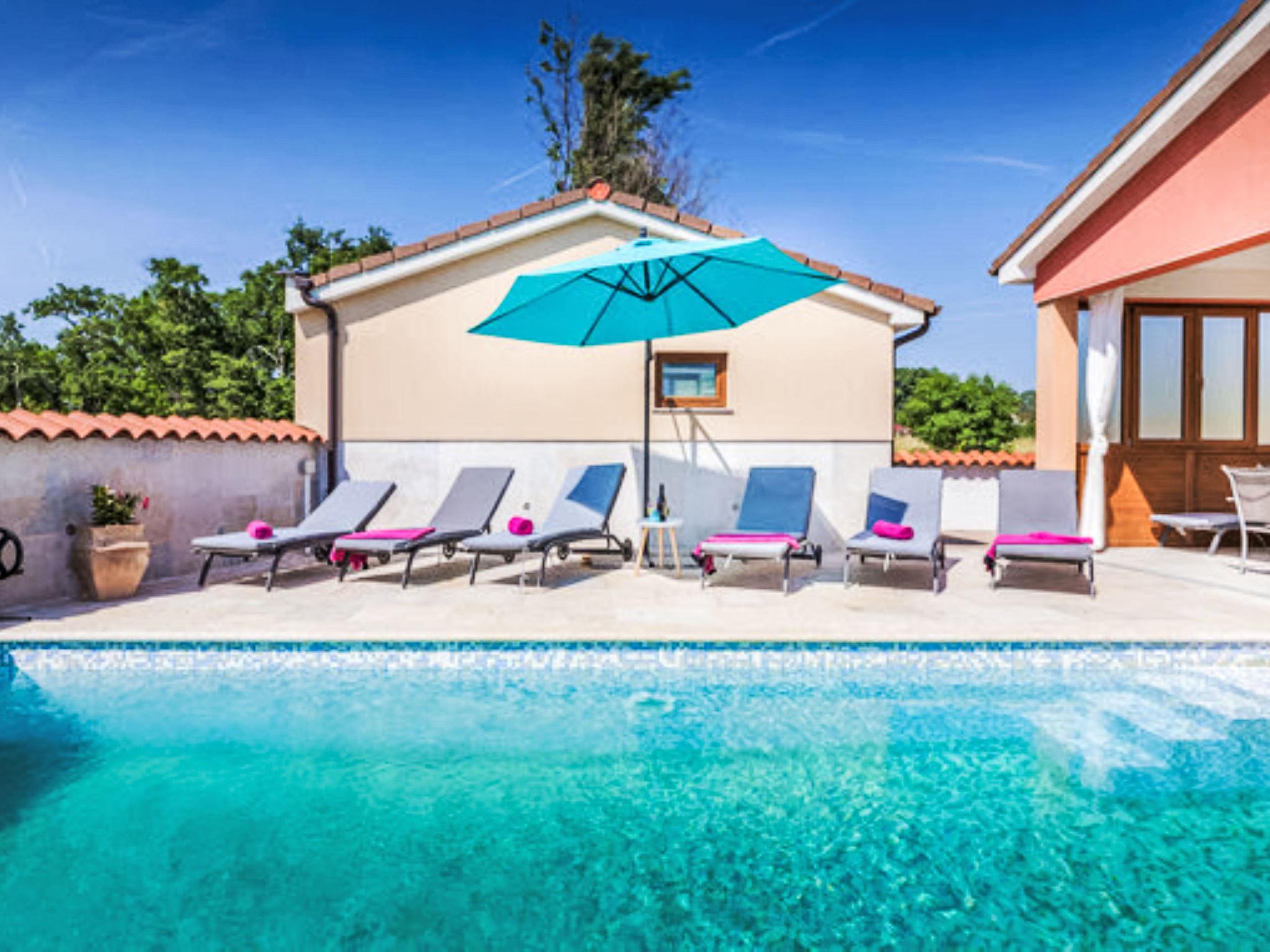 15 km from Pula: Cosy single-family house "Manera". In the hamlet Krvavici 3 km from the centre of Marcana, in a sunny position, 10 km from the sea. Private: property 400 m2 (fenced), small garden with lawn, swimming pool angular, heated (8 x 4 m, depth 140 cm, seasonal availability: 01.Mar. - 01.Dec.) with internal staircase. Outdoor shower, hot tub, terrace (20 m2), barbecue, pool maintenance by the owner/gardener. In the house: internet access. Parking (for 4 cars) at the house on the premises. Shop 3 km, restaurant 3 km, bus stop 3 km, pebble beach 10 km, rocky beach 10 km.