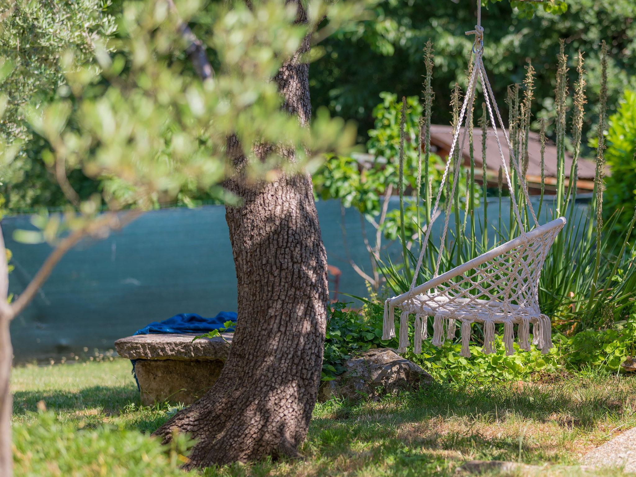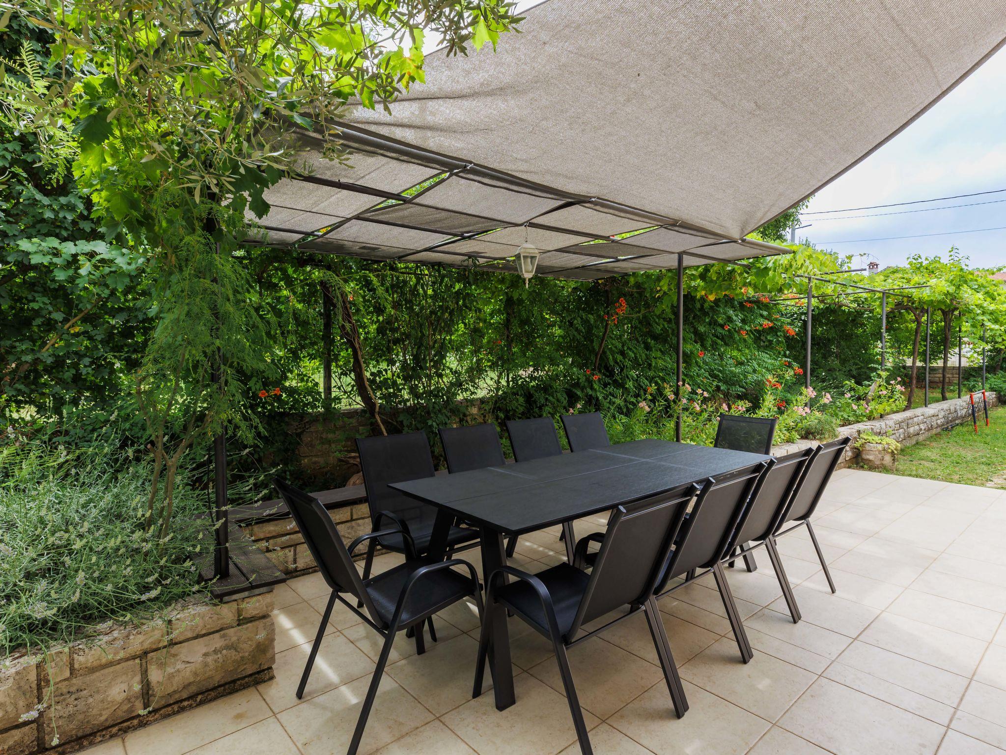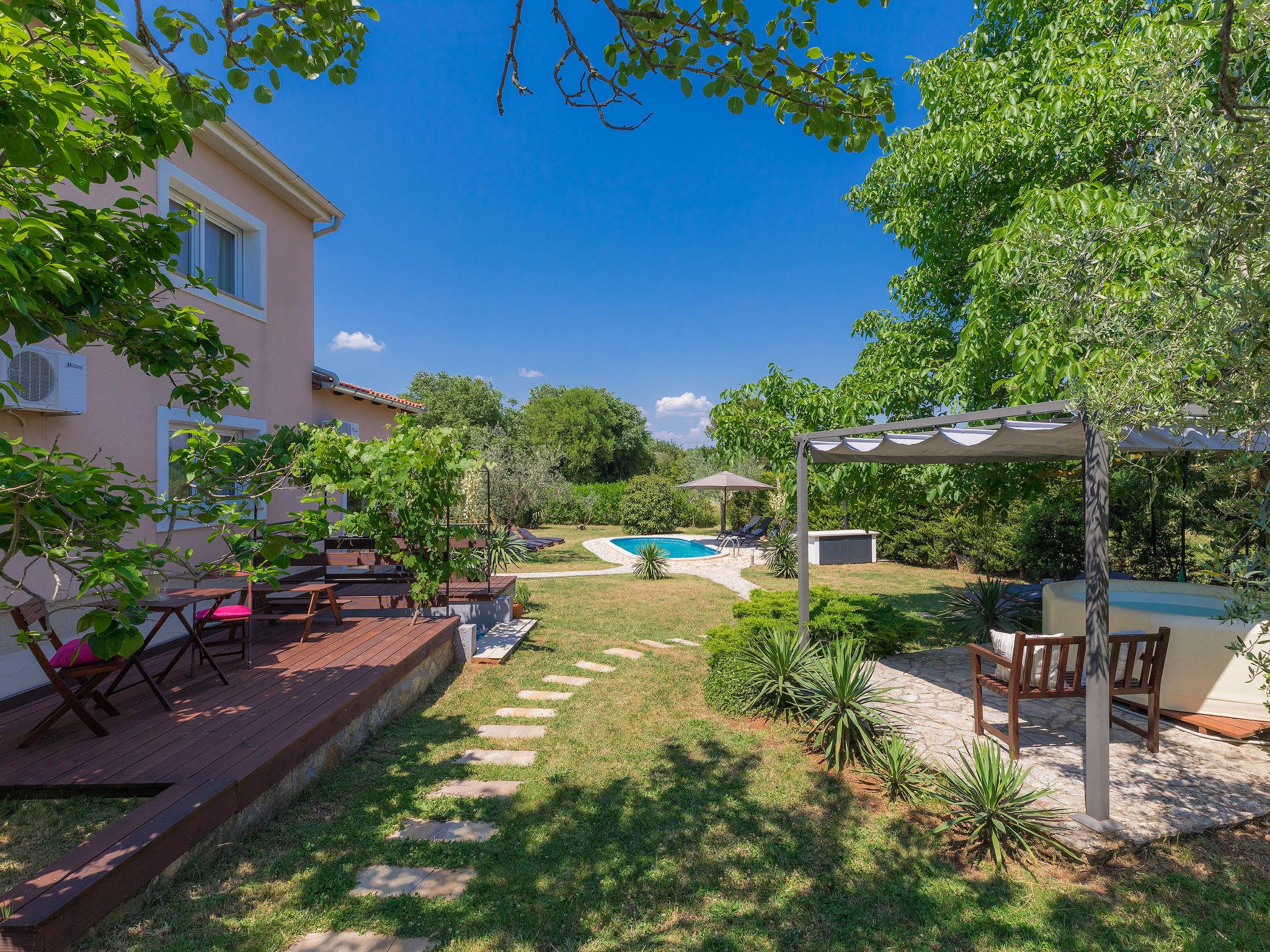 Marcana 11 km from Pula: 2-family house "Gea", 2 storeys. In the hamlet Veliki Vareški 5 km from the centre of Marcana, 18 km from the centre of Pula, 4.5 km from the sea, 4.5 km from the beach, in the countryside. Private: property 1'500 m2 (fenced) with lawn and wildlife garden, swimming pool (24 m2, depth 135 cm, seasonal availability: 29.Apr. - 21.Oct.). Outdoor shower, hot tub, volleyball, badminton, volleyball court, terrace, garden furniture, barbecue, children's playground (slide). In the house: internet access, sauna, washing machine. Parking at the house on the premises. Shop 3 km, restaurant 2.5 km, bus stop 5.1 km, pebble beach 4.5 km, rocky beach 4.5 km.