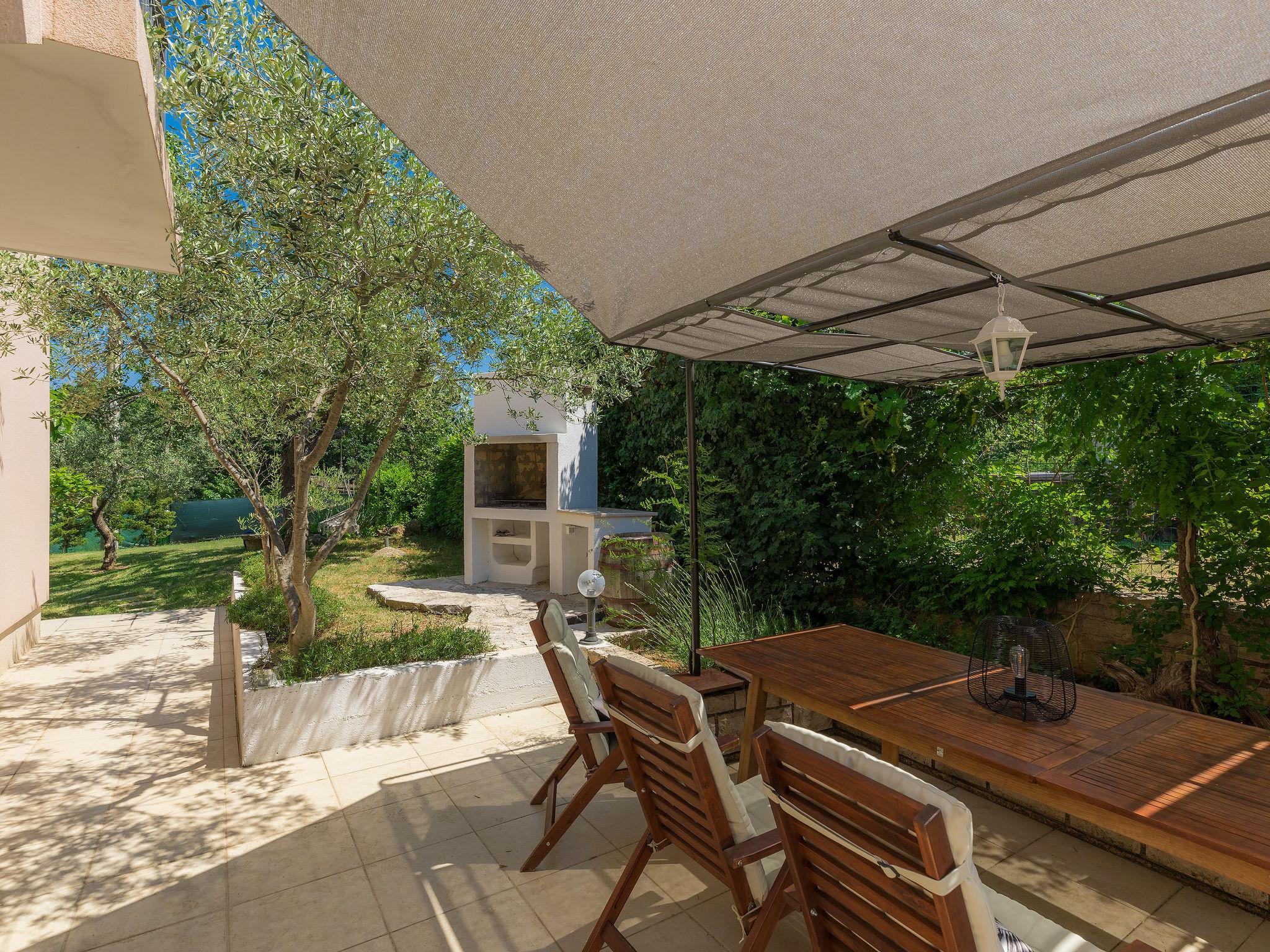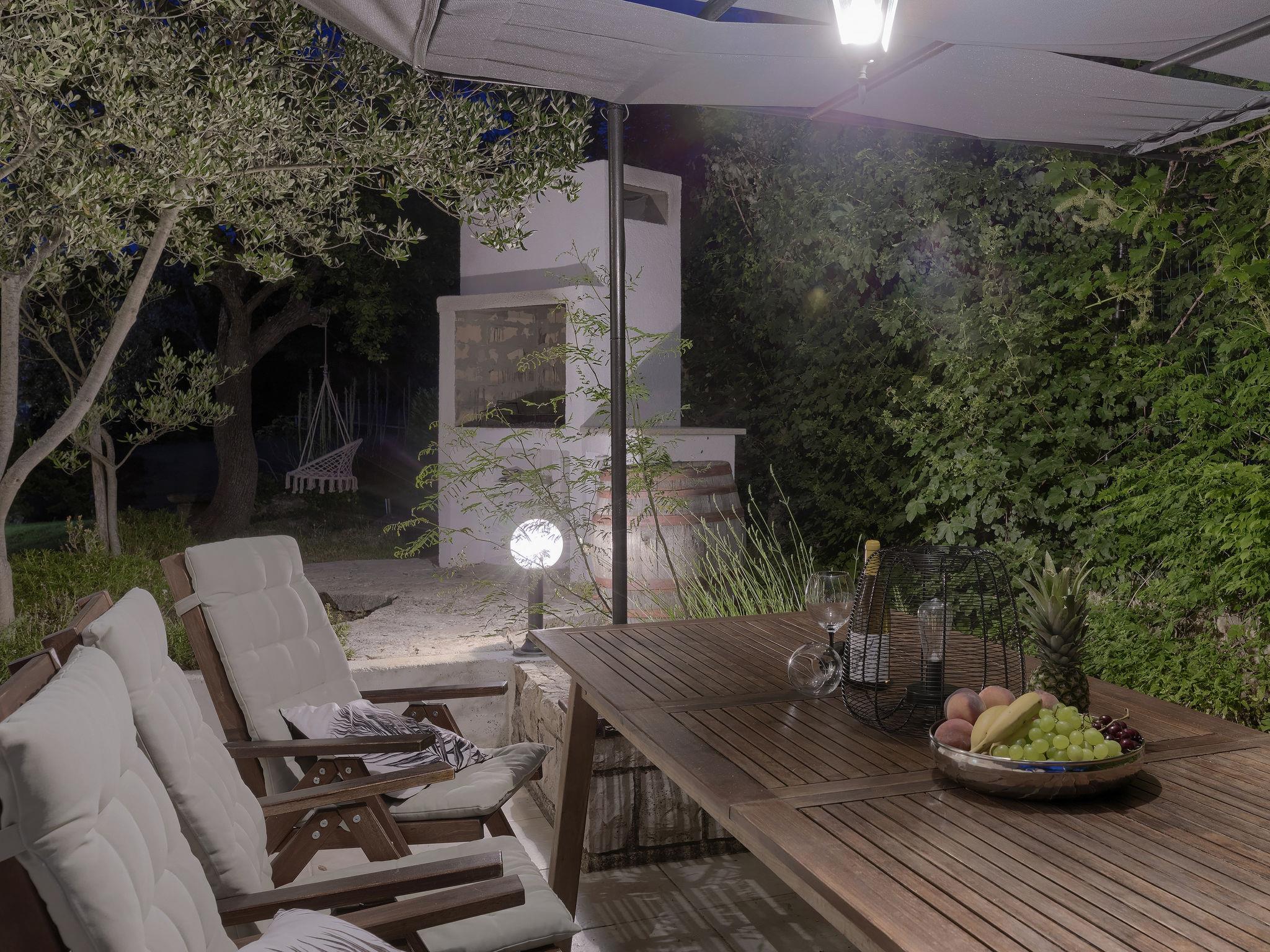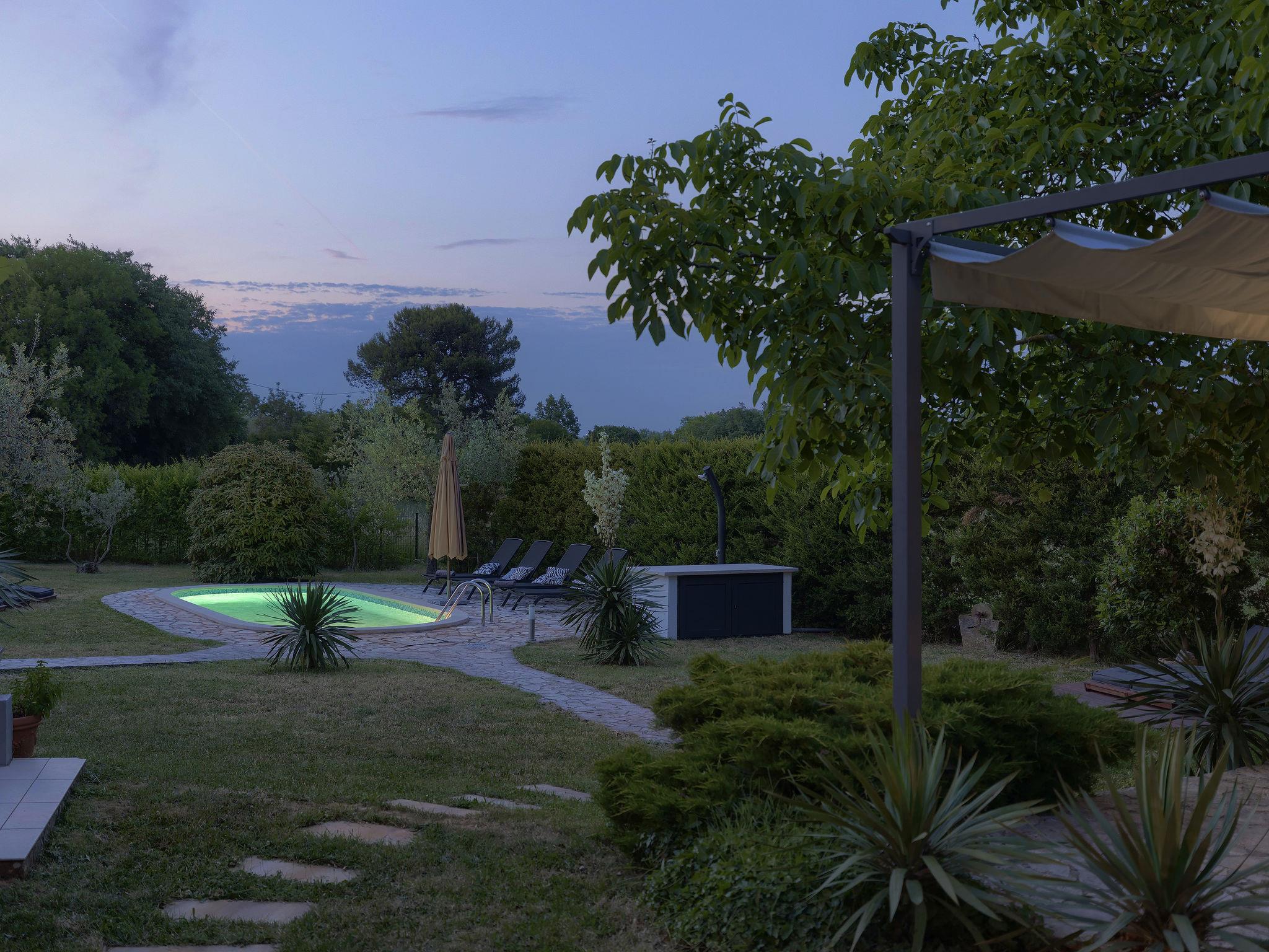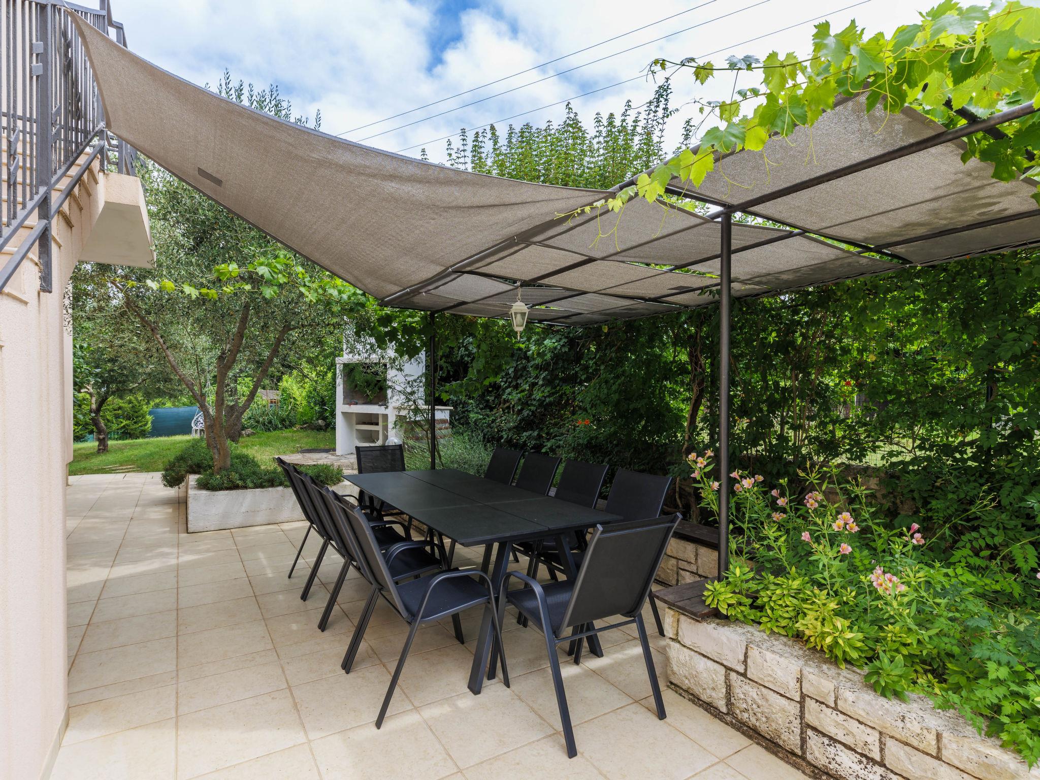 Marcana 11 km from Pula: 2-family house "Gea", 2 storeys. In the hamlet Veliki Vareški 5 km from the centre of Marcana, 18 km from the centre of Pula, 4.5 km from the sea, 4.5 km from the beach, in the countryside. Private: property 1'500 m2 (fenced) with lawn and wildlife garden, swimming pool (24 m2, depth 135 cm, seasonal availability: 29.Apr. - 21.Oct.). Outdoor shower, hot tub, volleyball, badminton, volleyball court, terrace, garden furniture, barbecue, children's playground (slide). In the house: internet access, sauna, washing machine. Parking at the house on the premises. Shop 3 km, restaurant 2.5 km, bus stop 5.1 km, pebble beach 4.5 km, rocky beach 4.5 km.