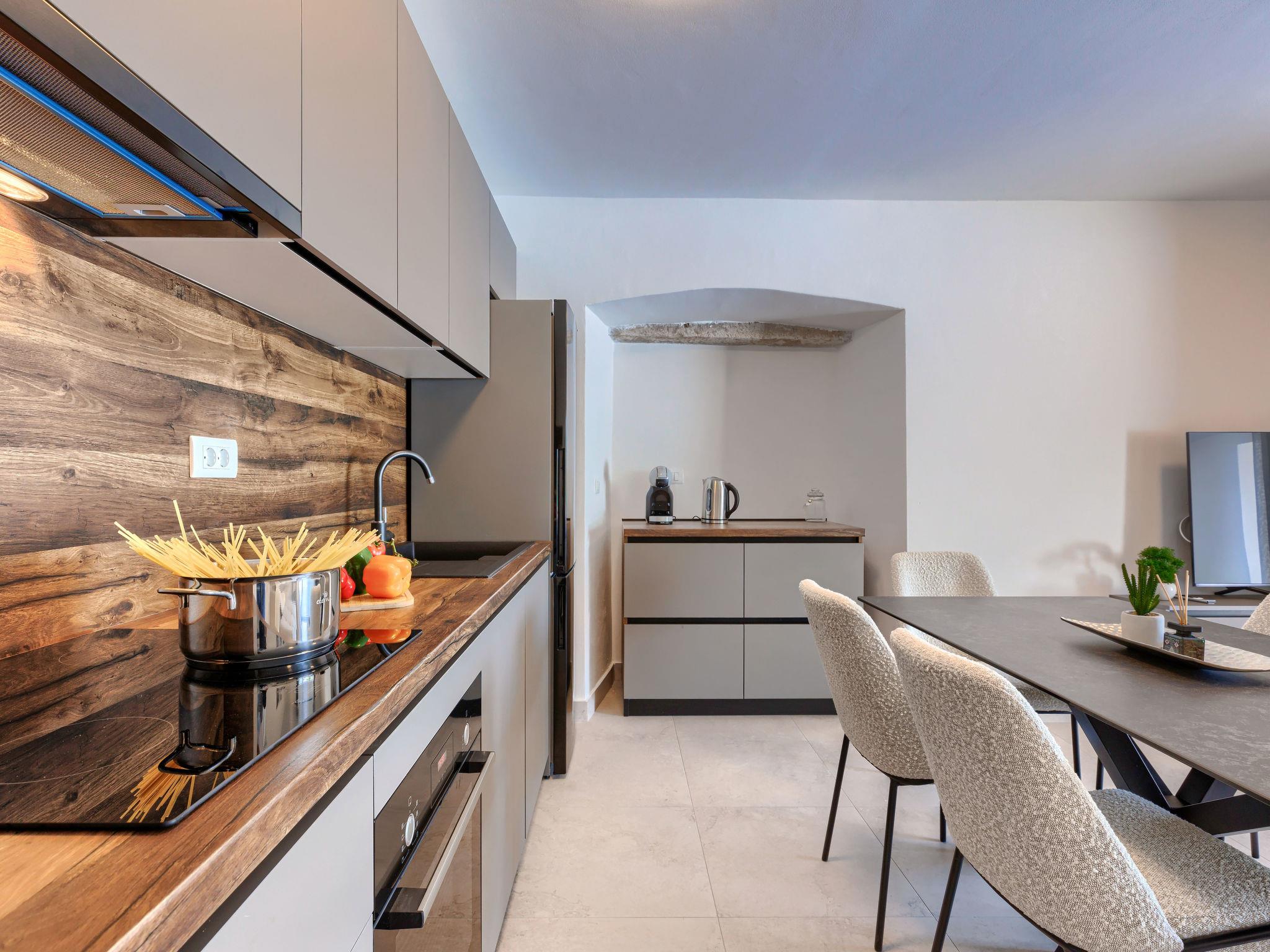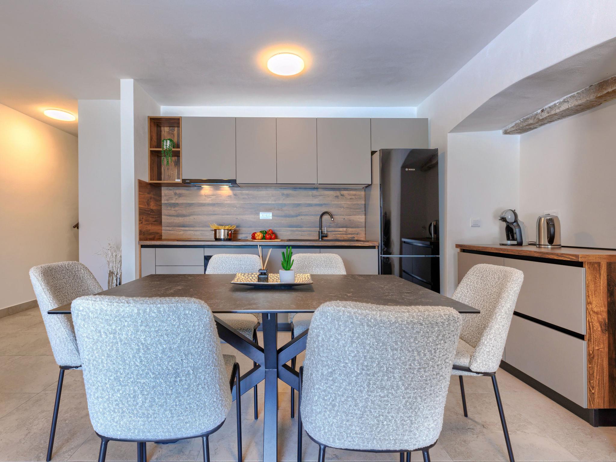 3-room semi-detached house 75 m2 on 2 levels. Fully renovated in 2024, stylish and cosy furnishings: living/dining room with satellite TV (flat screen). Exit to the terrace, to the swimming pool. Open kitchen (oven, dishwasher, 4 ceramic glass hob hotplates, toaster, kettle, microwave, freezer, electric coffee machine). Shower/WC. Upper floor: 2 rooms, each room with 1 french bed (160 cm, length 200 cm), satellite TV (flat screen). Shower/WC. Forced-air heating. Terrace furniture, deck chairs. View of the swimming pool. Facilities: washing machine. Internet (WiFi, free). Please note: non-smoking house.