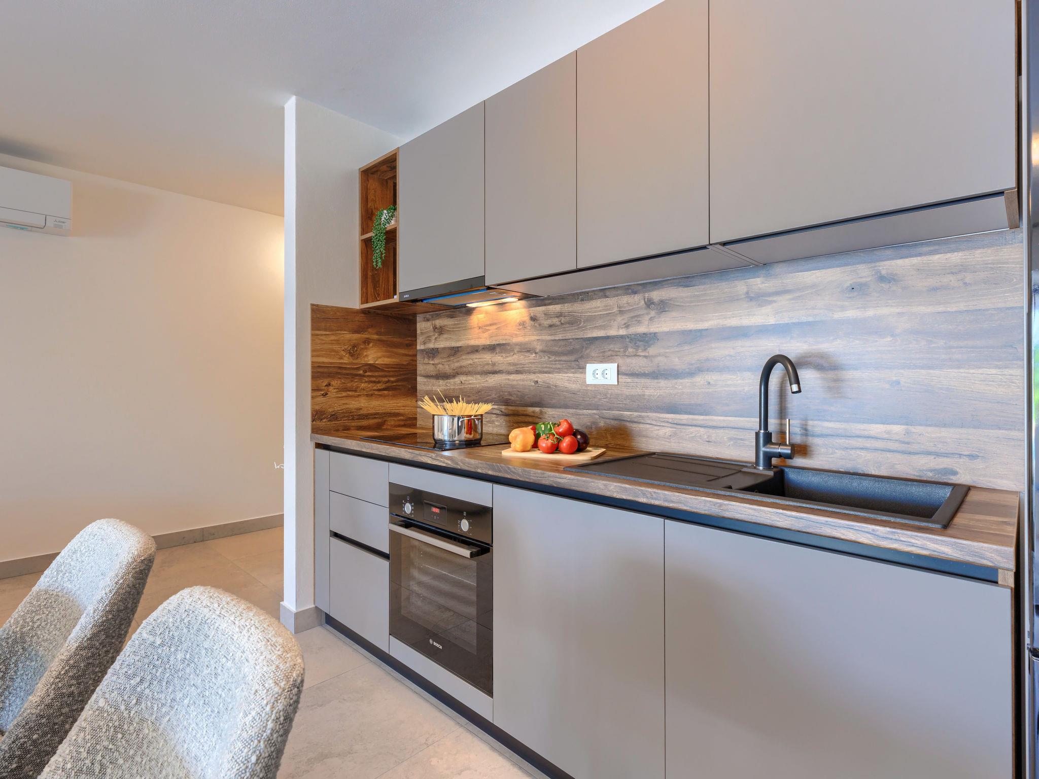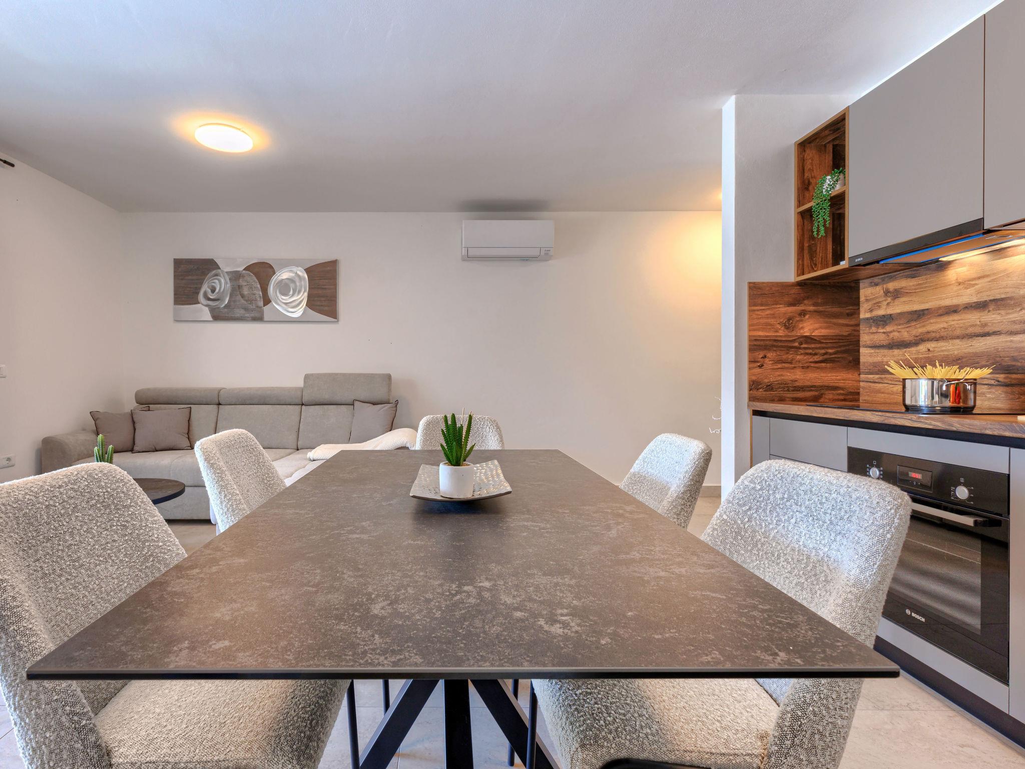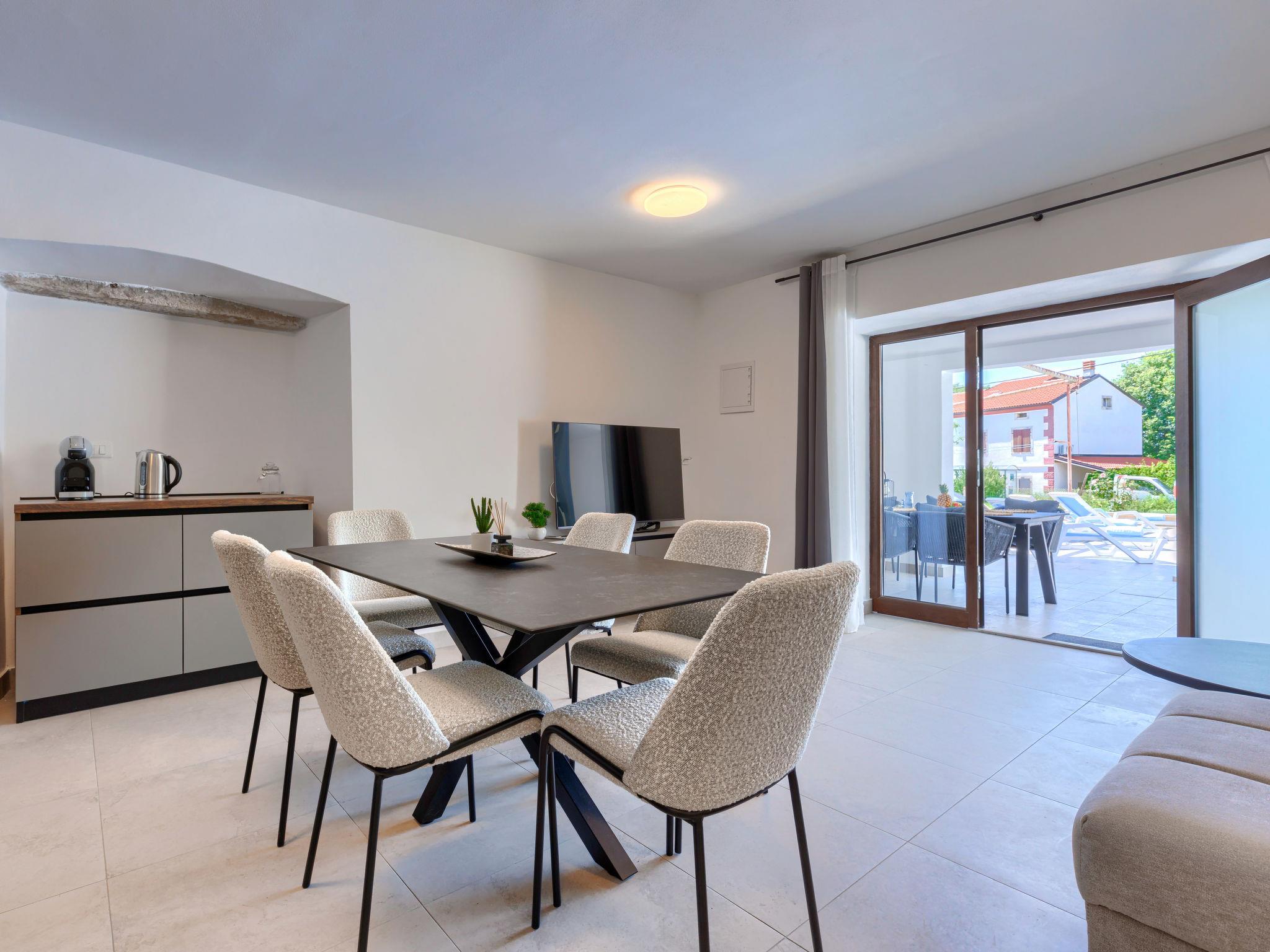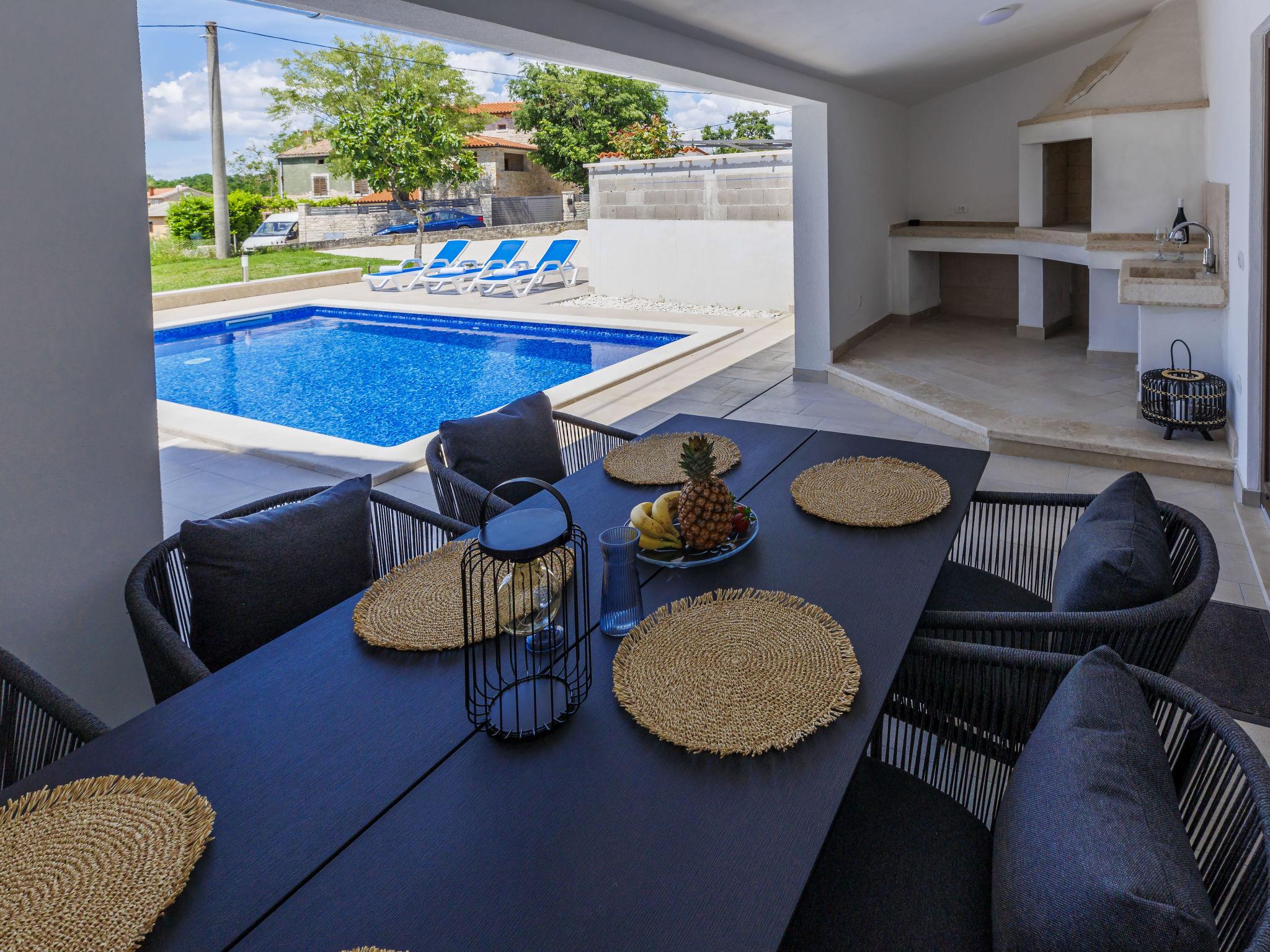Semi-detached house "Villa Marija", 2 storeys. 2 km from the centre of Prodol, on the outskirts, 5 km from the centre of Krnica, 8 km from the centre of Marcana, 7 km from the sea, 7 km from the beach. Private: property 800 m2, garden lawn, swimming pool angular (6 x 4 m, 24 m2, seasonal availability: 01.May. - 01.Oct.). Terrace (10 m2), garden furniture, barbecue. In the house: internet access, air conditioning. Parking (for 3 cars) at the house on the premises. Shop 4 km, restaurant 2 km, café 2 km, bus stop 1.5 km, pebble beach 7 km, shingle beach 7 km. Please note: suitable for families.