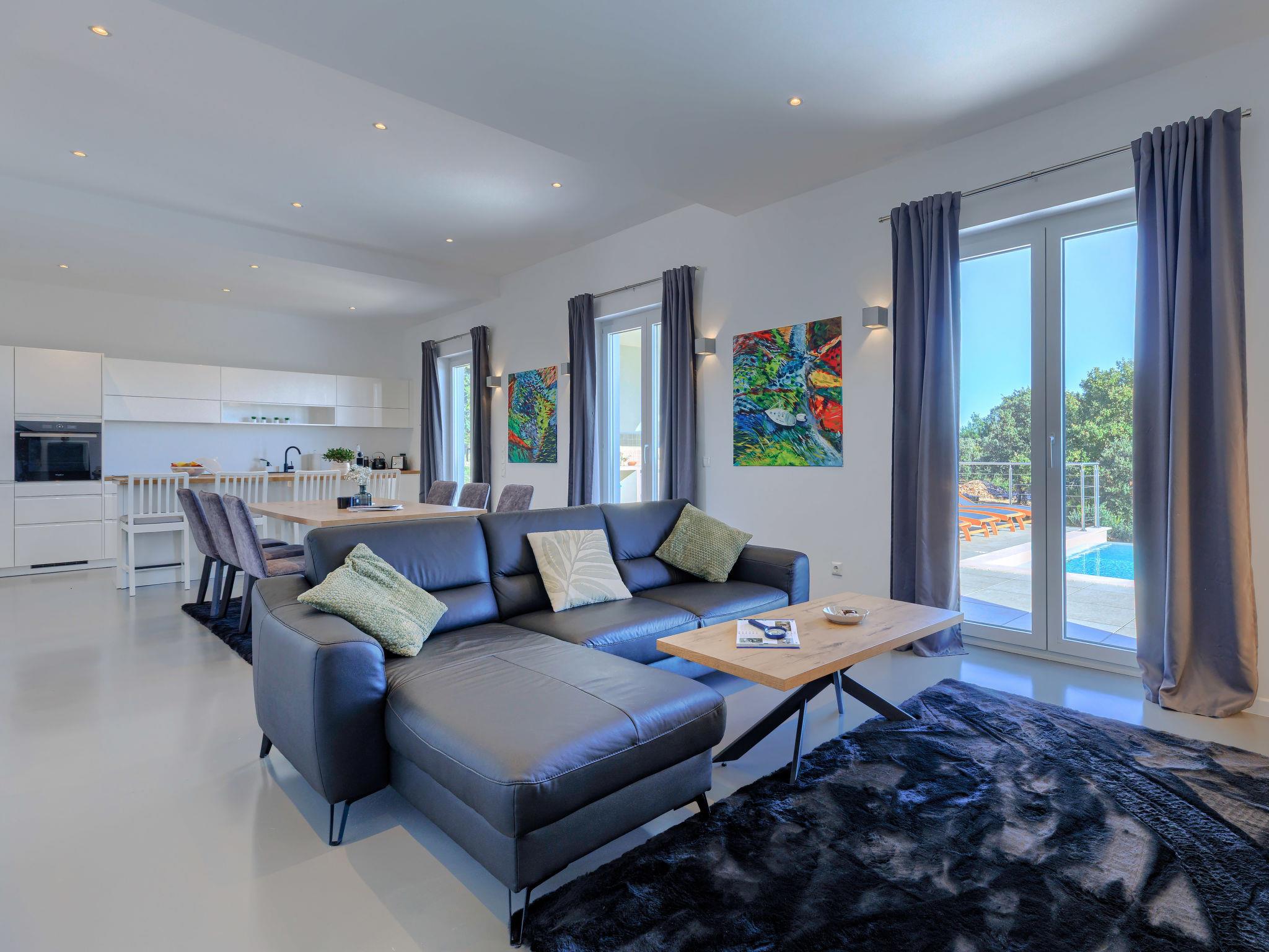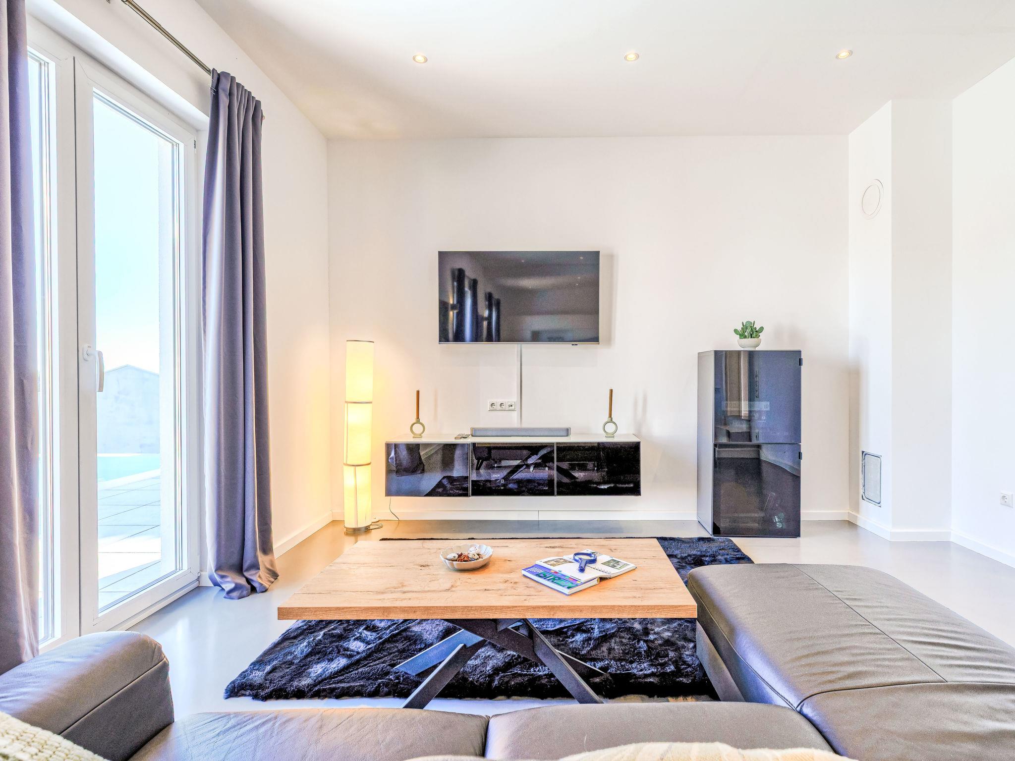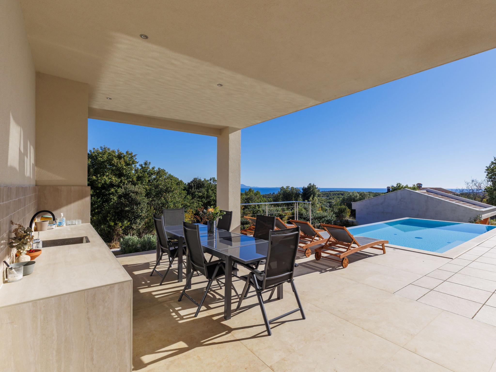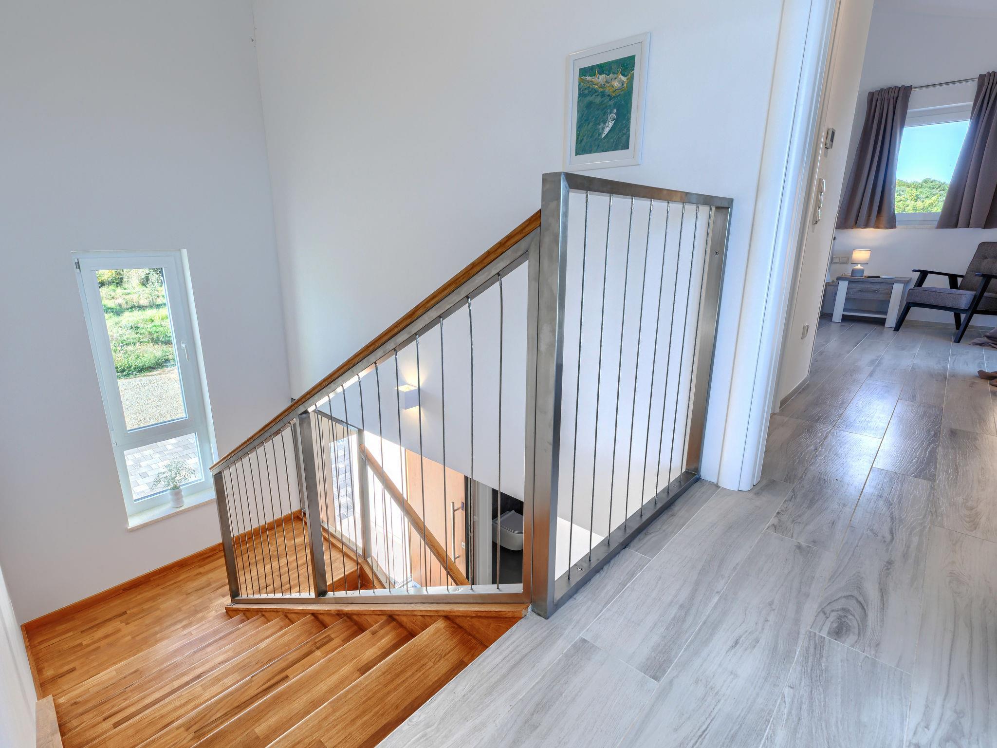 Very beautiful villa "Cappenberg", 2 storeys, built in 2025. 1 km from the centre of Peruški, 8 km from the centre of Marcana, 20 km from the centre of Pula, in an elevated position, 700 m from the sea, 700 m from the beach. Private: property 730 m2, swimming pool angular, heated (8 x 4 m, 32 m2, depth 140 cm, seasonal availability: 01.Mar. - 01.Dec.) with internal staircase and salt-electrolysis pool-cleaning system. Outdoor shower, hot tub, terrace (75 m2), garden furniture, barbecue. In the house: internet access, sauna, table tennis, roof terrace, washing machine, tumble dryer. Parking (for 3 cars) at the house on the premises. E-charging station. Shop 1.5 km, bus stop 7.5 km, pebble beach 3 km, rocky beach 700 m. Groups of teenagers on request only. Heated swimming pool. It is necessary to notify us 7 days in advance if you wish to have the pool heating turned on.