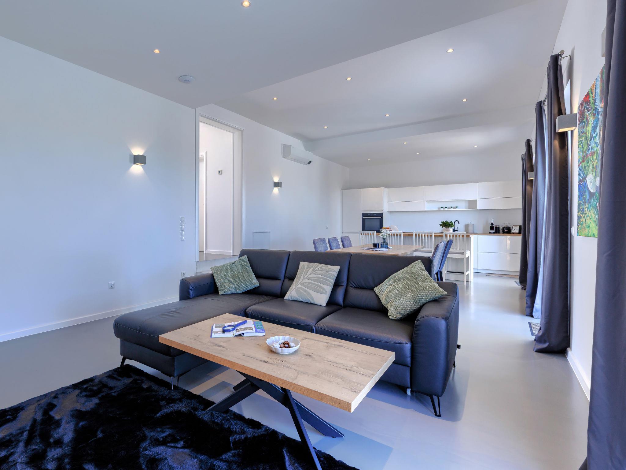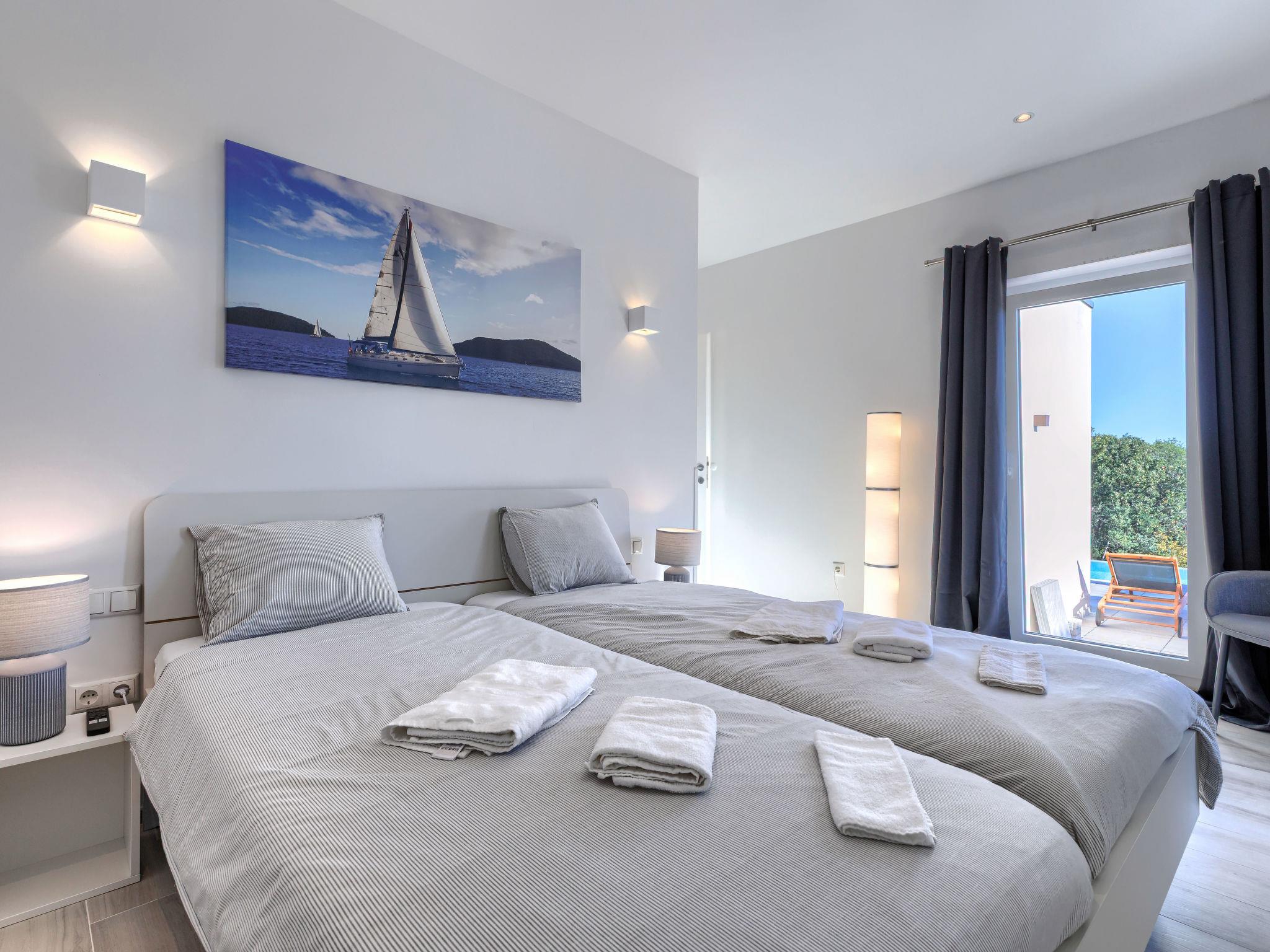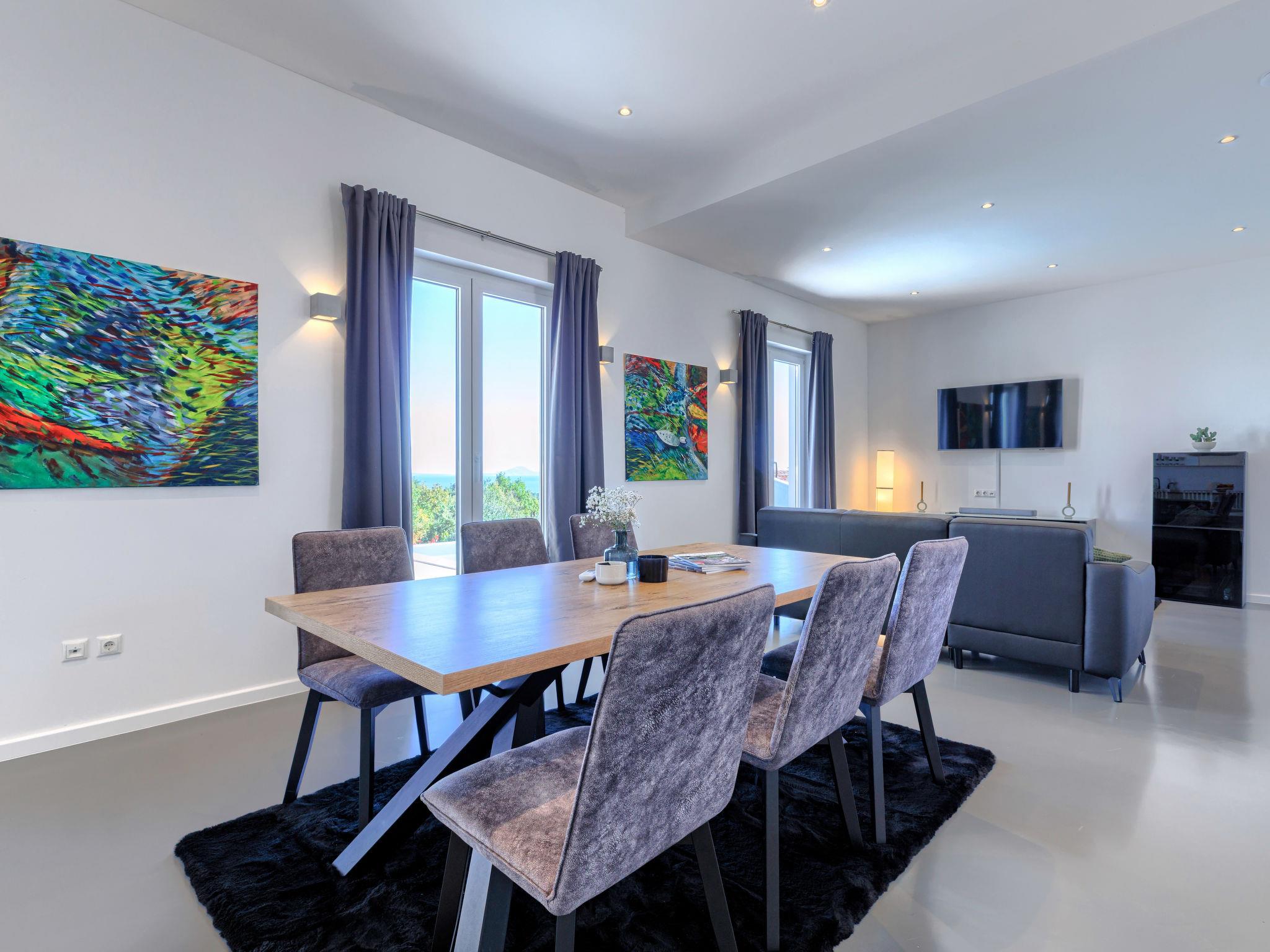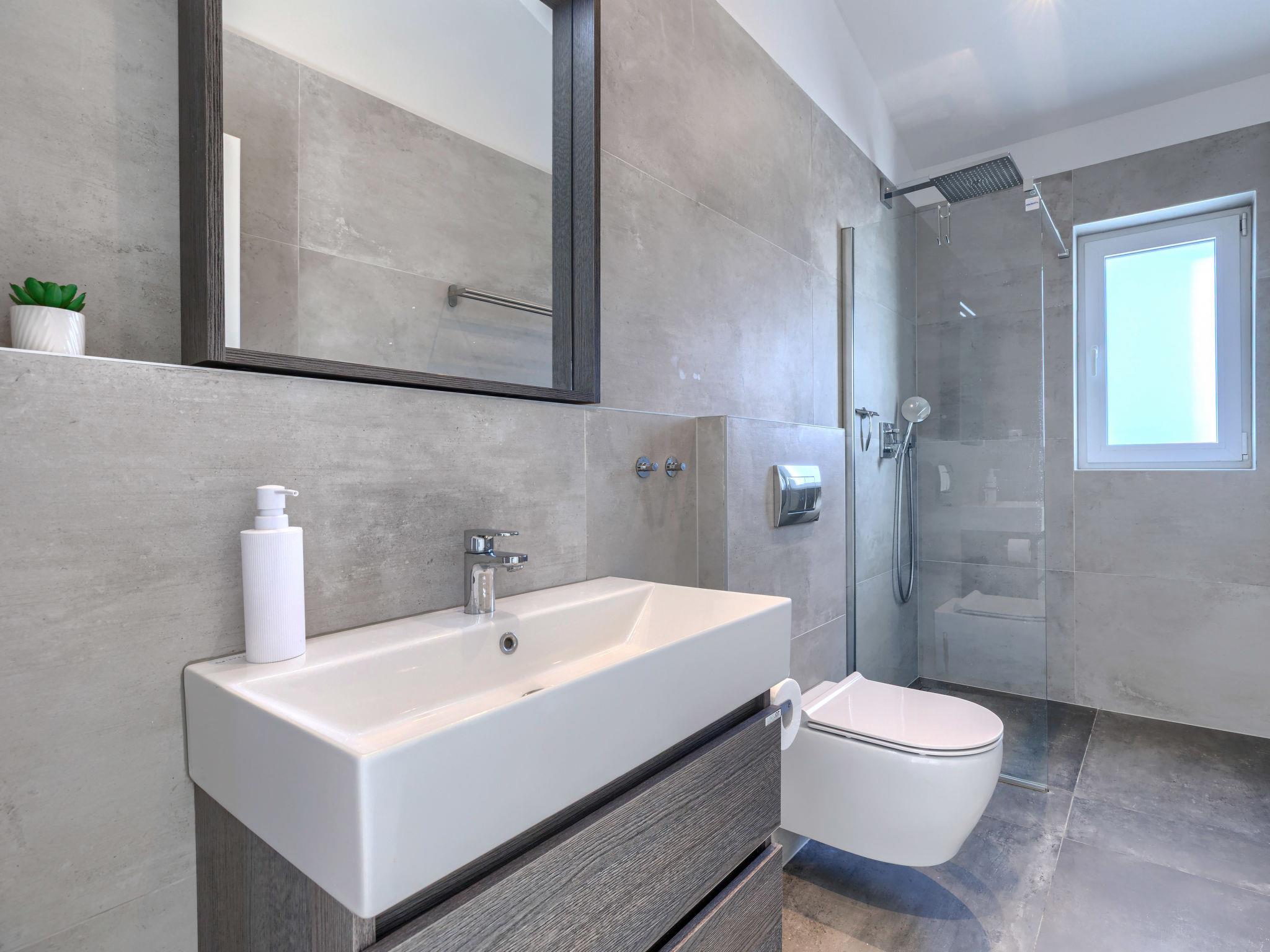 Very beautiful villa "Cappenberg", 2 storeys, built in 2025. 1 km from the centre of Peruški, 8 km from the centre of Marcana, 20 km from the centre of Pula, in an elevated position, 700 m from the sea, 700 m from the beach. Private: property 730 m2, swimming pool angular, heated (8 x 4 m, 32 m2, depth 140 cm, seasonal availability: 01.Mar. - 01.Dec.) with internal staircase and salt-electrolysis pool-cleaning system. Outdoor shower, hot tub, terrace (75 m2), garden furniture, barbecue. In the house: internet access, sauna, table tennis, roof terrace, washing machine, tumble dryer. Parking (for 3 cars) at the house on the premises. E-charging station. Shop 1.5 km, bus stop 7.5 km, pebble beach 3 km, rocky beach 700 m. Groups of teenagers on request only. Heated swimming pool. It is necessary to notify us 7 days in advance if you wish to have the pool heating turned on.