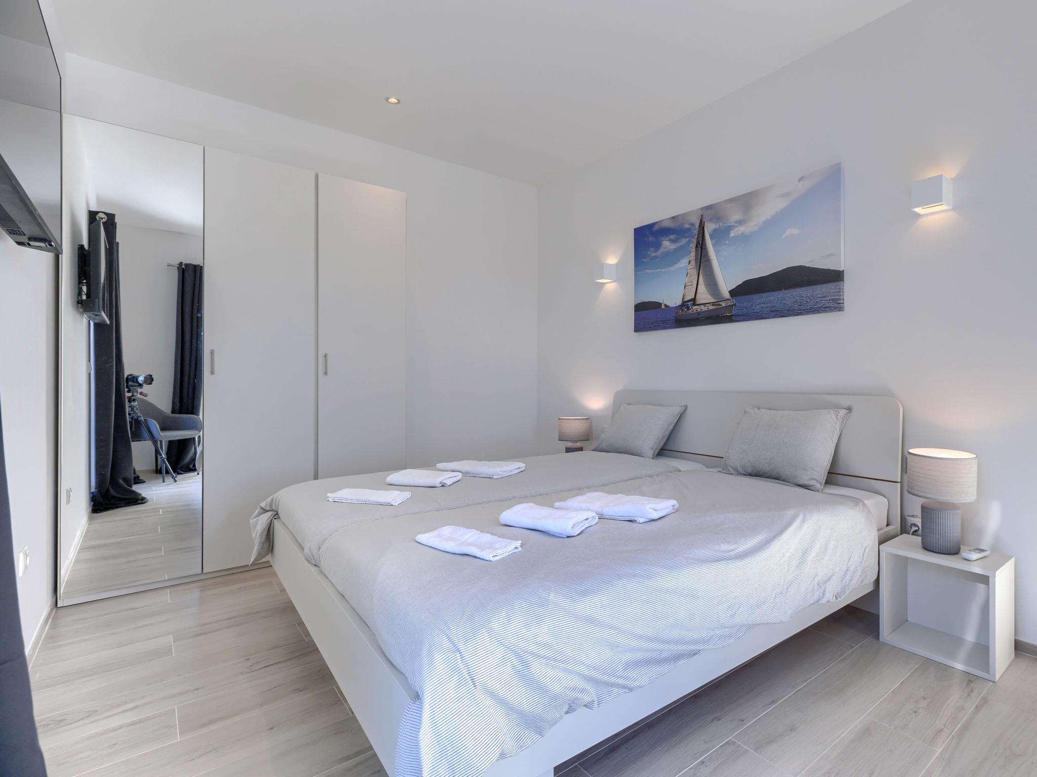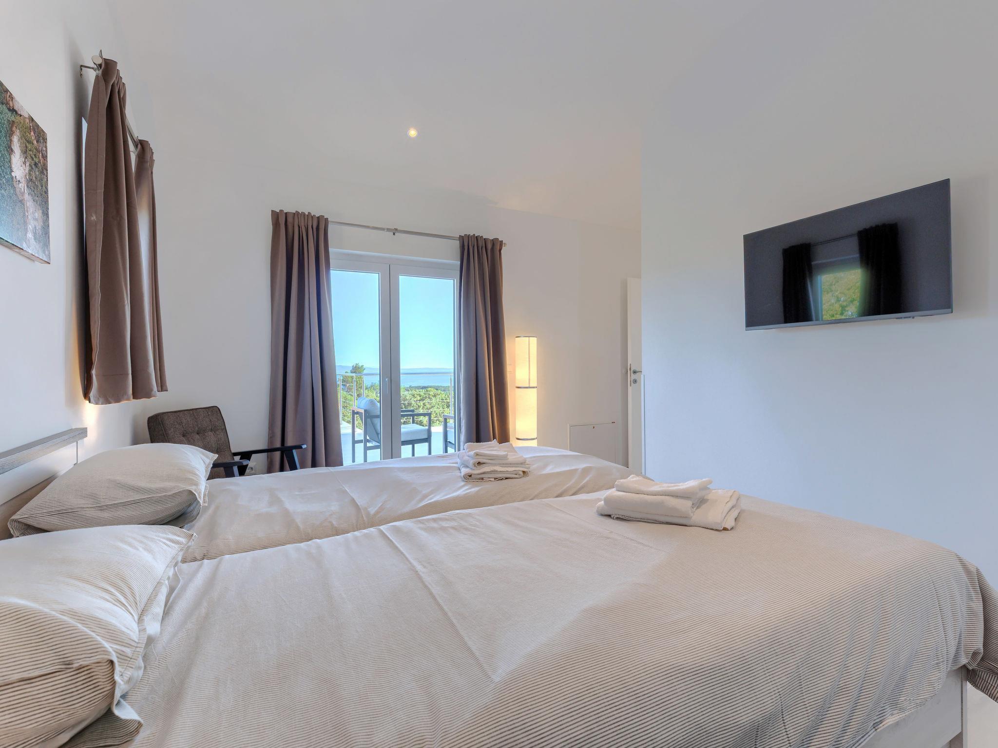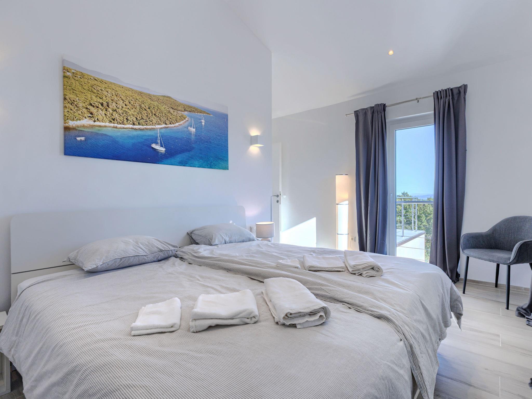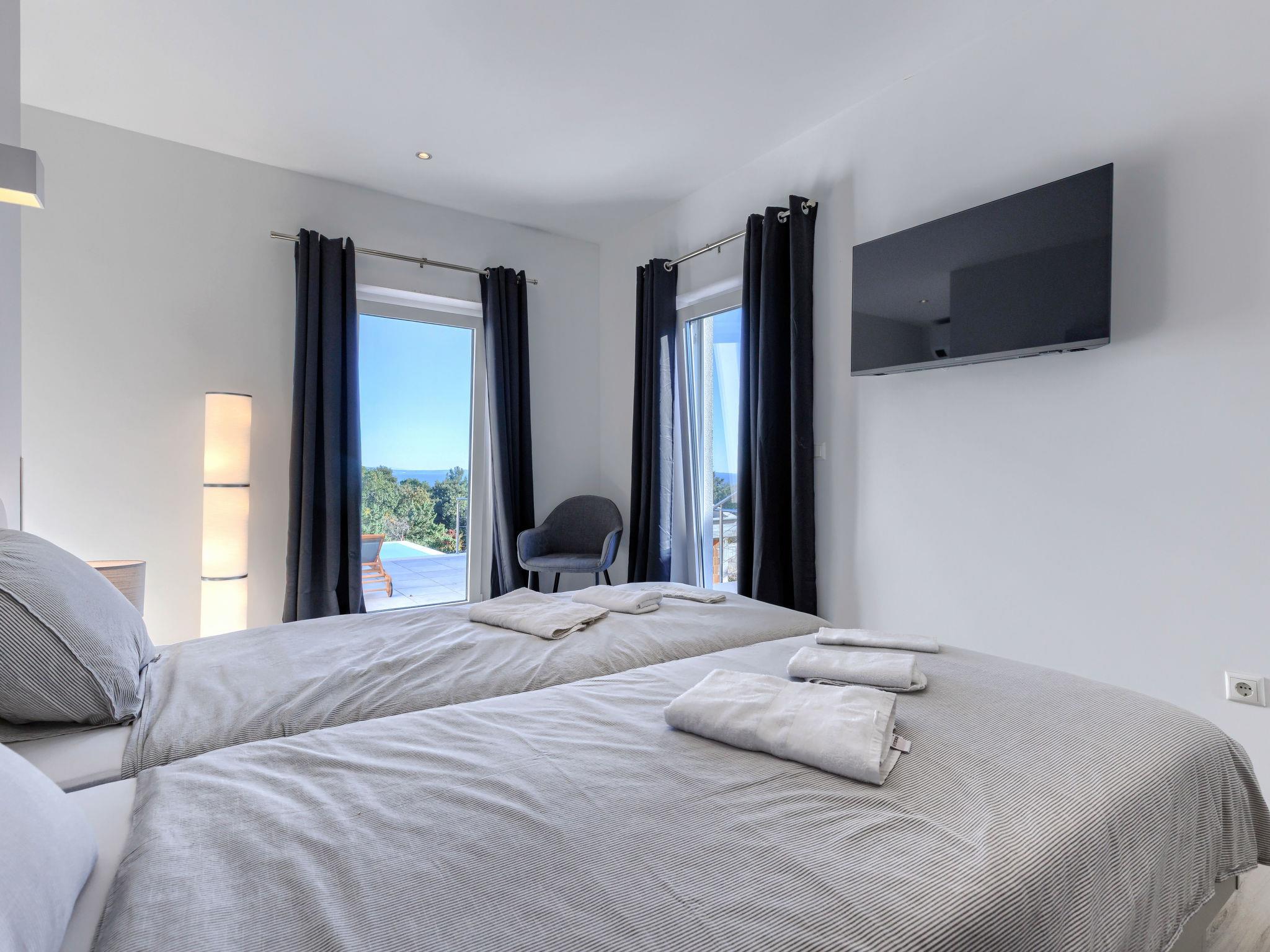 4-room villa 150 m2 on 2 levels. Bright, tasteful furnishings: living/dining room with satellite TV (flat screen), wood-burning stove and air conditioning. Exit to the terrace, to the swimming pool. 1 room with 1 french bed (180 cm, length 200 cm), shower/WC and satellite TV (flat screen), air conditioning. Exit to the terrace, to the swimming pool. Open kitchen (oven, dishwasher, 4 ceramic glass hob hotplates, toaster, kettle, freezer, electric coffee machine). Sep. WC. Upper floor: 1 room with 1 french bed (180 cm, length 200 cm), shower/WC and satellite TV (flat screen), air conditioning. Exit to the terrace. 2 rooms, each room with 1 french bed (180 cm, length 200 cm), shower/WC and satellite TV (flat screen), air conditioning. Forced-air heating. Terrace 20 m2 partly. Terrace furniture, deck chairs. Marvellous view of the sea, the swimming pool and the countryside. Facilities: washing machine, safe, children's high chair, baby cot. Internet (WiFi, free). E-charging station.