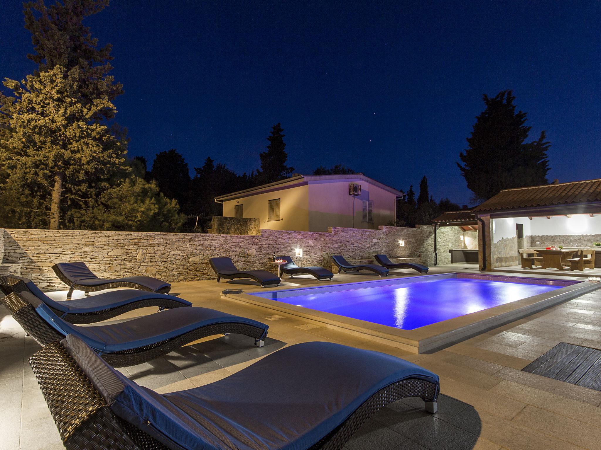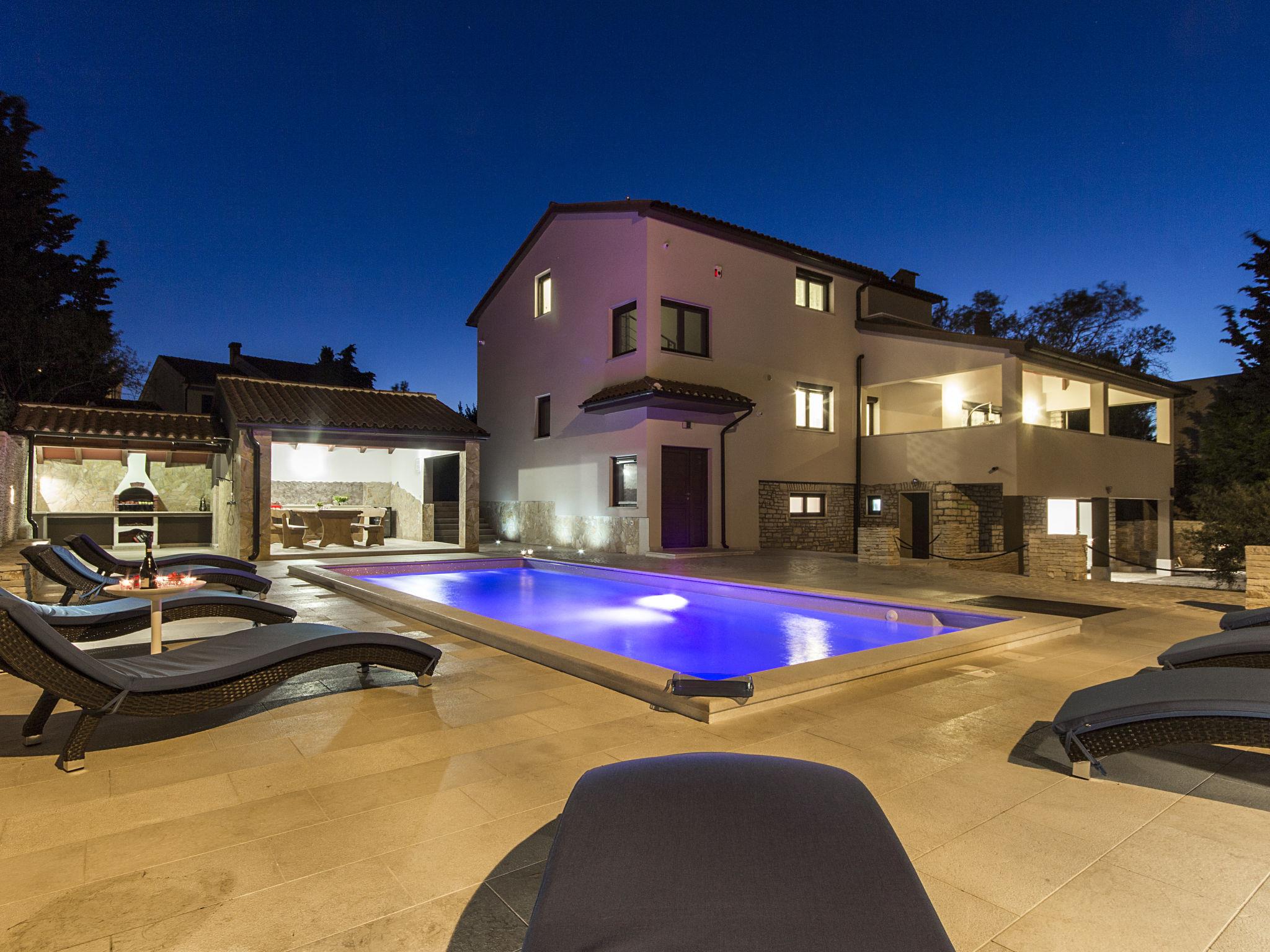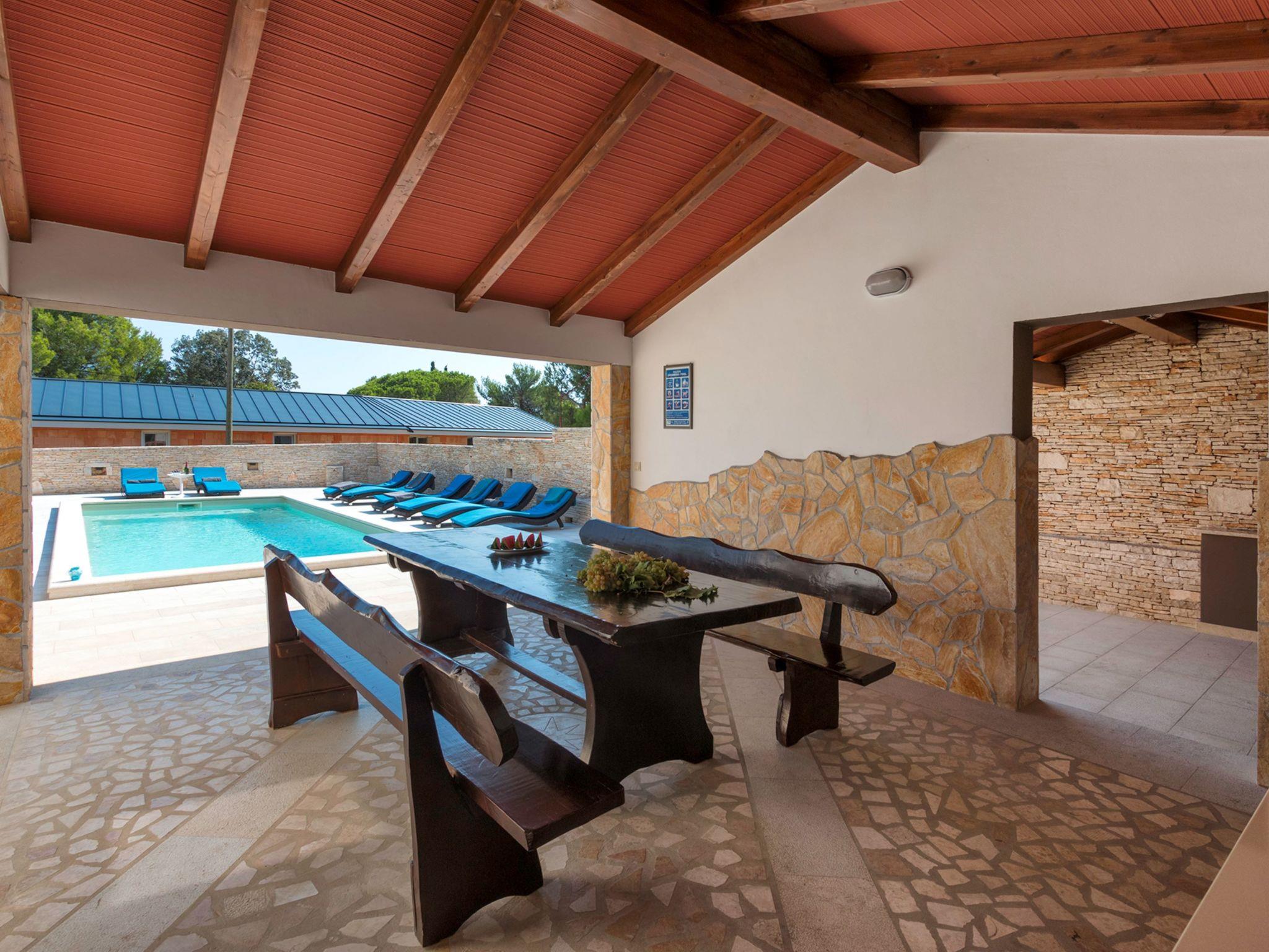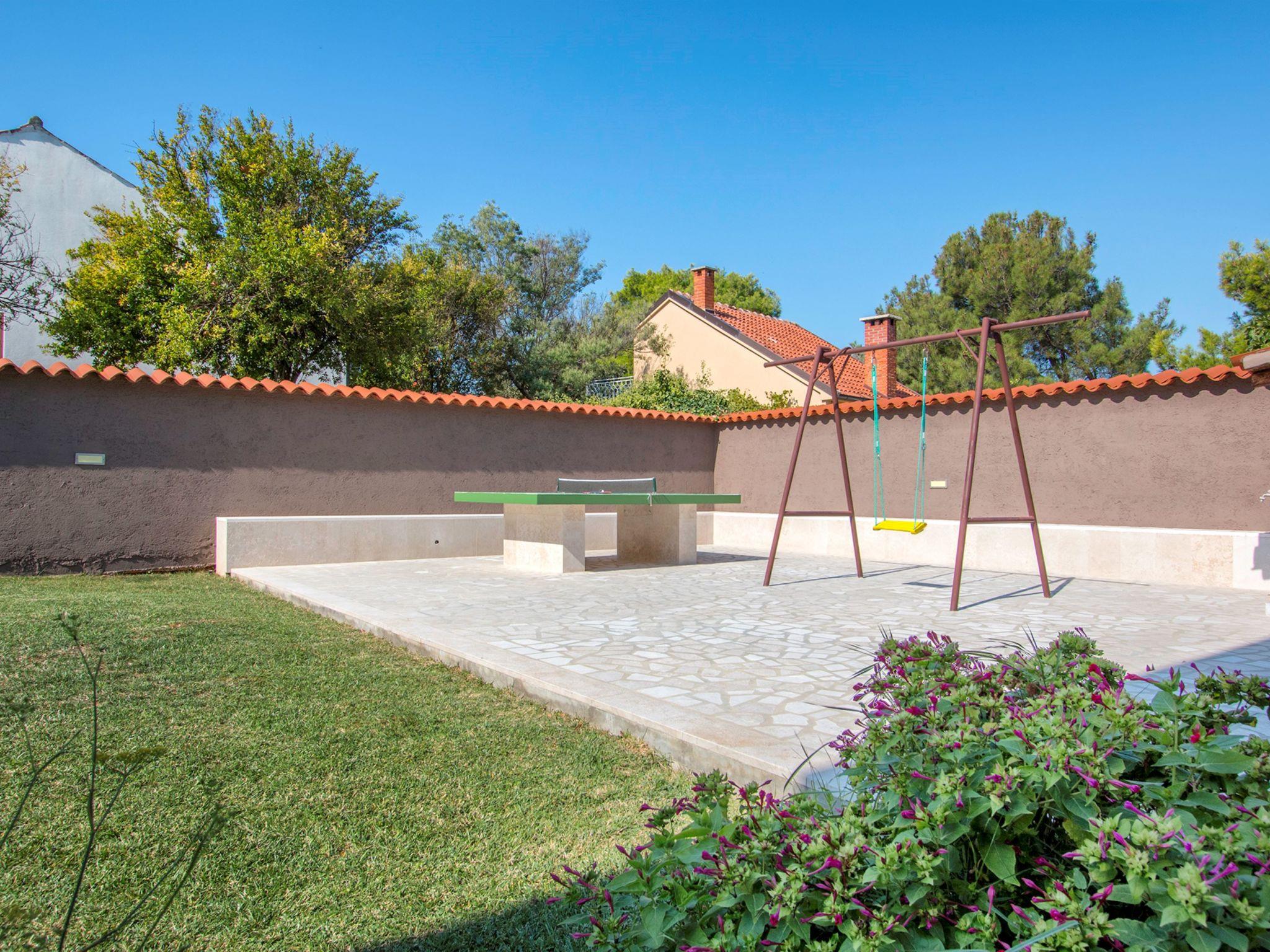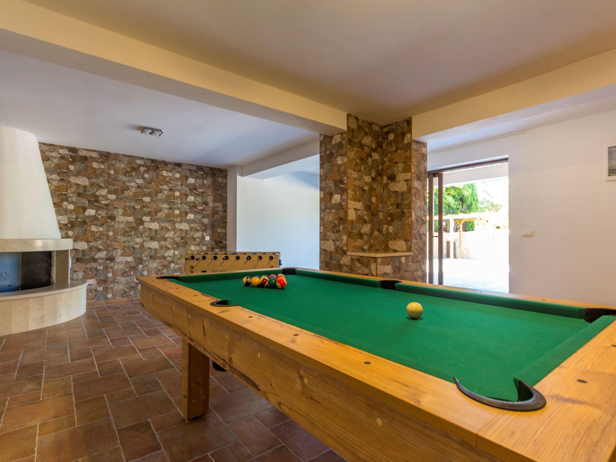 Premantura 11 km from Pula: Comfortable villa "L", 3 storeys. 600 m from the centre of Premantura, in a quiet, sunny position, 450 m from the sea, 450 m from the beach. Private: property 990 m2 (fenced), garden with flowers and trees, swimming pool angular (9 x 4 m, depth 140 cm, seasonal availability: 01.Apr. - 01.Nov.) with internal staircase. Shower/WC in the pool area, outdoor shower, table tennis, terrace (30 m2), barbecue, pool maintenance by the owner/gardener. In the house: internet access, billiard table, table football, washing machine. Parking at the house on the premises. Shop 600 m, restaurant 200 m, bus stop 500 m, pebble beach 550 m, rocky beach 450 m. Surf school 1 km, walking paths from the house 800 m, cycle lane 850 m. Nearby attractions: Nature park Kamenjak 800 m.