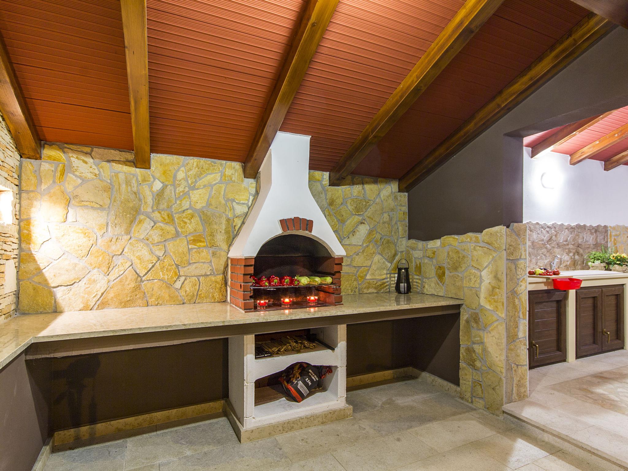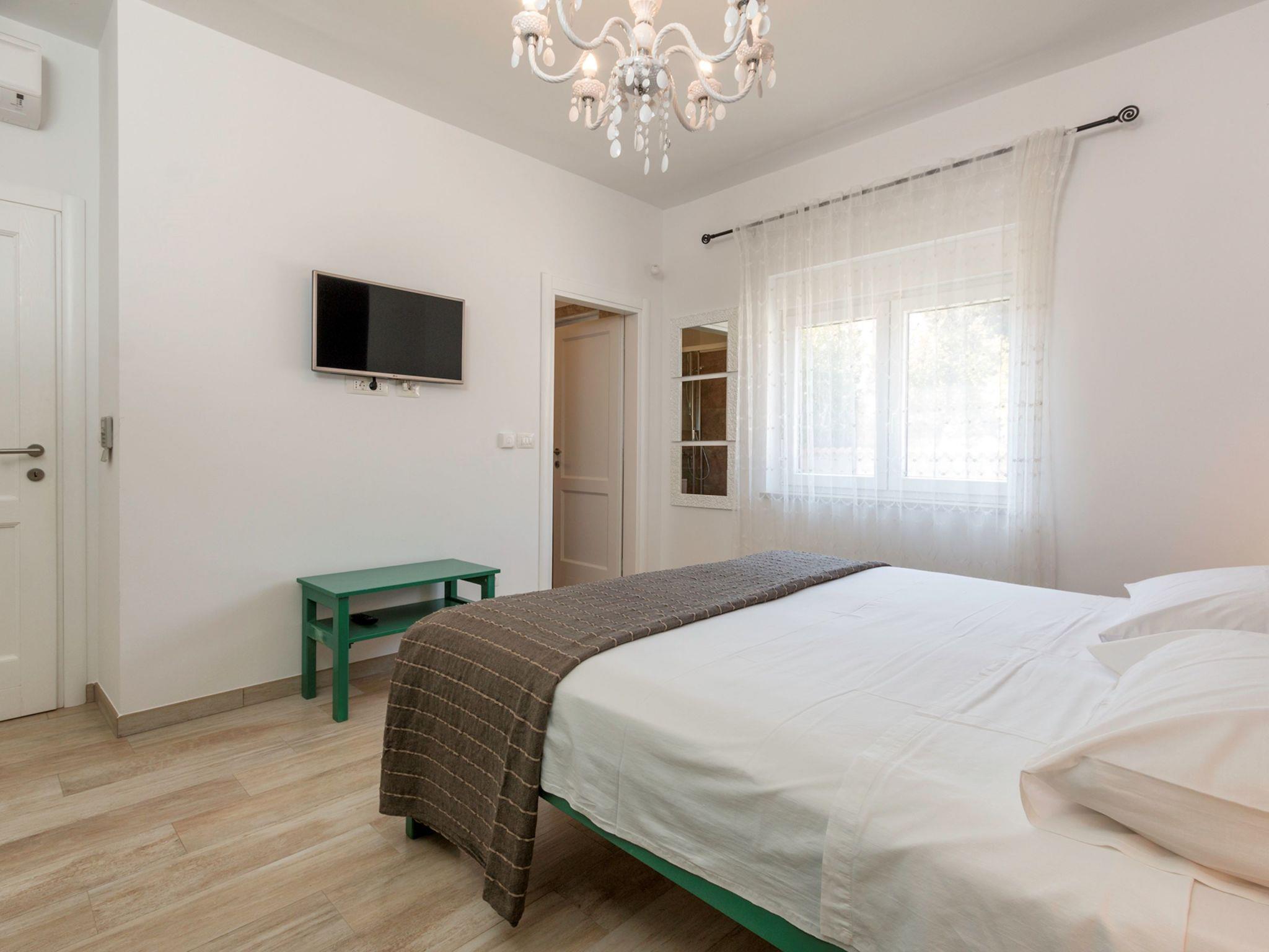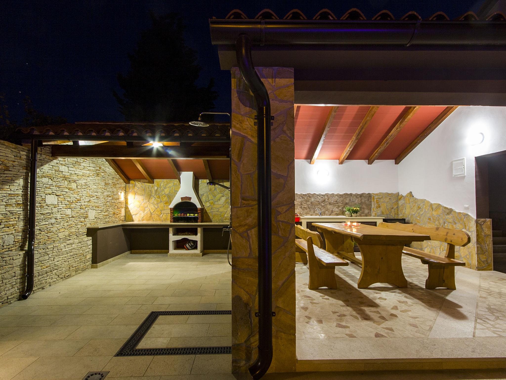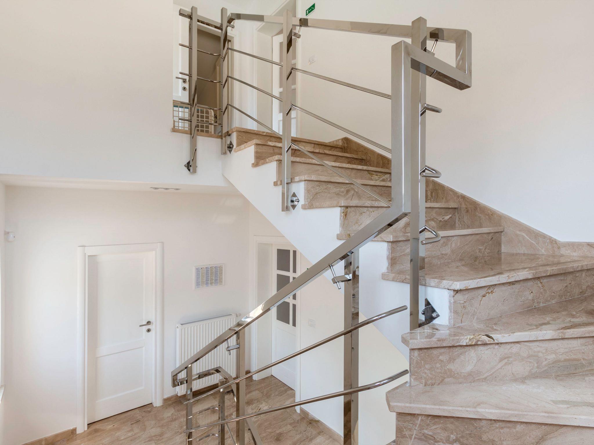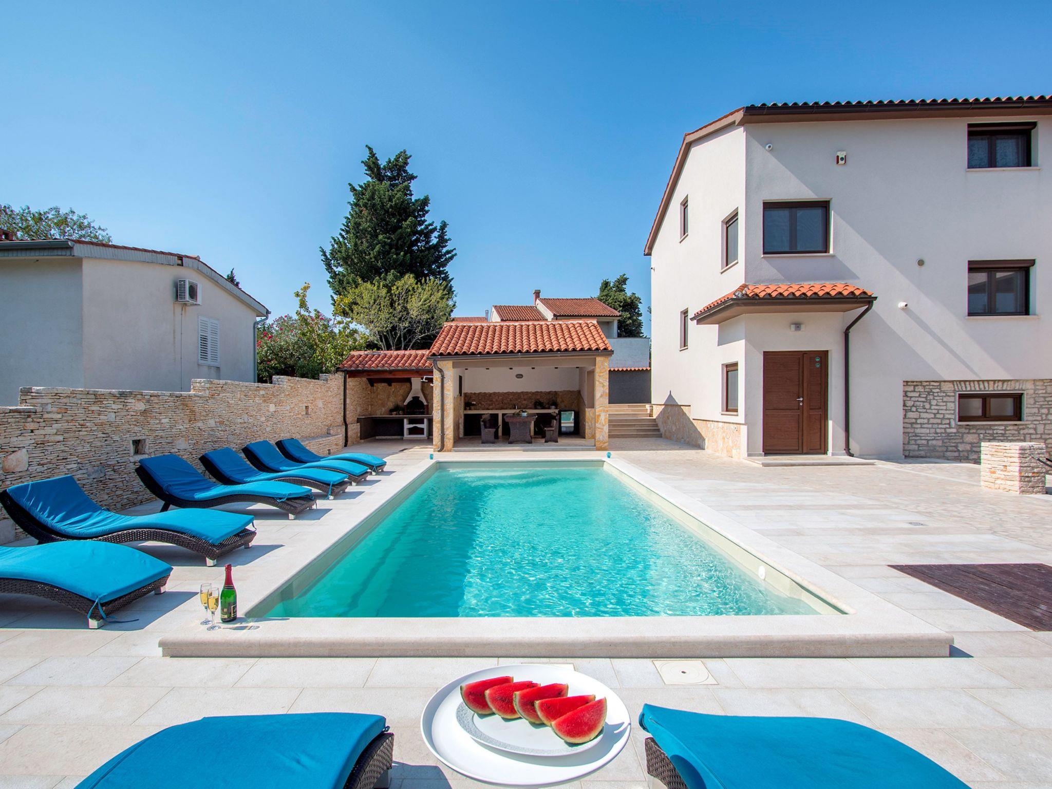 Premantura 11 km from Pula: Comfortable villa "L", 3 storeys. 600 m from the centre of Premantura, in a quiet, sunny position, 450 m from the sea, 450 m from the beach. Private: property 990 m2 (fenced), garden with flowers and trees, swimming pool angular (9 x 4 m, depth 140 cm, seasonal availability: 01.Apr. - 01.Nov.) with internal staircase. Shower/WC in the pool area, outdoor shower, table tennis, terrace (30 m2), barbecue, pool maintenance by the owner/gardener. In the house: internet access, billiard table, table football, washing machine. Parking at the house on the premises. Shop 600 m, restaurant 200 m, bus stop 500 m, pebble beach 550 m, rocky beach 450 m. Surf school 1 km, walking paths from the house 800 m, cycle lane 850 m. Nearby attractions: Nature park Kamenjak 800 m.