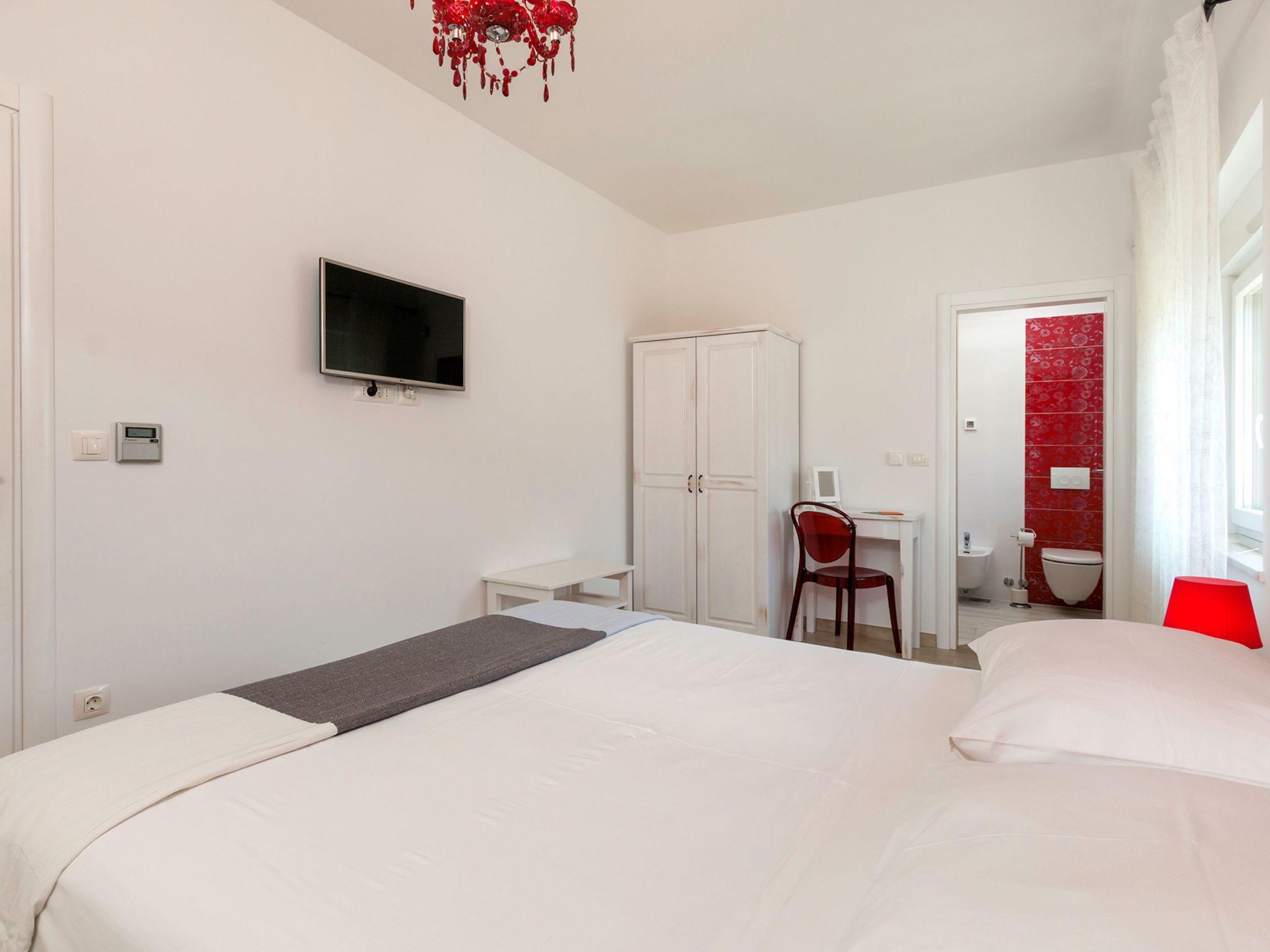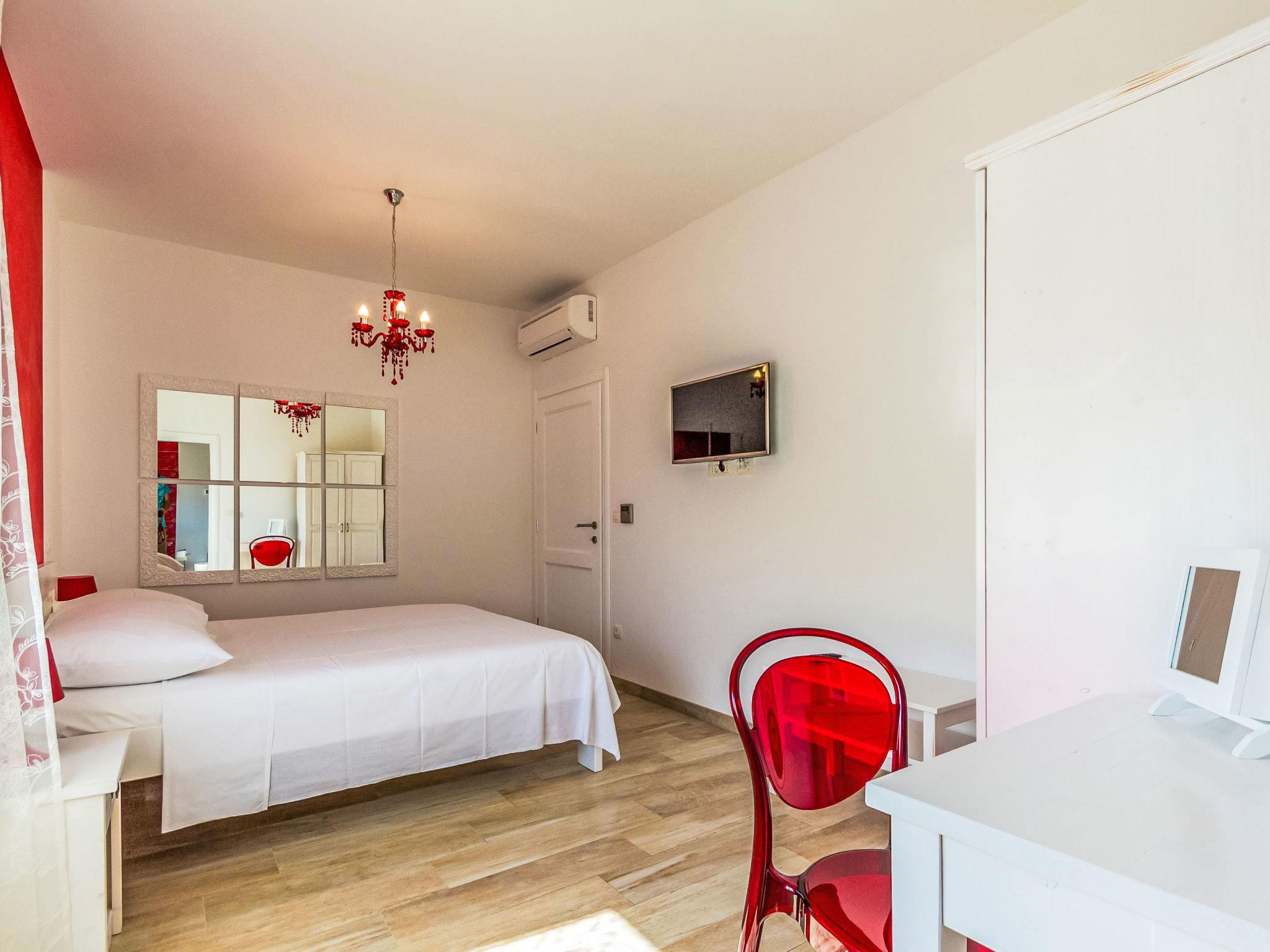 6-room villa 250 m2 on 3 levels. Billiard room. Upper floor: living/dining room with satellite TV (flat screen), air conditioning. Exit to the terrace. 1 room with 1 french bed (160 cm, length 200 cm), shower/WC and satellite TV (flat screen), air conditioning. 1 room with 1 french bed (180 cm, length 200 cm), shower/bidet/WC and satellite TV (flat screen), air conditioning. Open kitchen (oven, dishwasher, 4 ceramic glass hob hotplates, toaster, kettle, microwave, freezer, electric coffee machine). 2nd upper floor: 1 room with 1 double bed (2 x 90 cm, length 200 cm), shower/WC and satellite TV (flat screen), air conditioning. Exit to the terrace. 1 room with 1 double bed (2 x 80 cm, length 200 cm), shower/WC and satellite TV (flat screen), air conditioning. 1 room with 2 beds (90 cm, length 200 cm). Sep. WC. No heating option. Large terrace 40 m2, terrace 40 m2. Terrace furniture. Distant view of the sea. Facilities: hair dryer. Internet (WiFi, free).