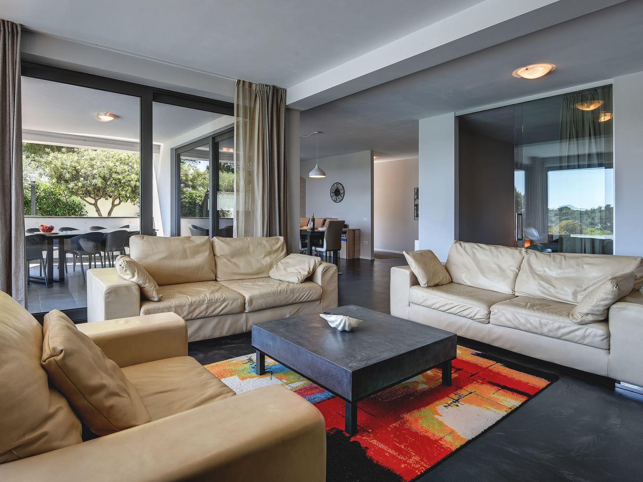 It is a modern, spacious villa built in 2015 with a size of 500 m² on three similar floors. On every floor there is a living room and a fully equipped kitchen. There are eight bedrooms and also a sofa bed and a baby cot. All bedrooms have a double bed measuring 180 x 200cm. Six modern bathrooms assure a comfortable start into the day. The house is fully air conditioned and offers free internet connection.