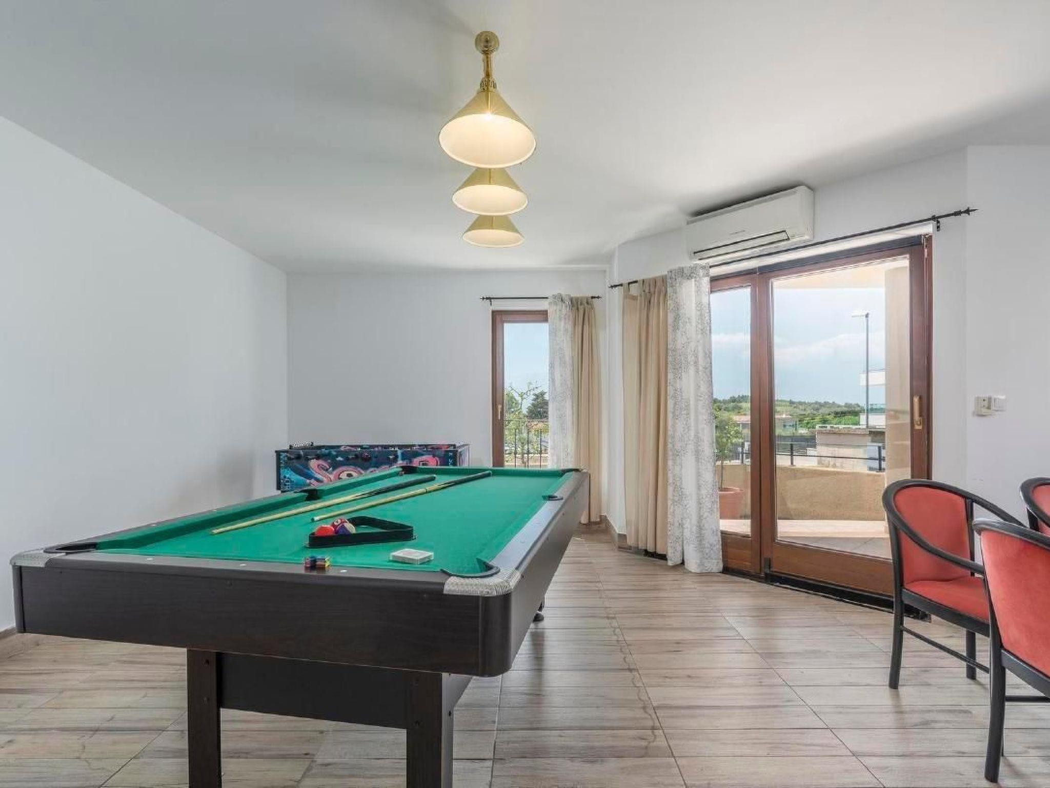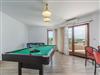 The holiday house in Premantura is a haven for large families or groups, accommodating up to 24+2 guests with the utmost comfort and privacy. The ground floor features a spacious living room designed for cozy gatherings, alongside a dedicated children's corner for video games. The fully equipped kitchen and dining area open up to the garden and swimming pool, ensuring seamless indoor-outdoor living. The bedrooms are designed as suites, offering private entrances, two-bedroom arrangements, en-suite bathrooms with showers, and private covered terraces boasting sea views and vistas of the nearby nature park. This ensures each family or group enjoys their own private retreat within the home.