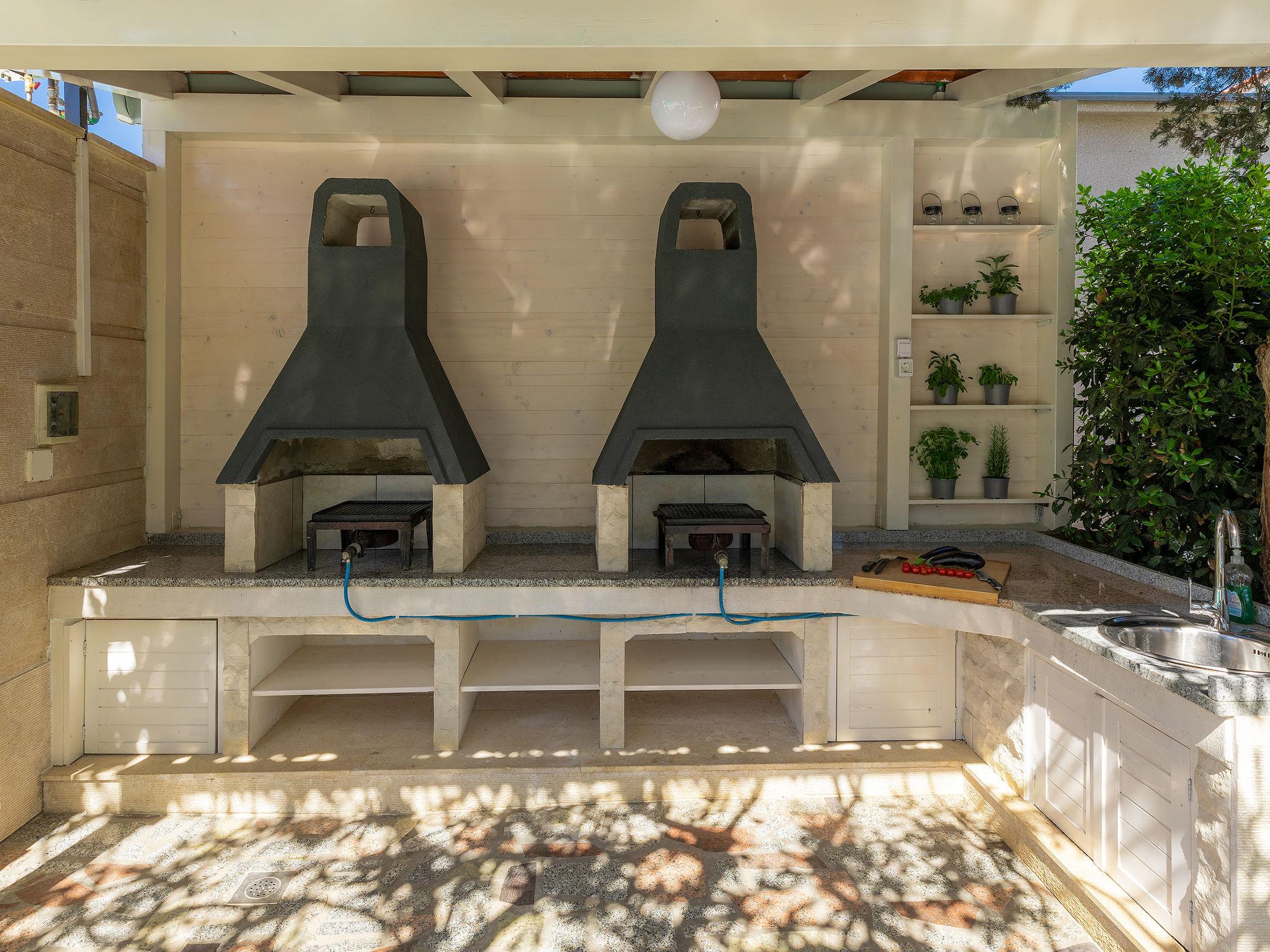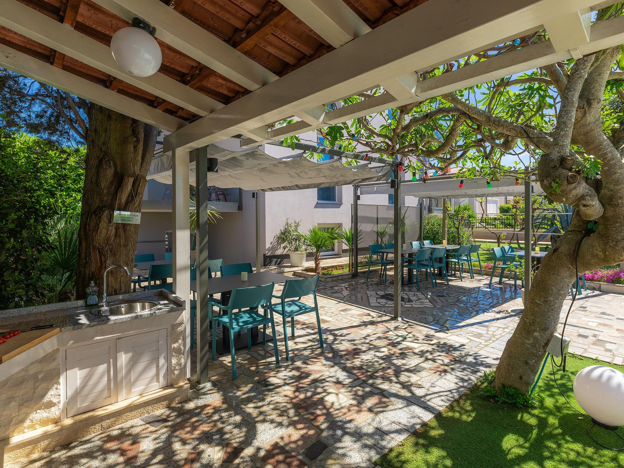 Child friendly, very beautiful apartment house "Villa Jadranka". In the district of Puntižela, in the resort Štinjan, 5 km from the centre of Pula, 3 km from the centre of Fažana, in a sunny position, traffic calmed area, 300 m from the sea, 350 m from the beach, in a cul-de-sac, in the countryside. For shared use: property 1'000 m2 (fenced), beautiful garden with plants and flowers, swimming pool angular (12 x 6 m, depth 140 cm, seasonal availability: 30.Mar. - 02.Nov.) with internal staircase. Shower/WC in the pool area, arbour, terrace (90 m2), garden furniture, barbecue, children's playground. In the house: reception, internet access, WiFi, air conditioning, washing machine (for shared use, extra), bicycle rental. Room cleaning daily on request (extra). Airport transfer (extra). Parking at the house on the premises. Shop, supermarket 2.5 km, shopping centre 7 km, restaurant 150 m, bakery, café 400 m, bus stop 400 m, railway station 5 km, ferry 5 km, sandy beach 15 km pebble beach 350 m, rocky beach 350 m, diving center 500 m, thermal baths 40 km. Marina 5 km, golf course (18 hole) 5 km, surf school 15 km, tennis 1 km, minigolf 10 km, riding stable 3 km. Nearby attractions: National park Brijuni 5 km, Amphitheater 5 km, Nature park Rt. Kamenjak 15 km. Please note: baby equipment on request (extra). Airfield 15 km from the property. The photograph shows a typical example. Additional accommodations can be booked. Youth groups are not allowed.