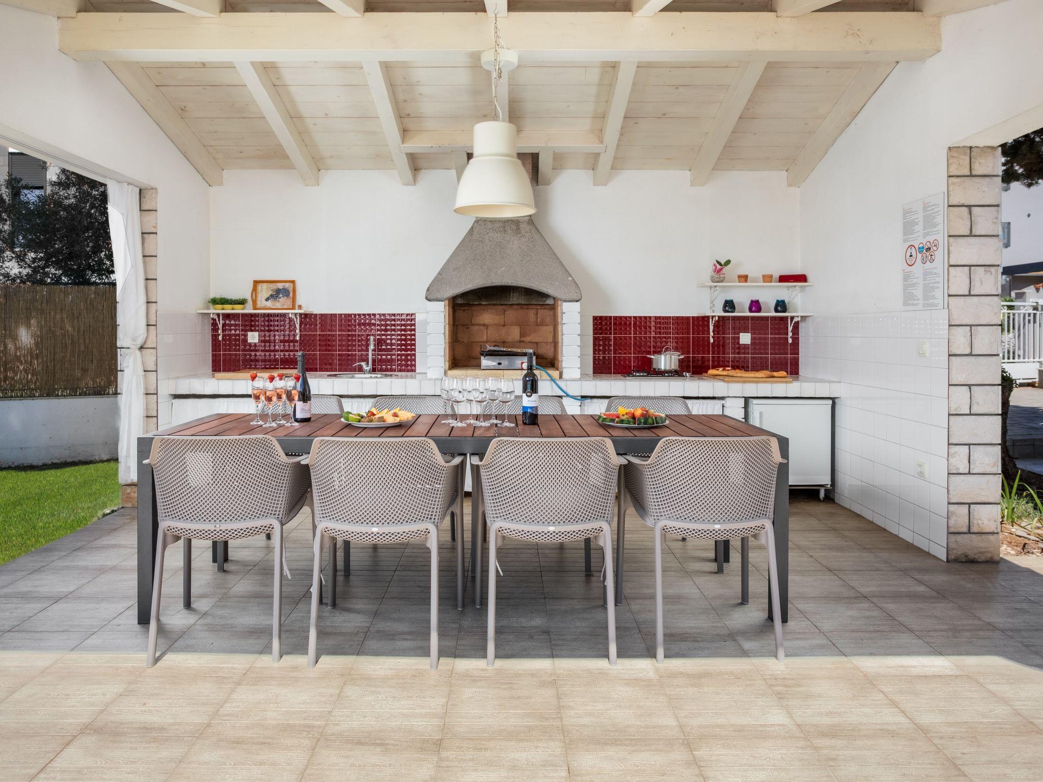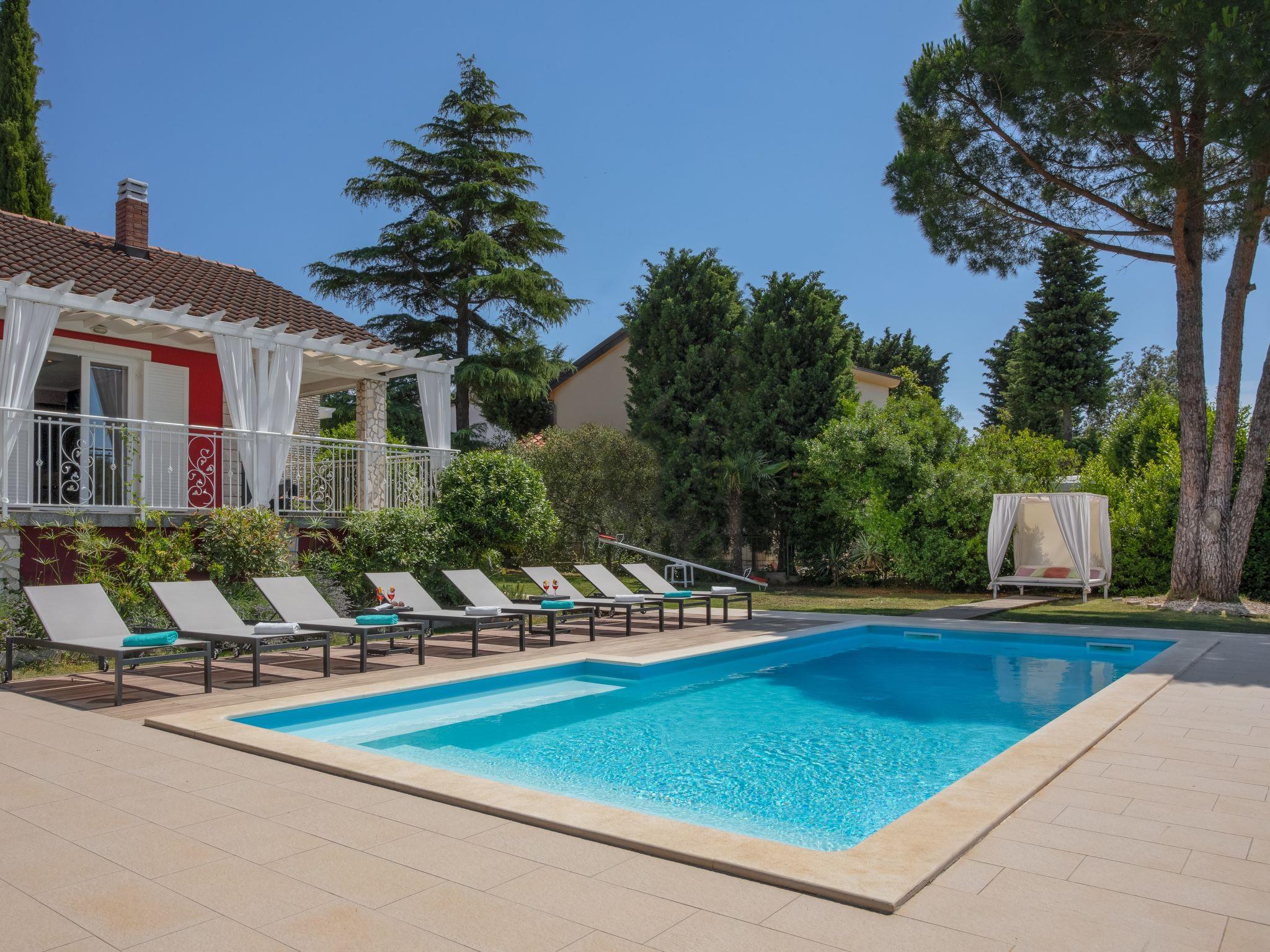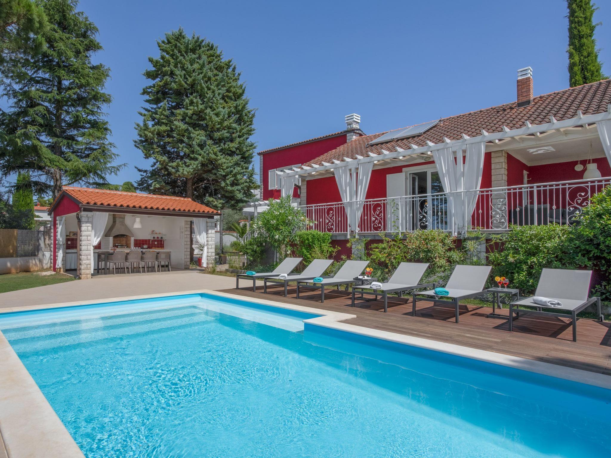 Child friendly, very beautiful villa "Villa Puntizela", 2 storeys. In the district of Puntižela, in the resort Štinjan, 5 km from the centre of Pula, 3 km from the centre of Fažana, in a sunny position, traffic calmed area, 300 m from the sea, 350 m from the beach, in a cul-de-sac, in the countryside. For shared use: children's playground. Private: property 1'000 m2 (fenced), beautiful garden with lawn and trees, lawn for sunbathing, swimming pool (8 x 4 m, depth 120 - 140 cm, seasonal availability: 28.Mar. - 07.Nov.) with internal staircase. Outdoor shower, pool house with fridge and cooking stove, barbecue. In the house: internet access, WiFi, air conditioning, burglar alarm system, washing machine, bicycle rental. Room cleaning daily on request (extra). Airport transfer (extra). Parking at the house on the premises, single garage. Shop, supermarket 2.5 km, shopping centre 7 km, restaurant 150 m, bakery 400 m, café 400 m, bus stop, railway station 5 km, ferry 5 km, sandy beach 15 km pebble beach, rocky beach 350 m, diving center 500 m, thermal baths 40 km. Marina 5 km, golf course (18 hole) 5 km, surf school 15 km, tennis 1 km, minigolf 10 km, riding stable 3 km. Nearby attractions: National park Brijuni 5 km, Amfiteatar 5 km, Nature park Rt. Kamenjak 15 km. Please note: airfield 15 km from the property.