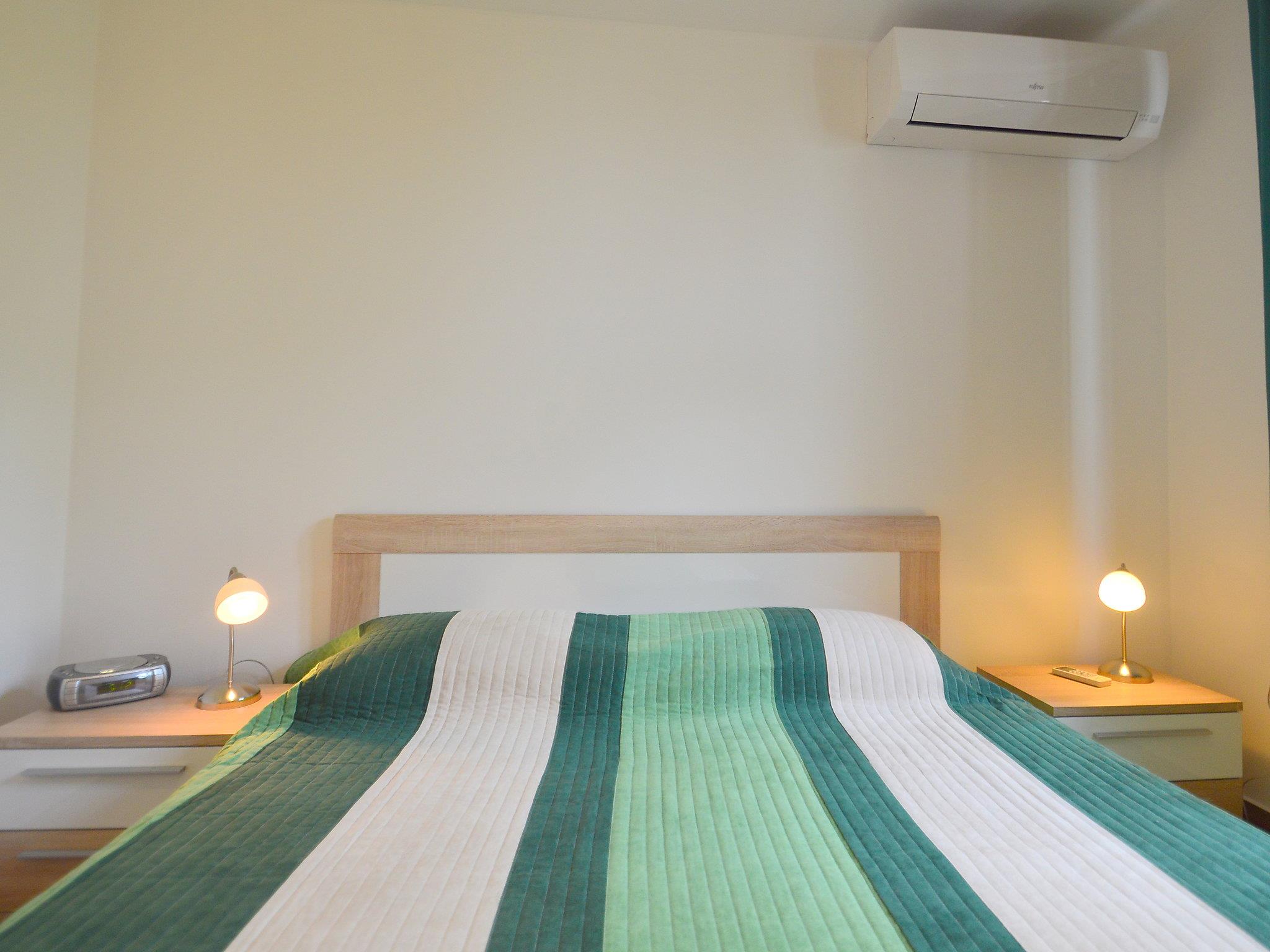 2-room house 33 m2. Cosy furnishings: living/dining room with satellite TV (flat screen). Exit to the terrace. 1 room with 1 double bed (2 x 80 cm, length 200 cm), air conditioning. Open kitchen (oven, 4 ceramic glass hob hotplates, electric coffee machine). Shower/WC. Terrace 9 m2. Terrace furniture, barbecue (portable). View of the garden. Facilities: hair dryer. Internet (WiFi, free). Please note: non-smoking house.